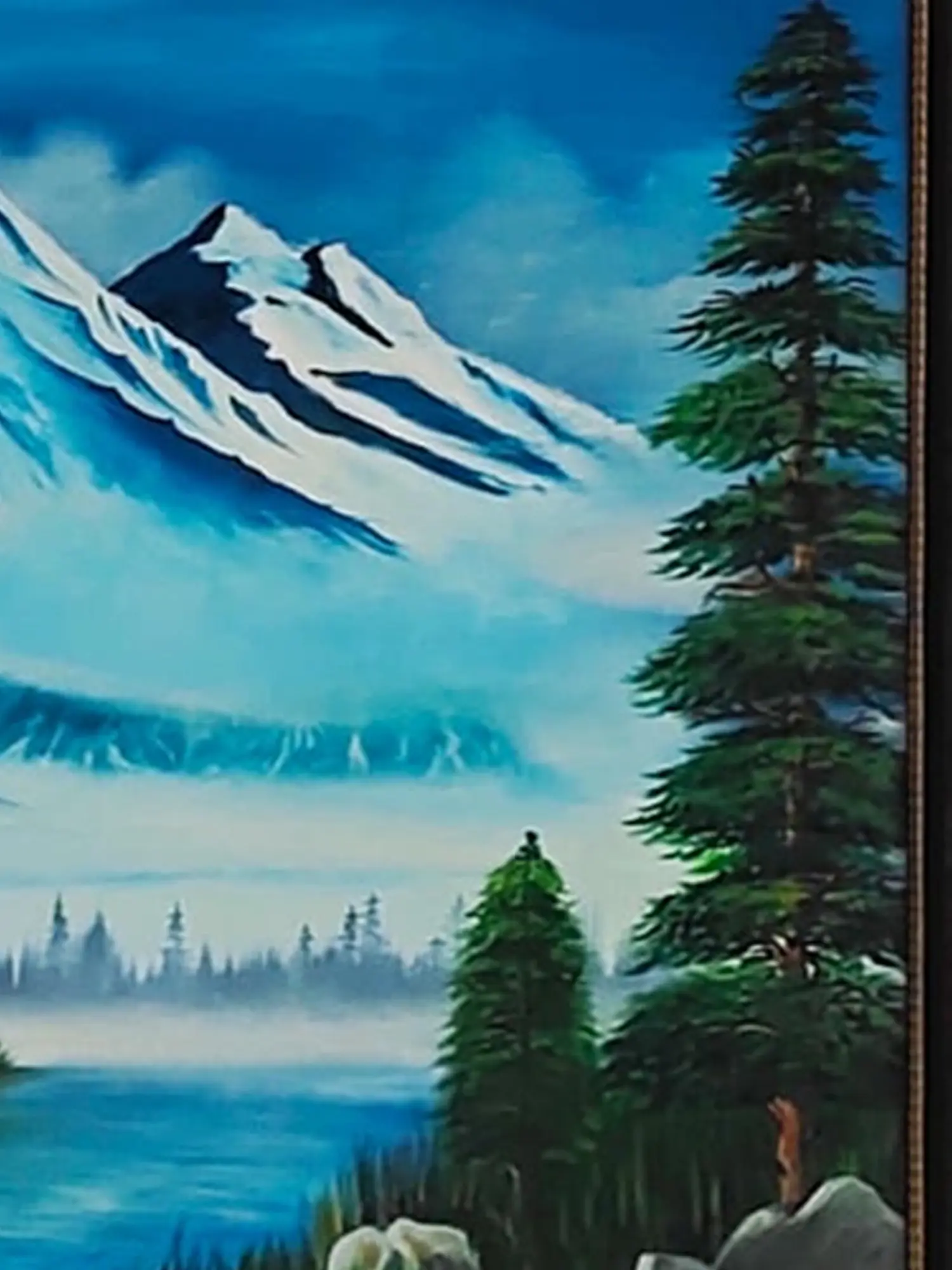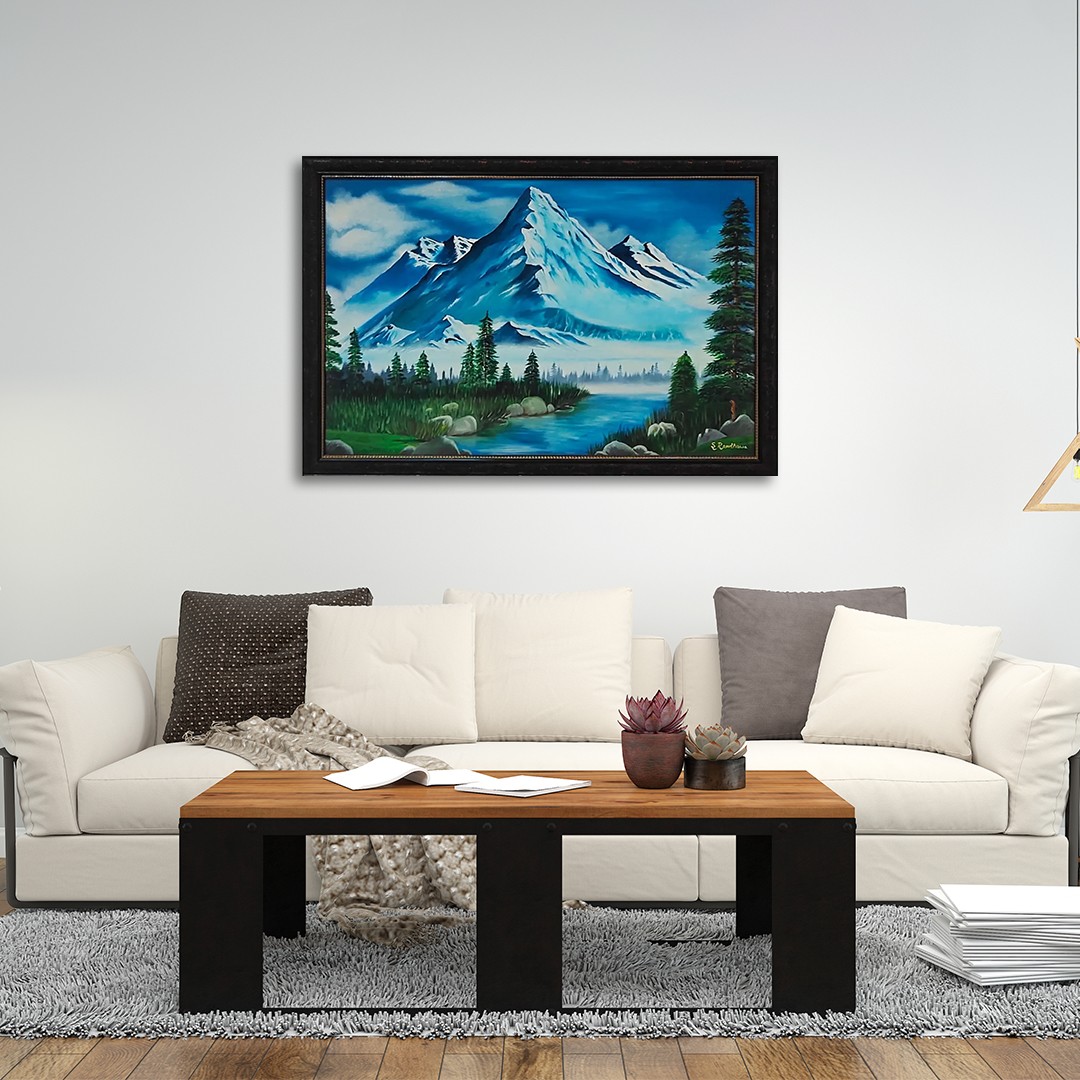In this striking Oil on Canvas painting, the focal point is a majestic snow-clad mountain, dominating the canvas with its serene and formidable presence. The artist masterfully captures the barren landscape, emphasizing the scarcity of vegetation in the snowy expanse. Amidst the white wilderness, a solitary Douglas fir stands tall on the right, its evergreen foliage providing a stark contrast and hint of vibrancy.