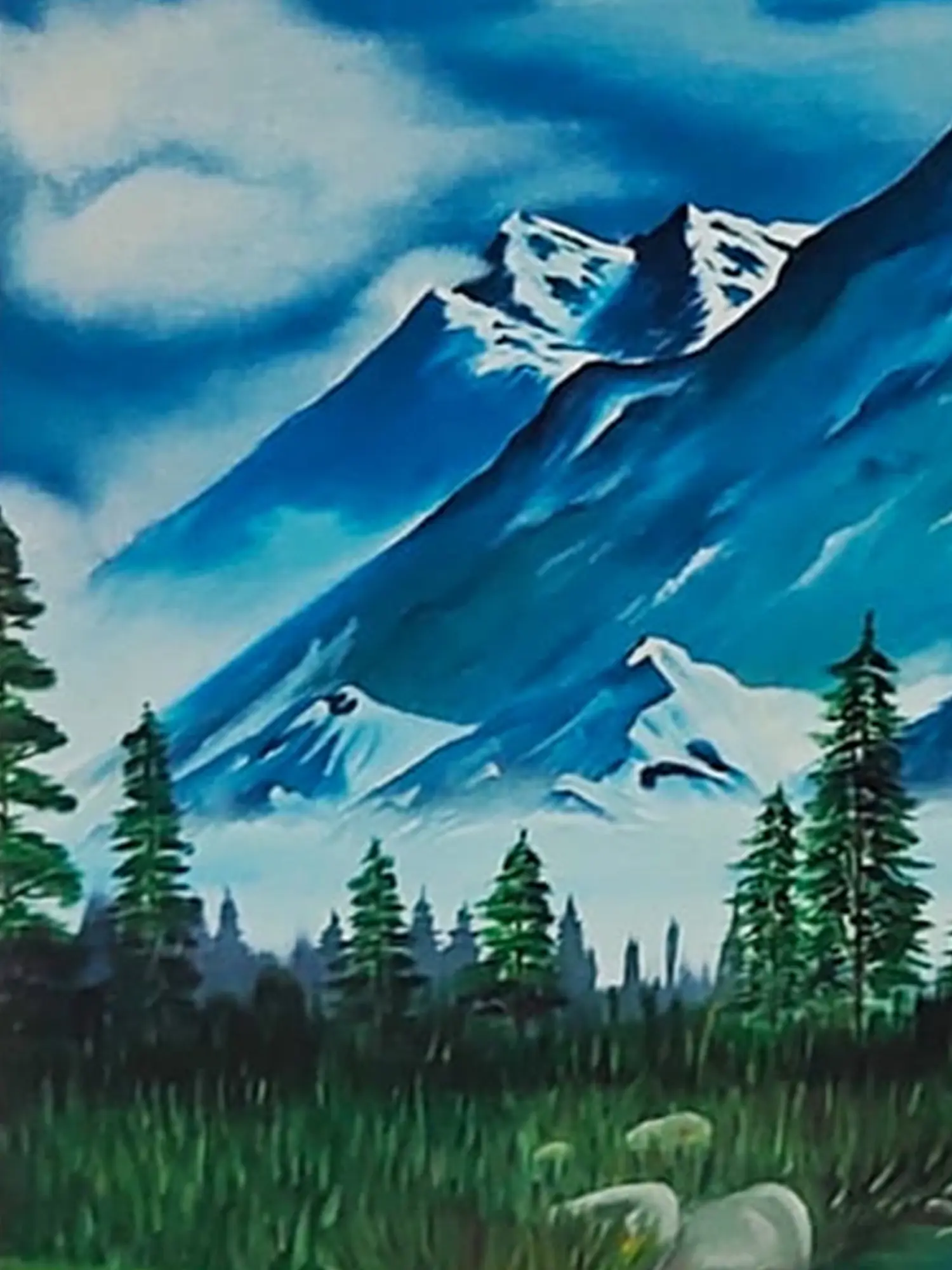 The meticulous use of color and texture conveys the crispness of the snow and the resilience of the lone tree, creating a visually arresting scene that evokes the quiet grandeur of untouched mountain landscapes.