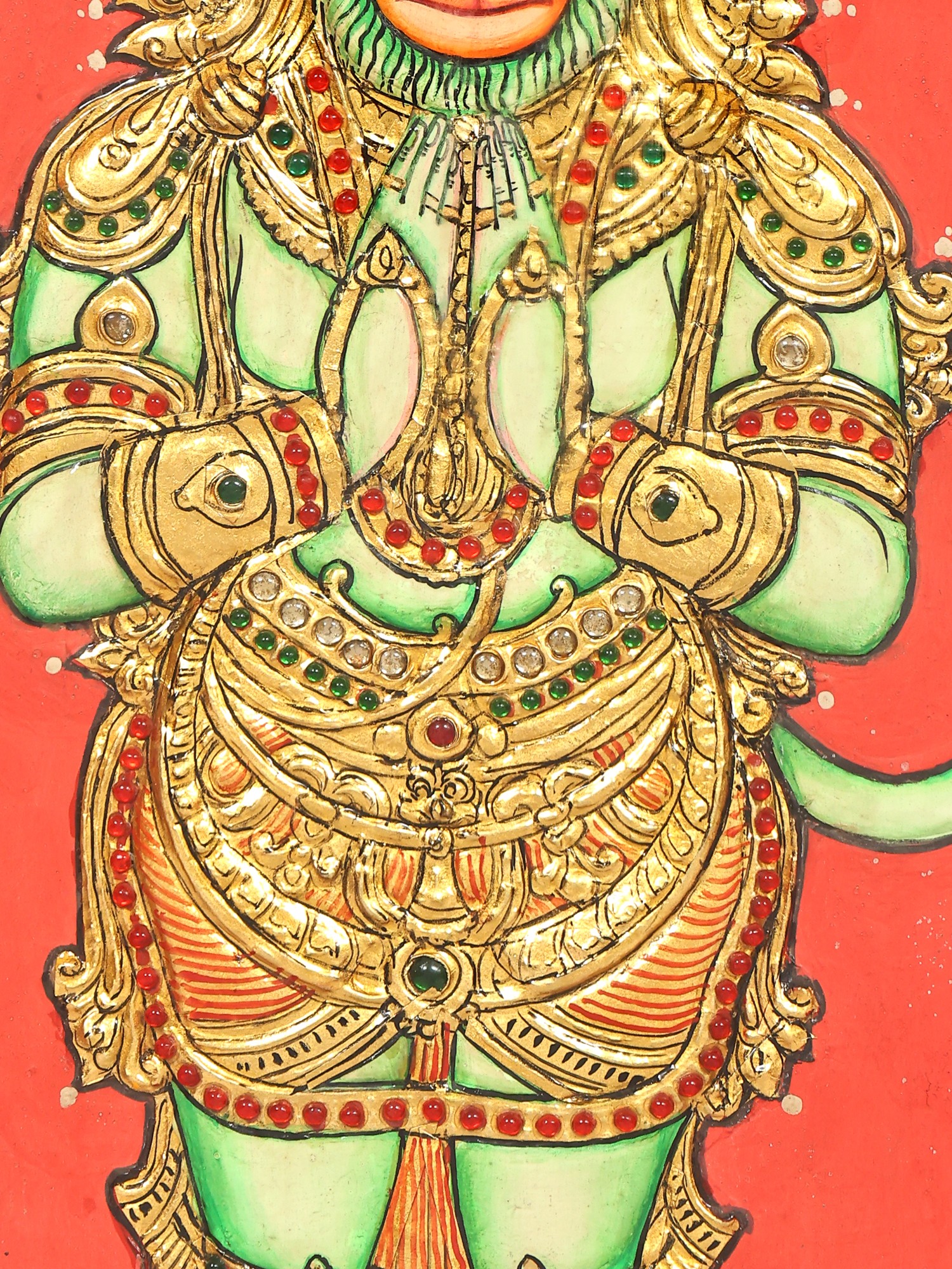 Hanuman Ji Tanjore Painting | Traditional Colors with 24K Gold | Teakwood Frame