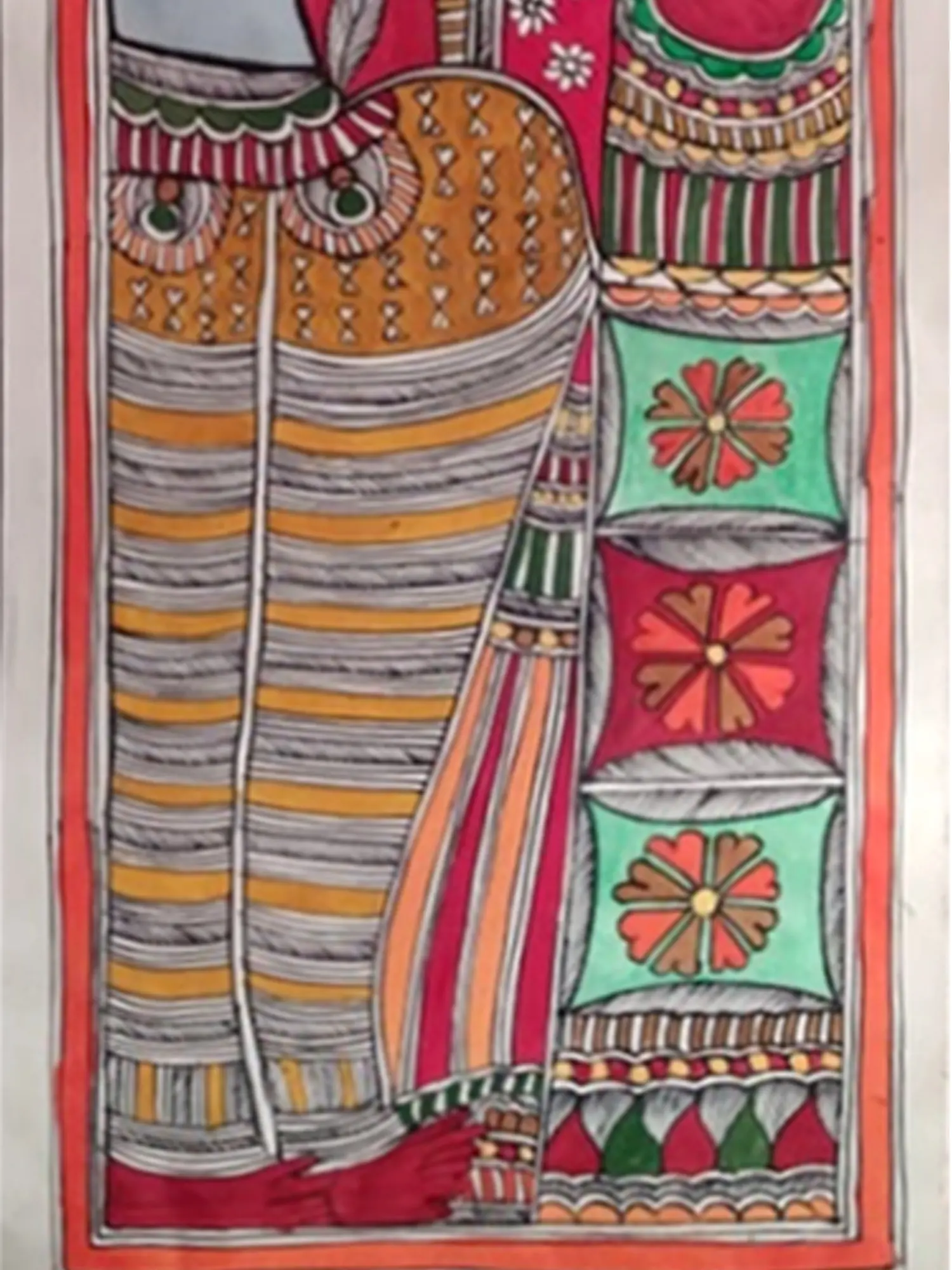 Through this piece, Archana Jha not only pays homage to the eternal tale of love but also contributes to the continuous legacy of Madhubani folk art, ensuring the cultural richness and spiritual stories endure through the beauty of traditional paintings.