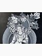 The pristine Devi is standing in a cloud of riverine foam. The silken sashes of Her garment and the gossamer train of Her dhoti are floating in the breeze. The flawless shringar and the lotus-wreathed halo set off the serene composure of a splendid countenance.