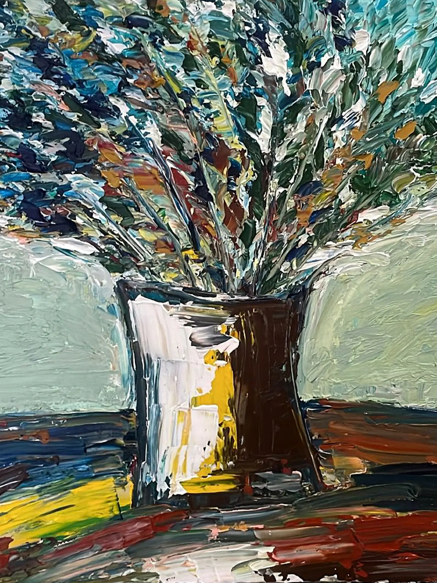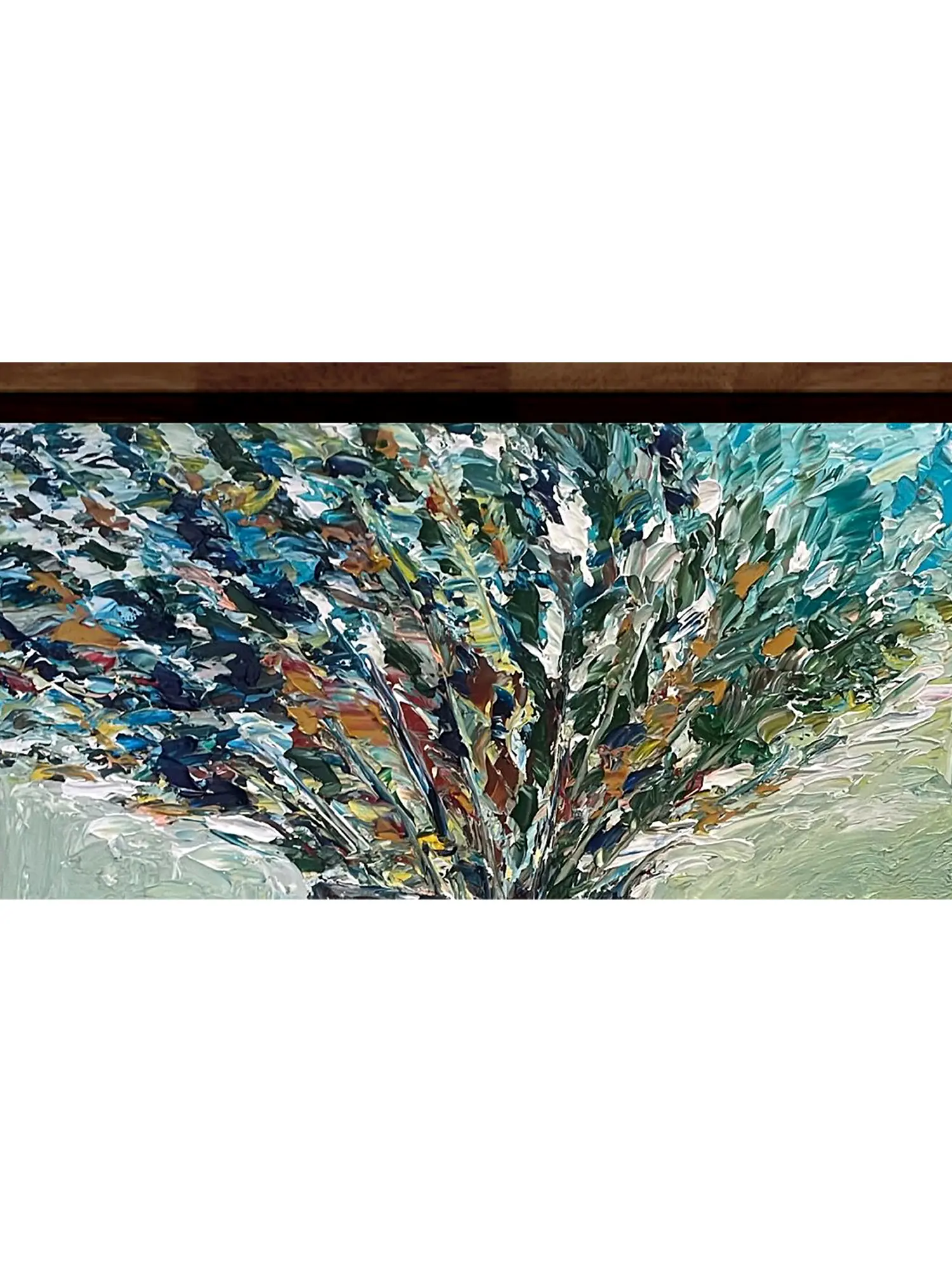 While abstract in its execution, hints of the natural world emerge from the canvas. One might perceive a bouquet bursting forth with exuberant life, the colors echoing the vibrant hues of a flourishing garden. This interpretation draws parallels to various cultural traditions where flowers and foliage symbolize growth, prosperity, and the cyclical nature of life. Consider the Greek myth of Chloris, the goddess of flowers, whose touch could transform barren landscapes into fields of brilliant blooms. This artwork serves as a potent reminder of nature's ability to inspire and uplift. The thick, almost sculptural application of paint adds another layer of depth and tactility, inviting viewers to not just see, but almost touch the essence of the scene.