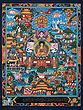 Superfine Medicine Buddha On The Six-Ornament Throne of Enlightenment in His Universe - Tibetan Buddhist Brocadeless Thangka
