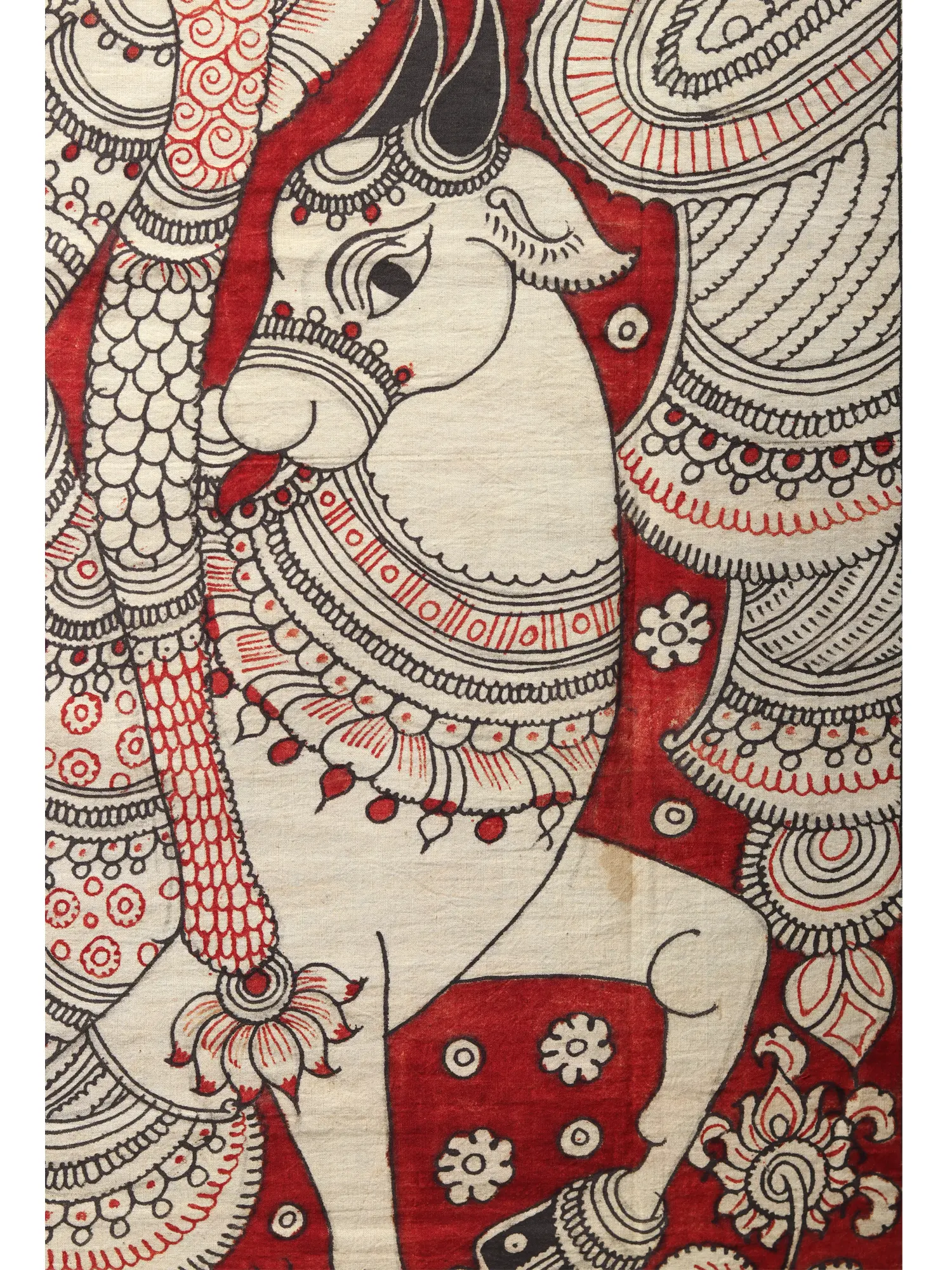 Each stroke of this masterpiece is a testament to the ancient Kalamkari tradition, meticulously hand-painted on a fine cotton canvas. Artisans draw upon generations of skill to create these intricate designs, using natural dyes derived from plants and minerals. The rich, earthy hues and the deep, defining black lines are a hallmark of this celebrated folk art, showcasing an unwavering commitment to time-honored craftsmanship and authentic material selection.