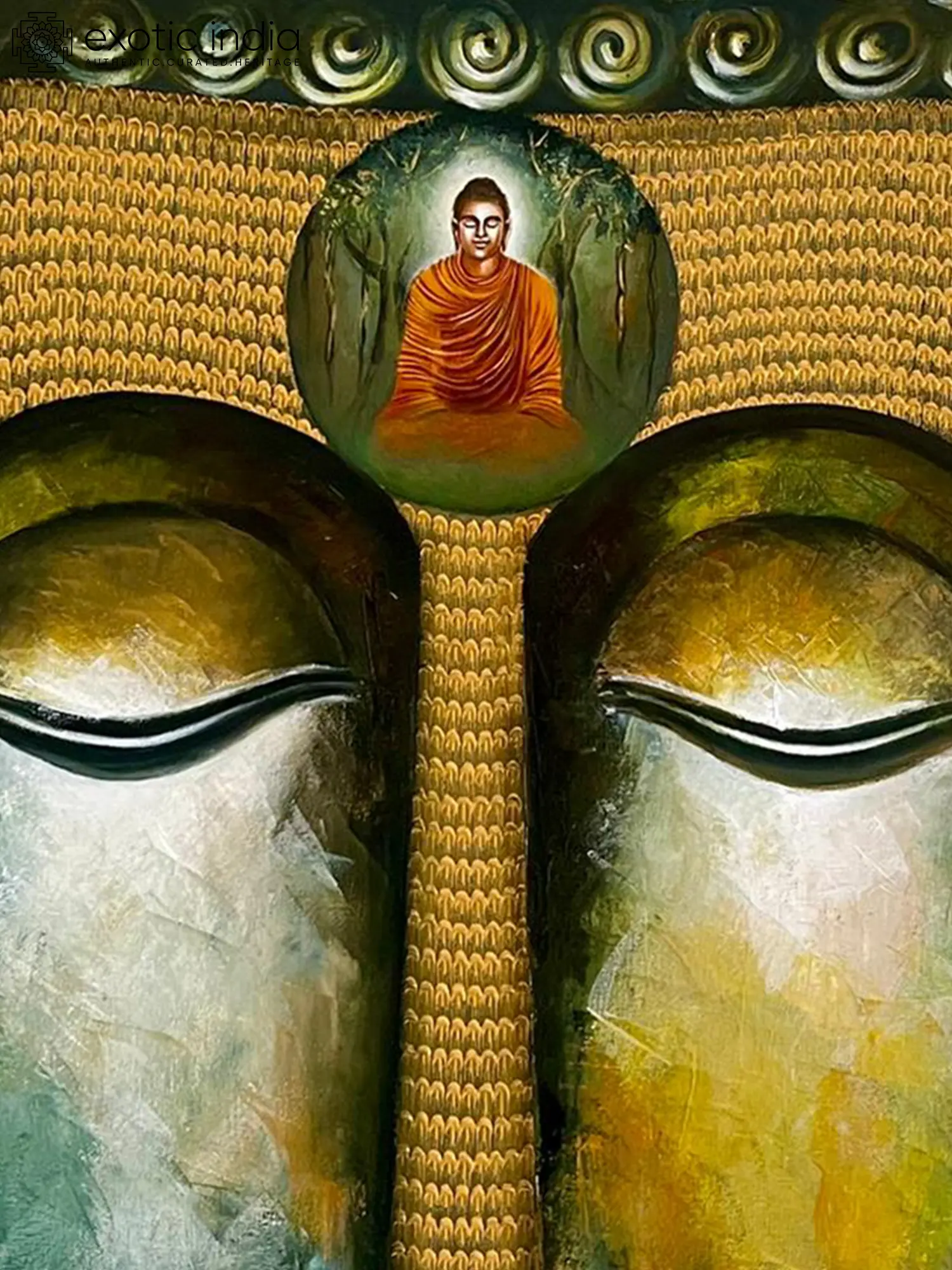 Siddhartha Gautama, the historical Buddha, is revered across various cultures and religions for his teachings on enlightenment and compassion. His life, from his princely birth to his renunciation of worldly pleasures and eventual attainment of Nirvana under the Bodhi tree, is rich with symbolism. The image of the Buddha is deeply significant, representing qualities like peace, wisdom, and inner tranquility. His serene expression, closed eyes, and mudra (hand gesture) often depicted in art signify his meditation and the pursuit of enlightenment. The inclusion of a smaller image of the seated Buddha within the larger piece adds layers to this already profound artwork. This creates a beautiful visual representation of the journey towards enlightenment, both in the moment and the ongoing path. This piece allows you to bring a piece of that profound journey into your own life.