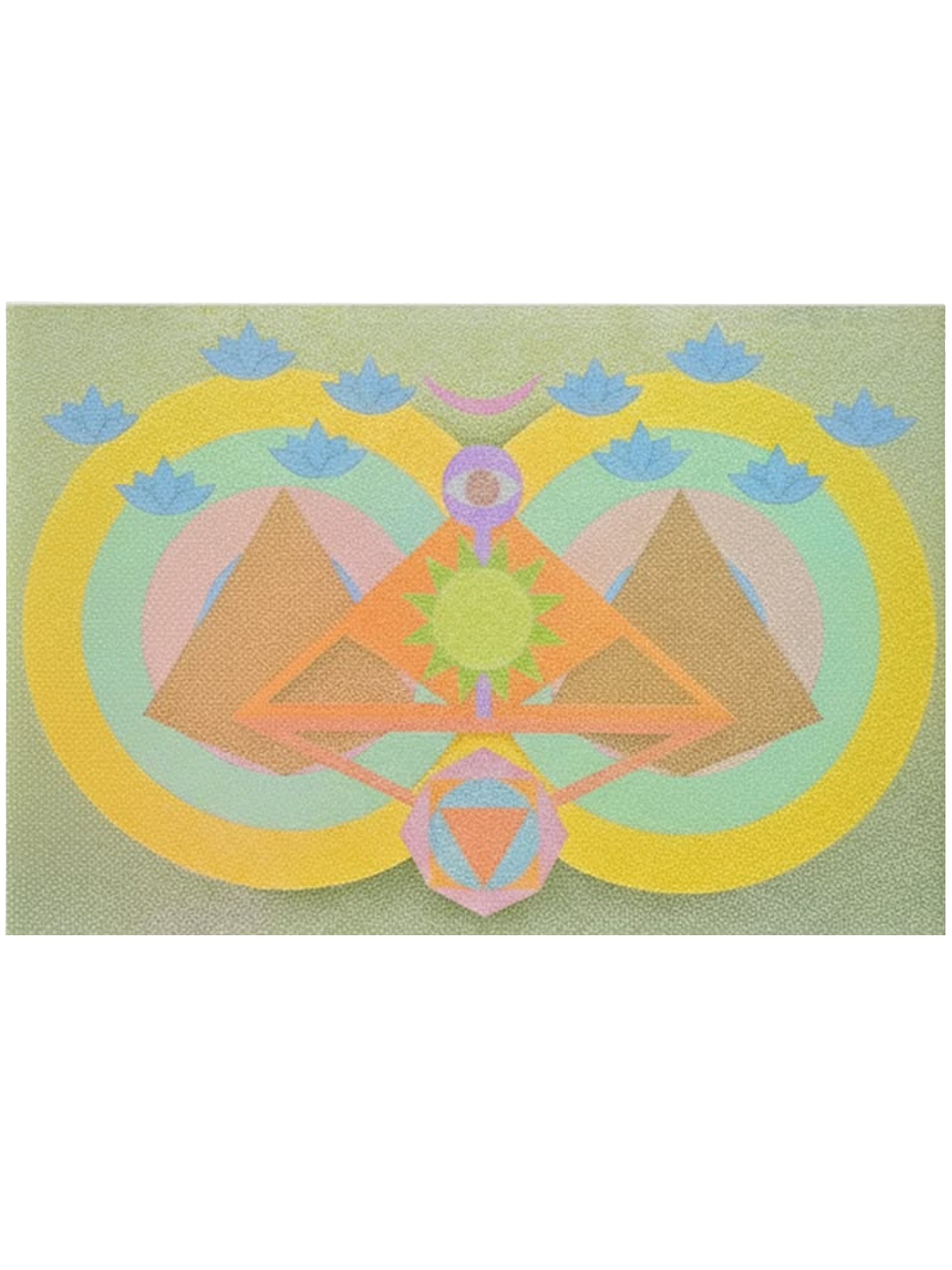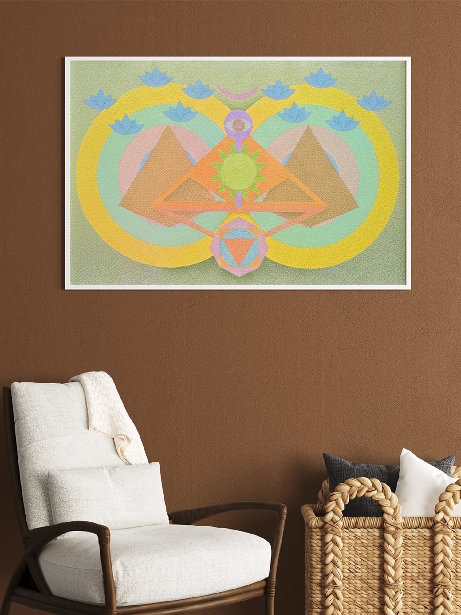 This artwork draws inspiration from the rich tapestry of Tantric philosophy, a spiritual tradition that explores the energetic forces of the universe. The layered circles and triangles evoke the cosmic mandala, representing unity and the cyclical nature of existence. The lotus motifs, a symbol of purity and spiritual awakening, further enrich its profound significance, inviting you to connect with ancient concepts.