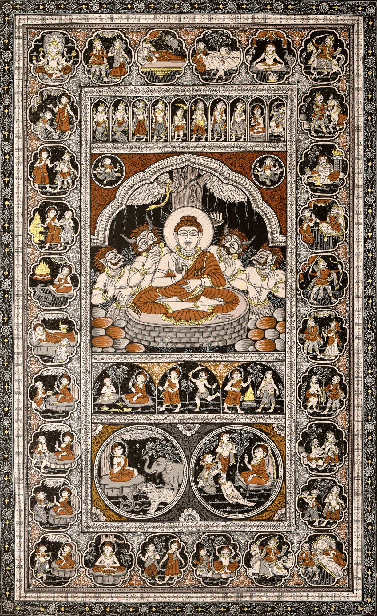 Buddha Seated in Dharmachakra Mudra | Pattachitra Painting on Palm Leaf