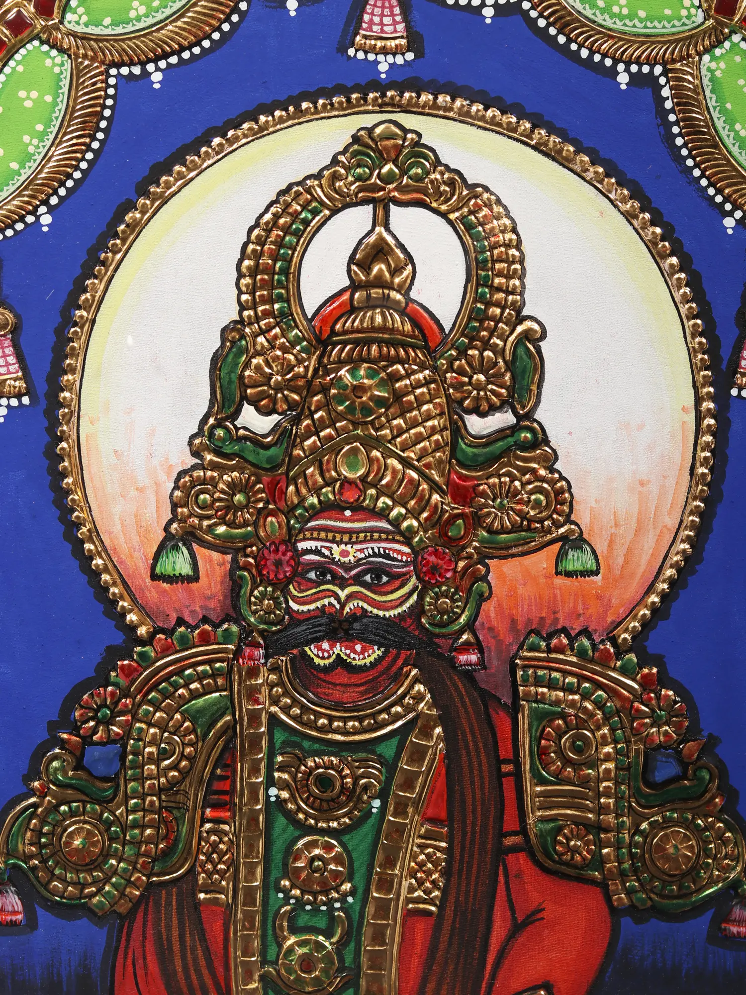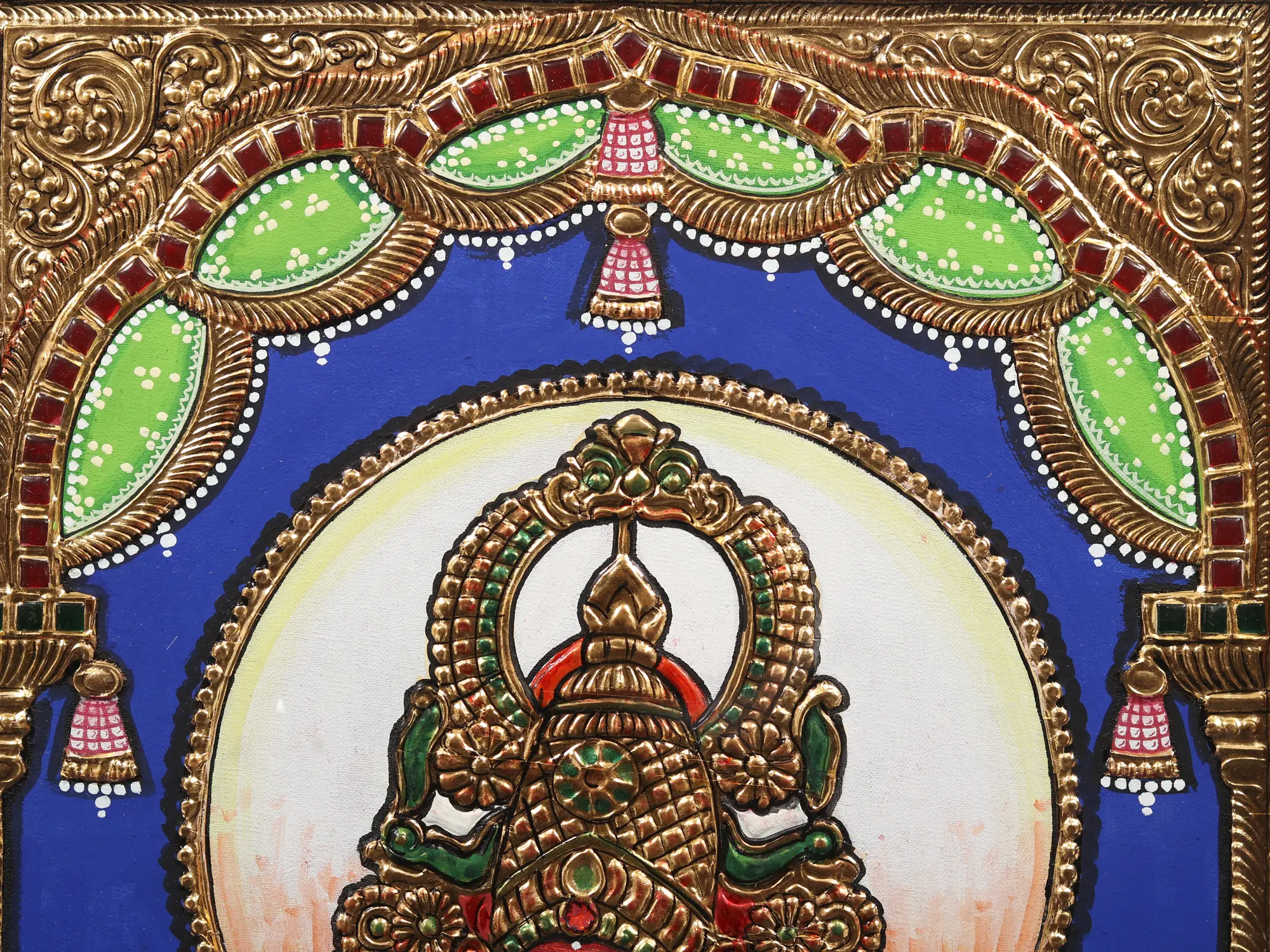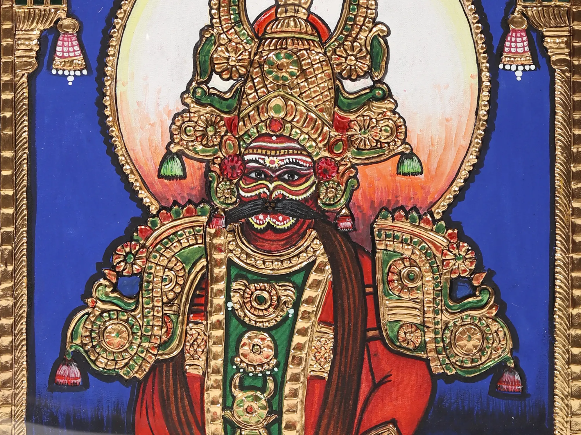 Delve into the world of Therukoothu Artists, embodying the essence of Tamil Nadu's traditional art form with every stroke of their detailed decoration which is meaningful in the bigger pictures that plays out in the symbolic aspect. This Tanjore painting is about the dedication and talent of those who keep this rich tradition alive, reminding us of the importance of preserving cultural heritage.