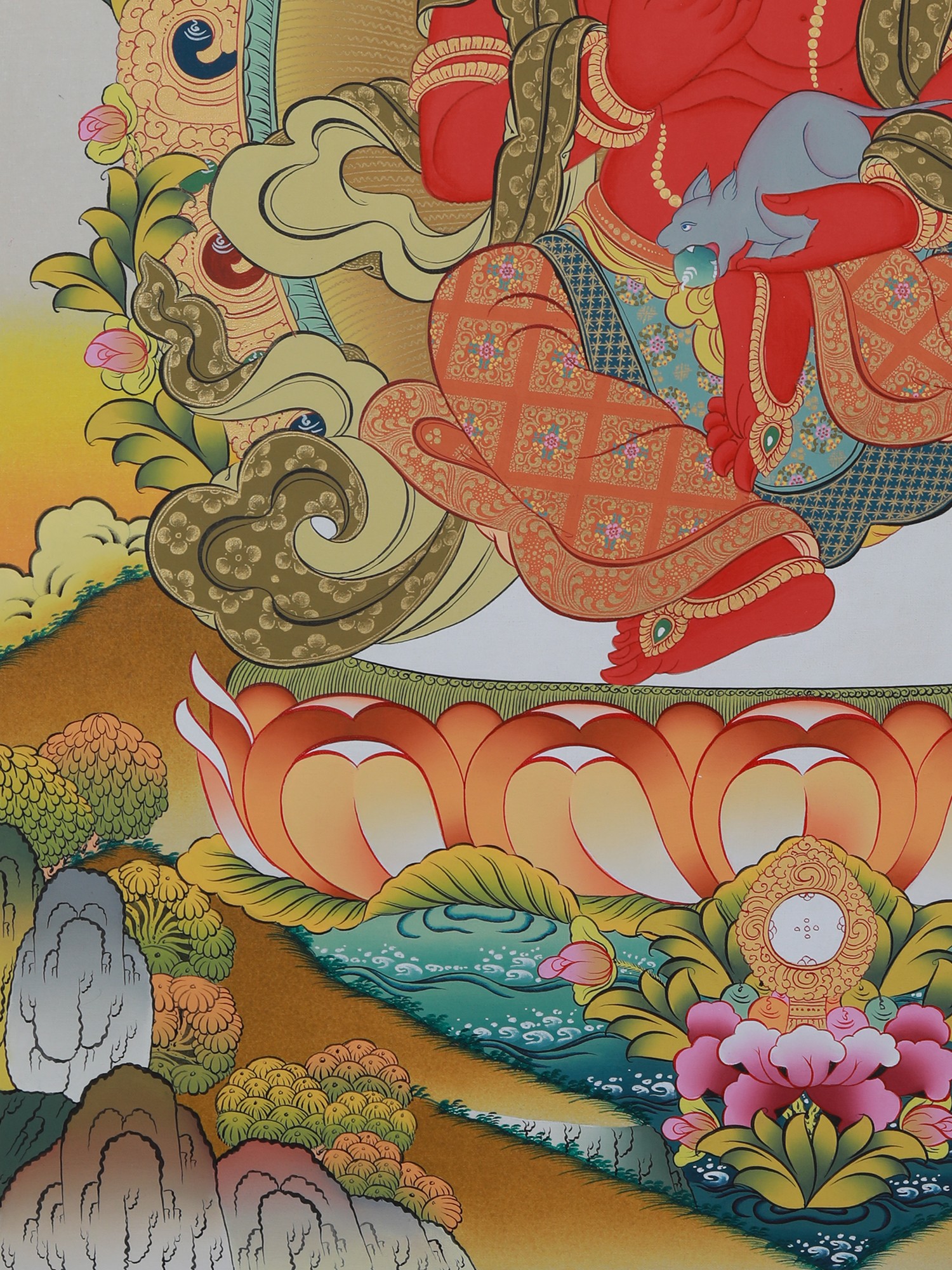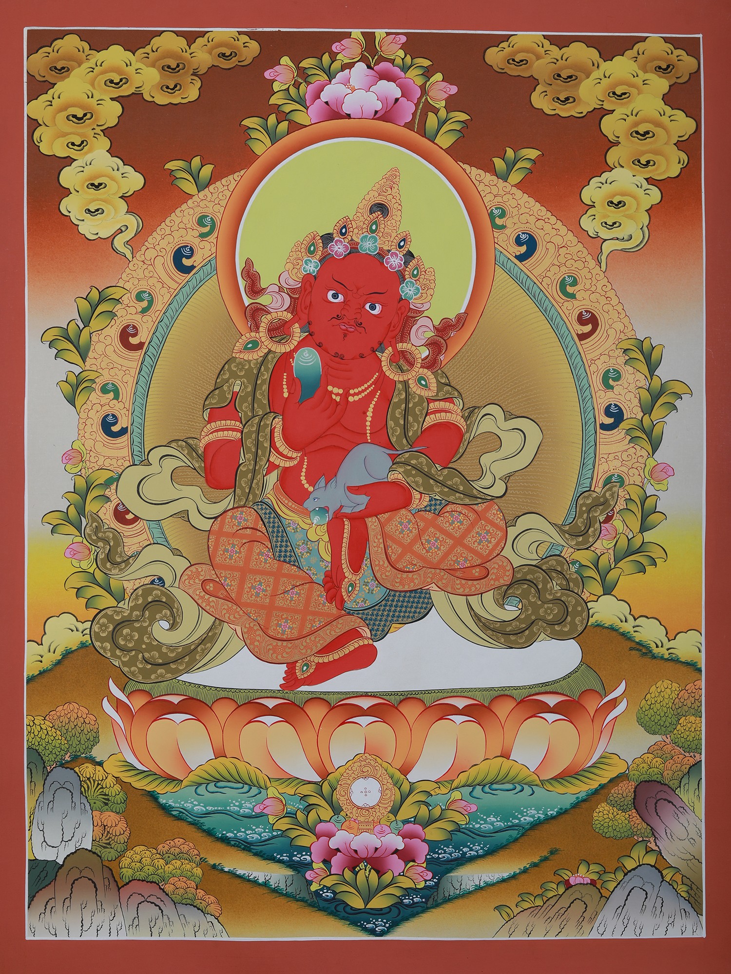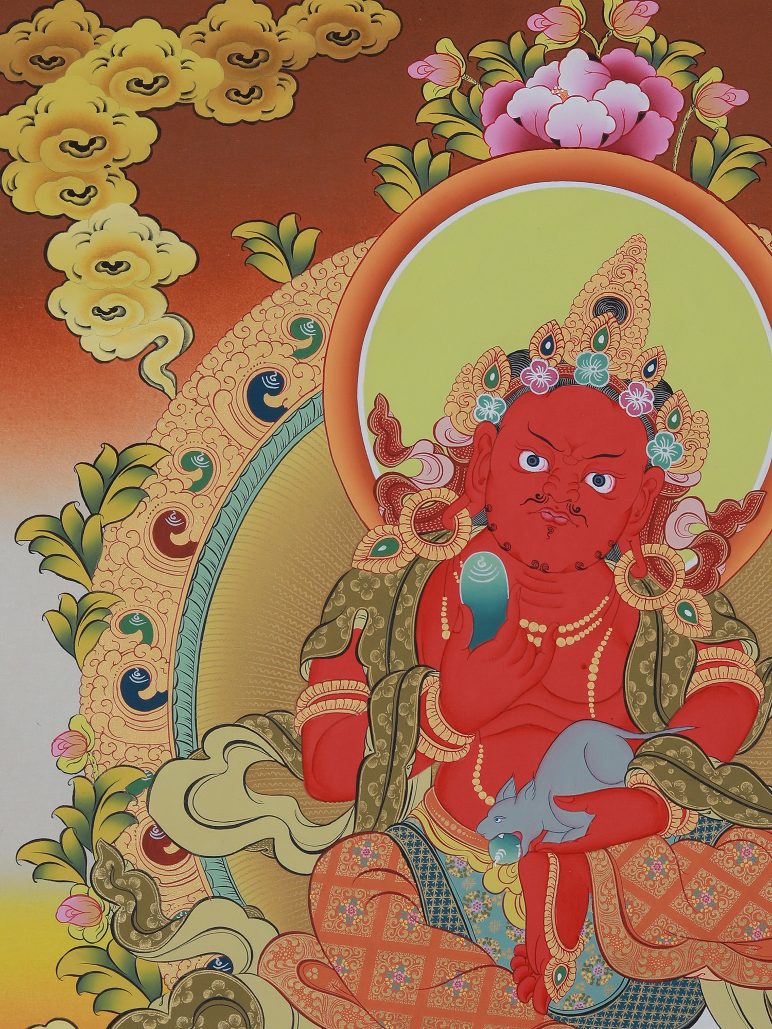 Kubera - The Buddhist Deity Of Wealth | Tibetan Brocadeless Thangka Painting