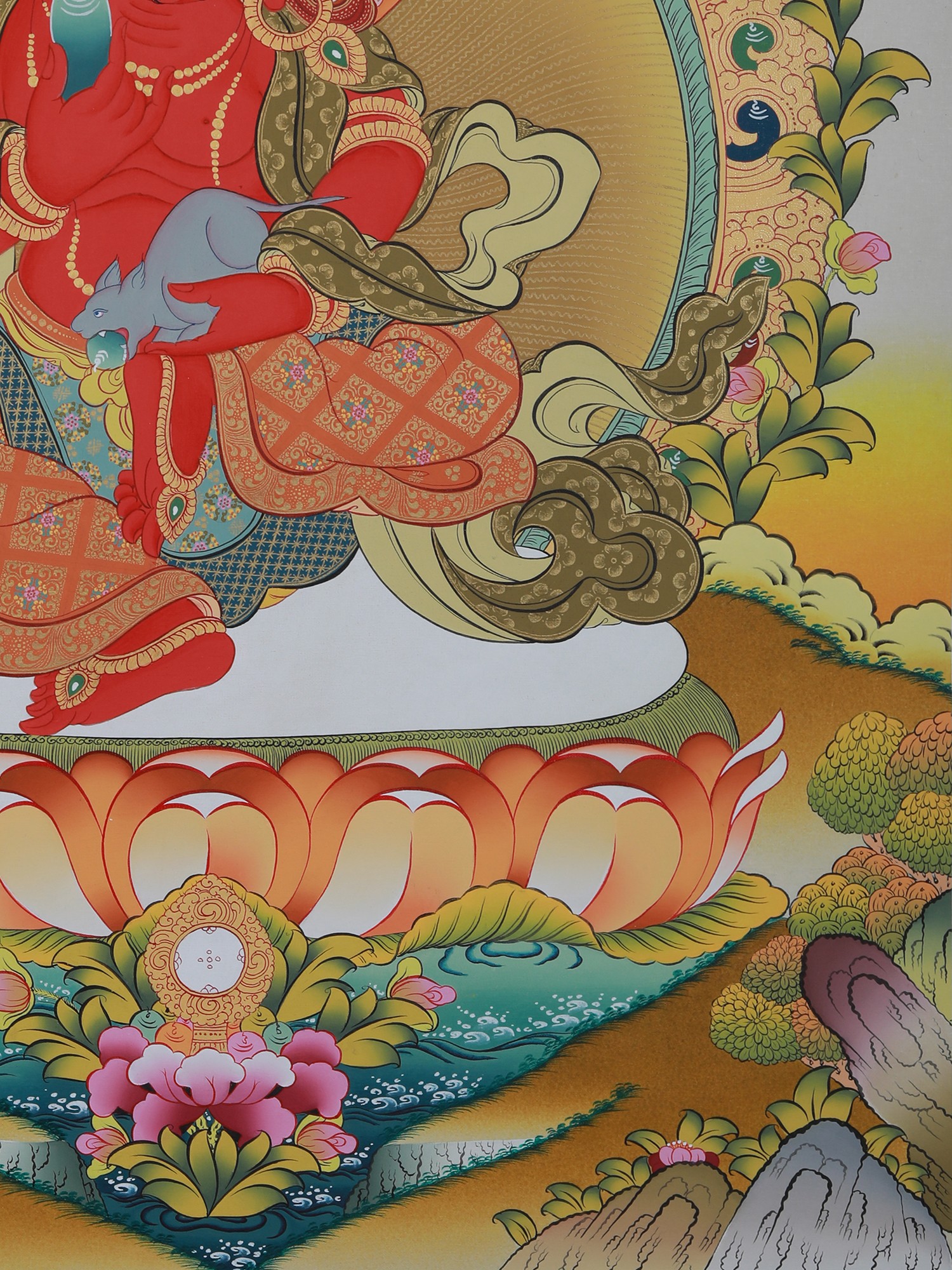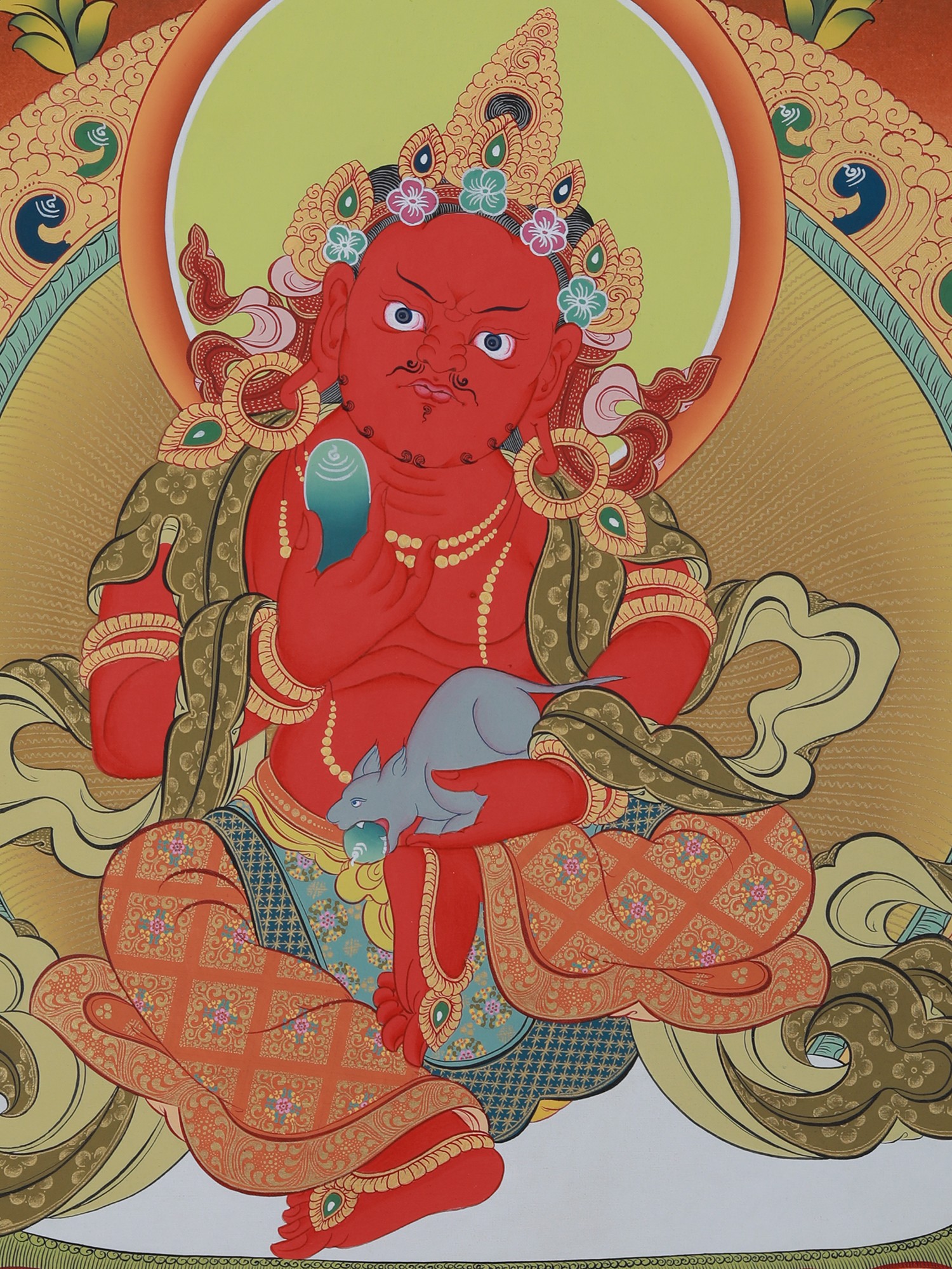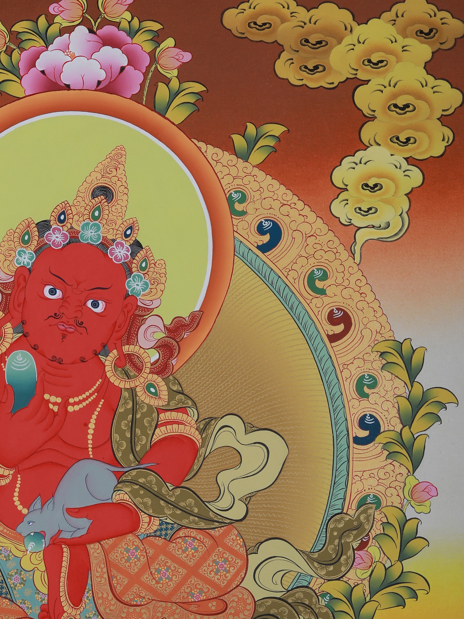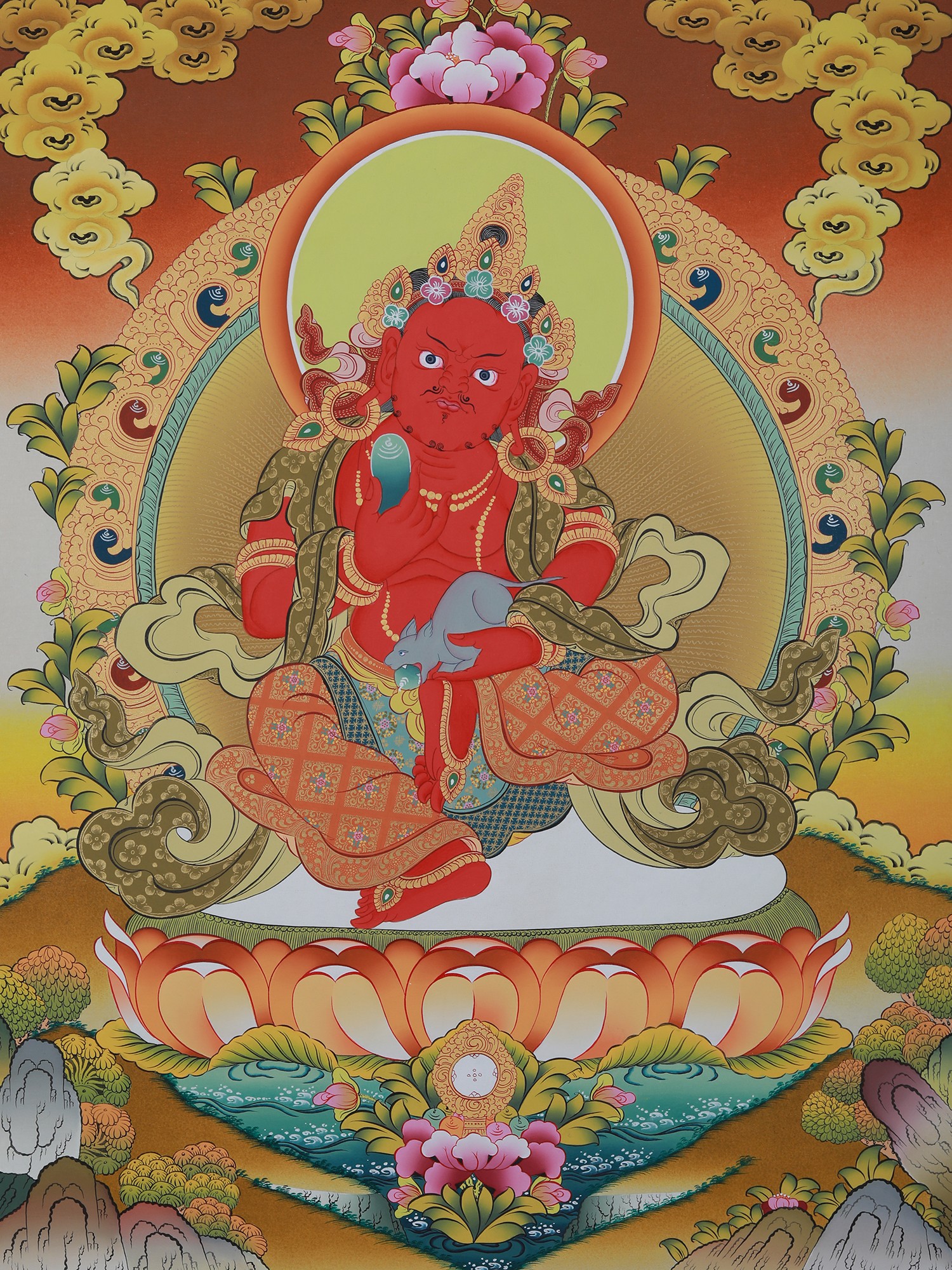 Kubera - The Buddhist Deity Of Wealth | Tibetan Brocadeless Thangka Painting