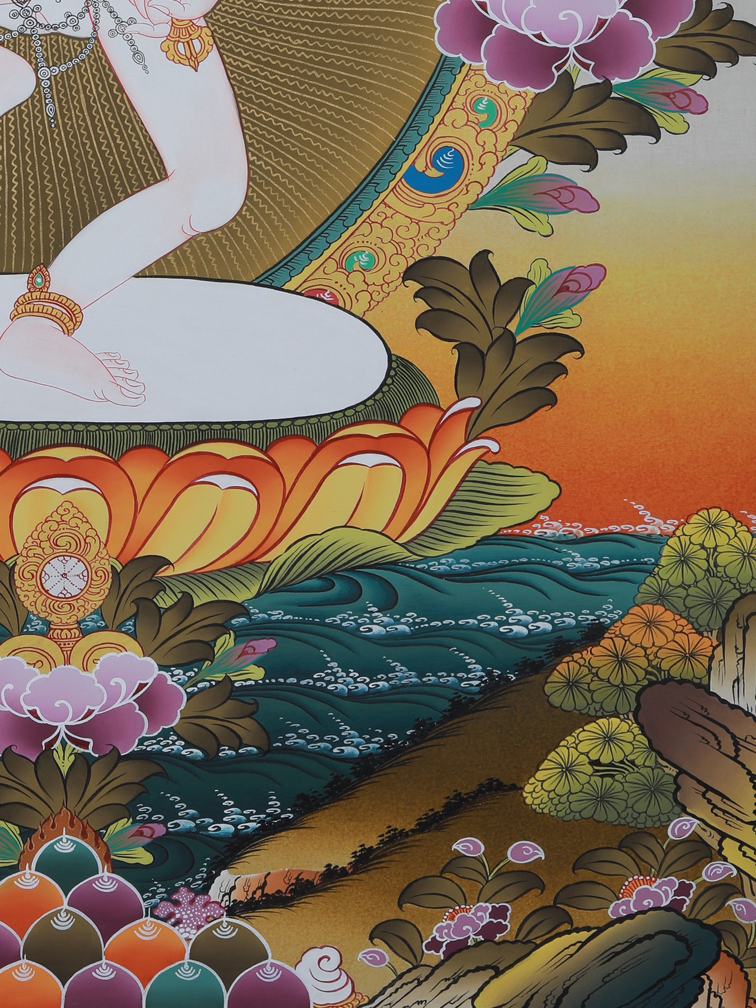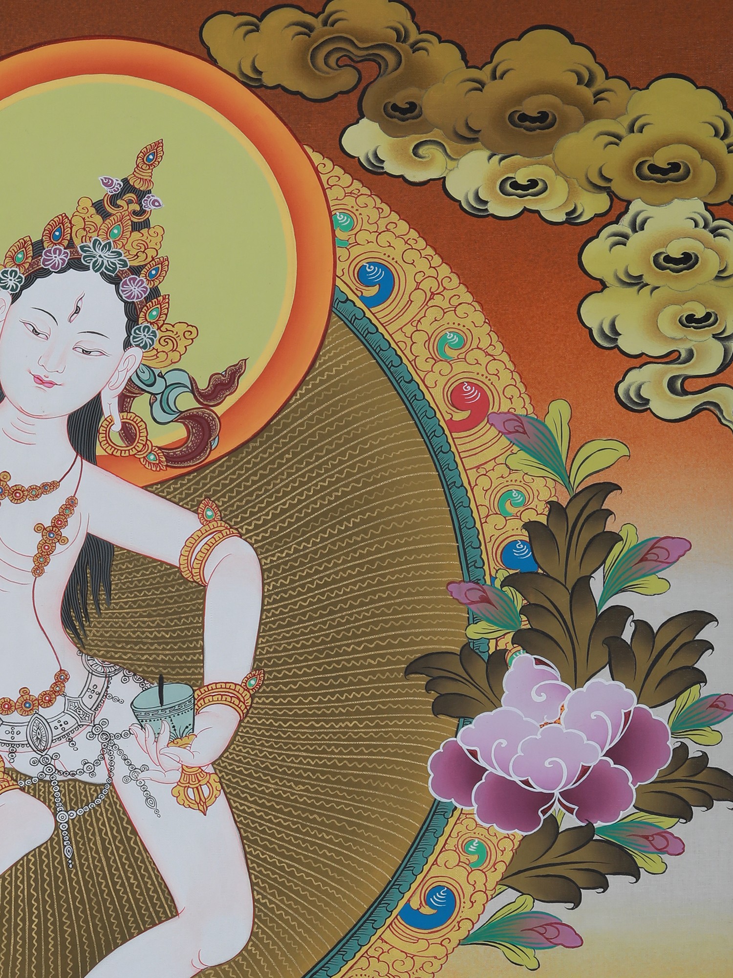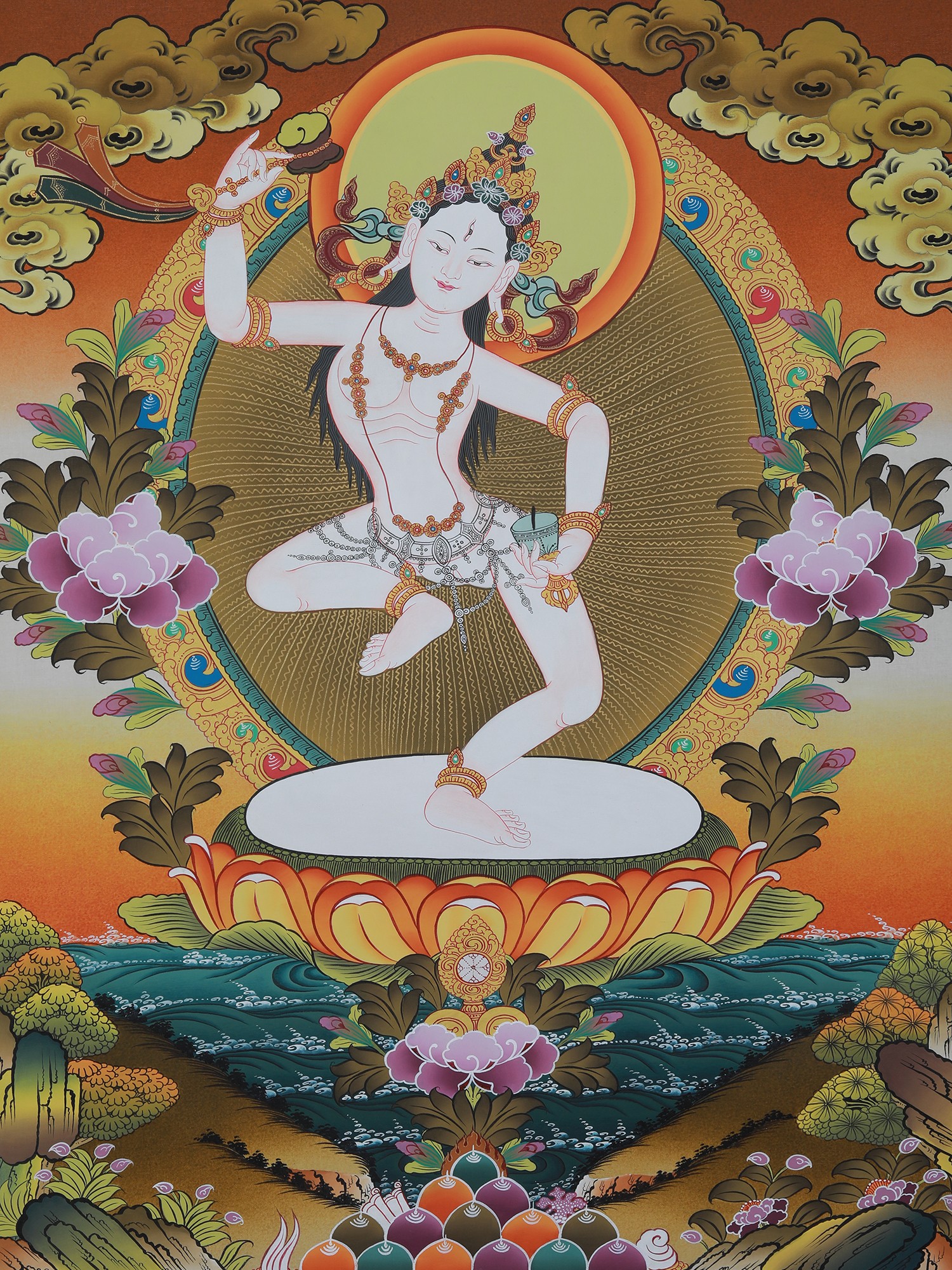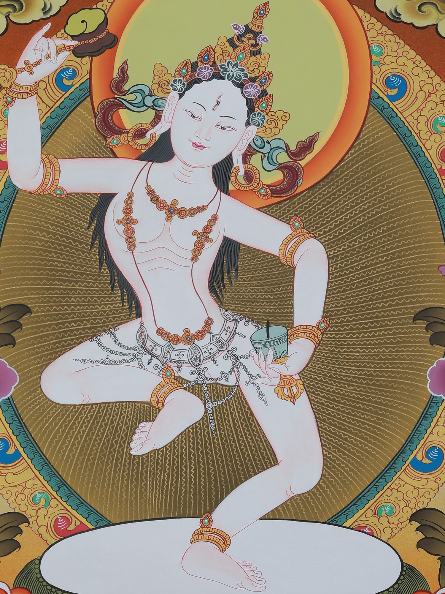 Vajrayogini in Tibetan Style Colors with Pure 24k Gold (Brocadeless Thangka)