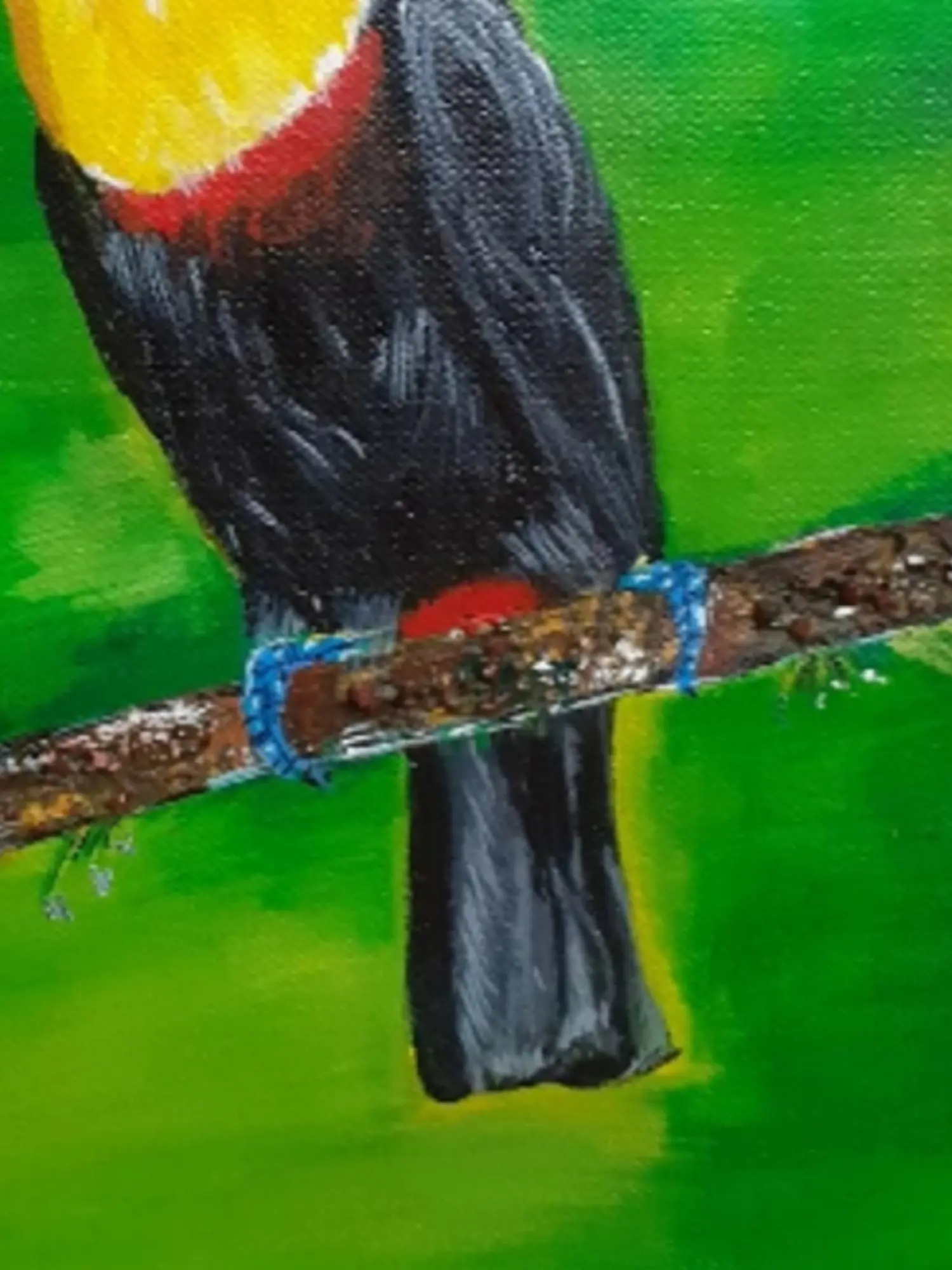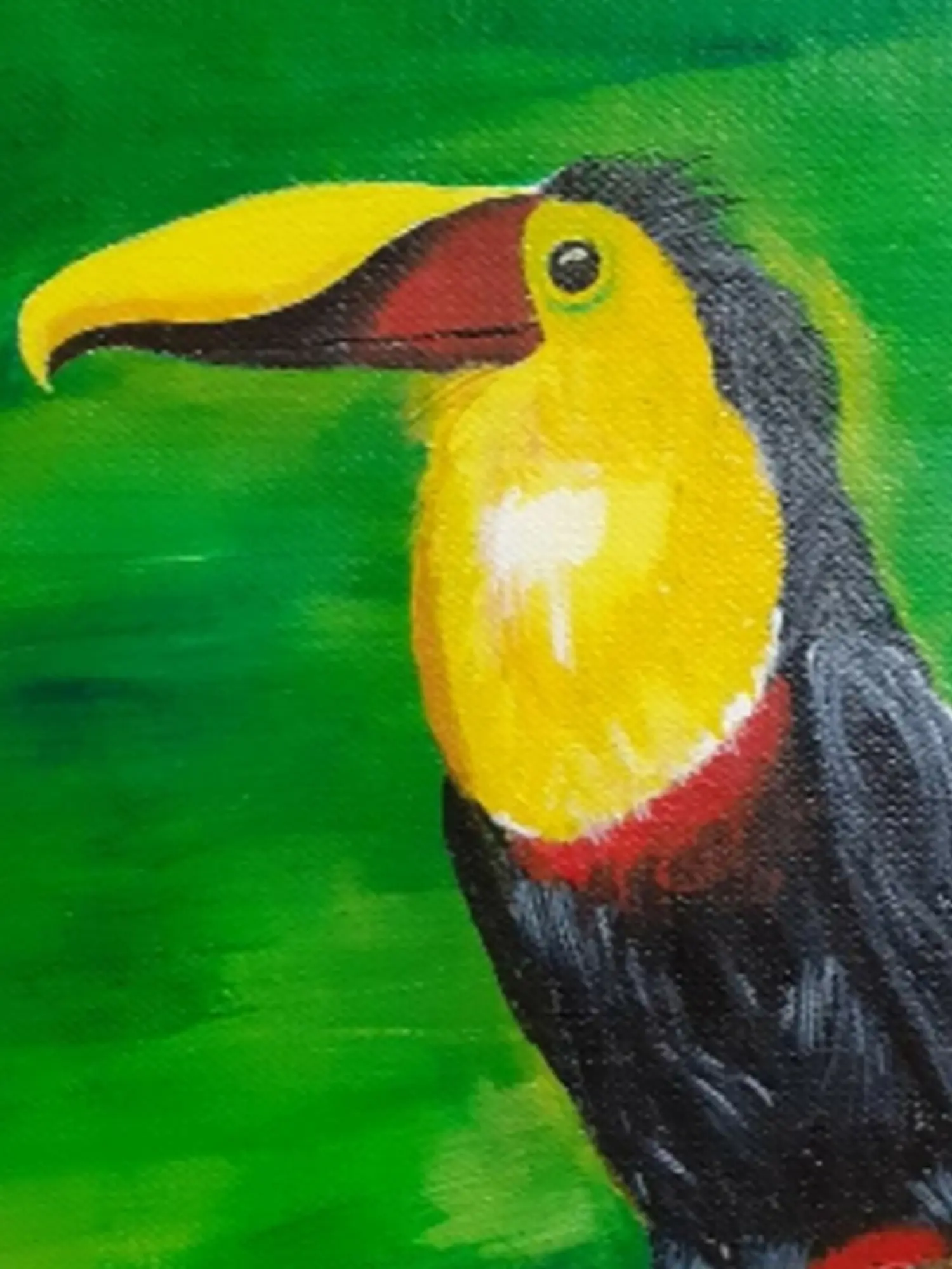 In this Acrylic on Canvas masterpiece featuring a Toucan Tropical Bird, the artist orchestrates a visual symphony that transcends mere representation. Against a lush green backdrop, the toucan becomes a vibrant focal point, symbolizing biodiversity and the intricate dance between fauna and flora. The intentional use of acrylic captures the bird's vibrancy, infusing the canvas with dynamic energy.