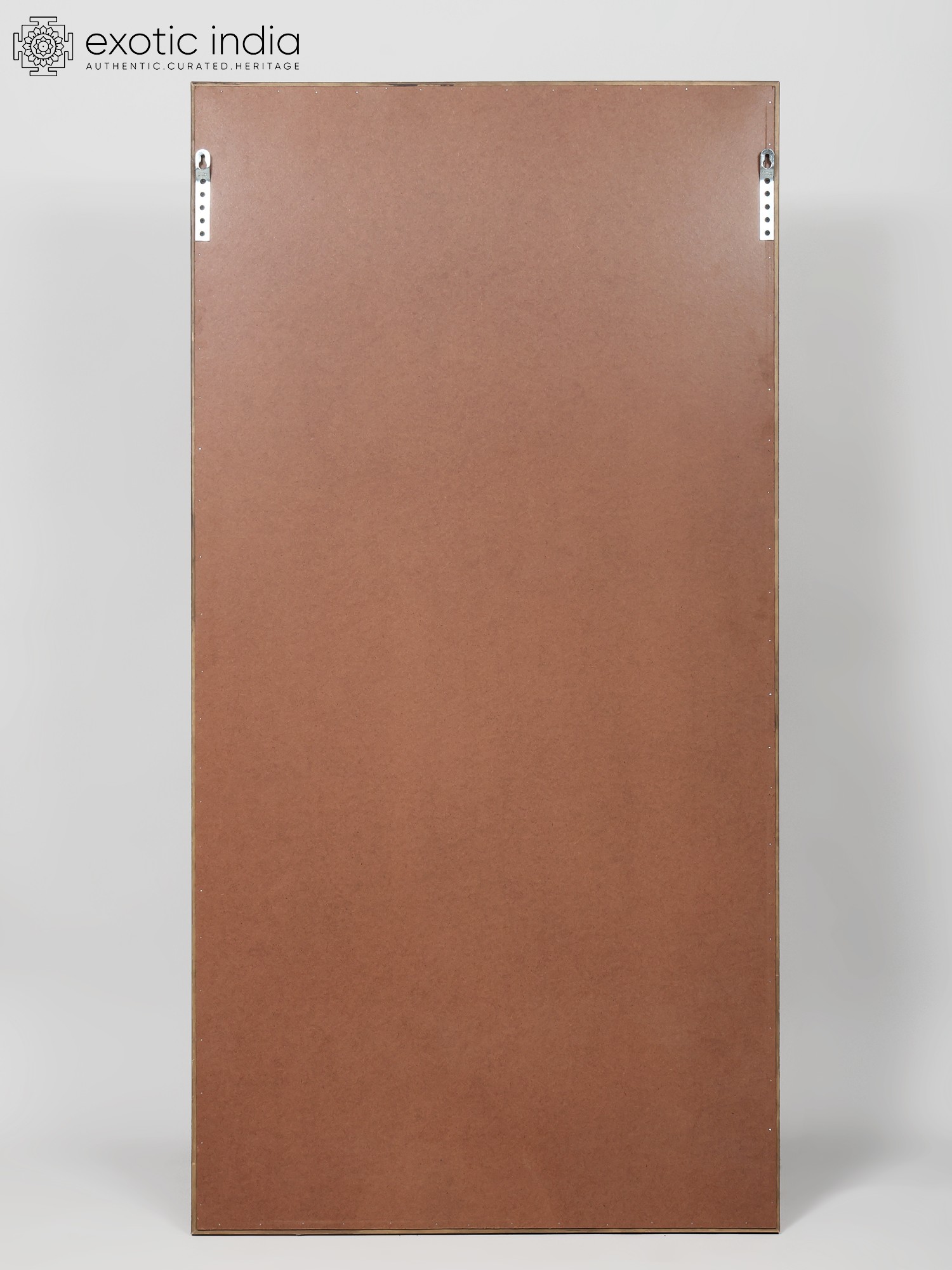 This exquisite artwork is brought to life using watercolor paints on Tussar silk, a luxurious and textured fabric that adds a unique dimension to the piece. The natural sheen of the silk enhances the vibrancy of the colors, while its slightly irregular surface provides a tactile experience that is both visually appealing and engaging to the touch. The use of watercolor allows for subtle gradations of color and intricate detailing, showcasing the artist's mastery of the medium. The combination of traditional techniques and natural materials results in a piece that is both timeless and uniquely beautiful.