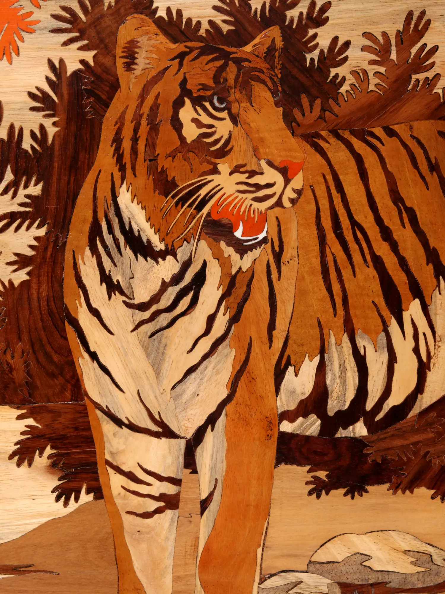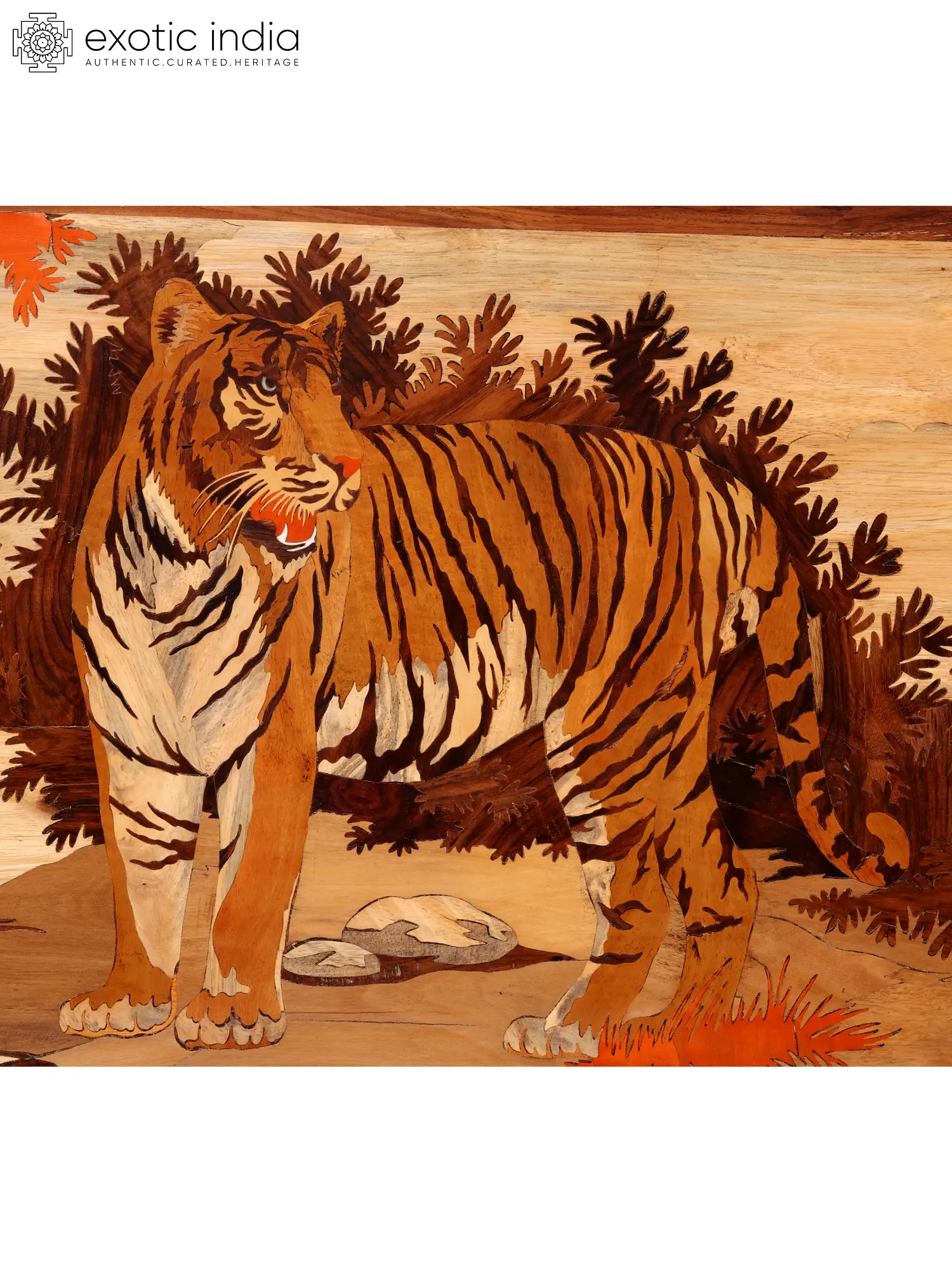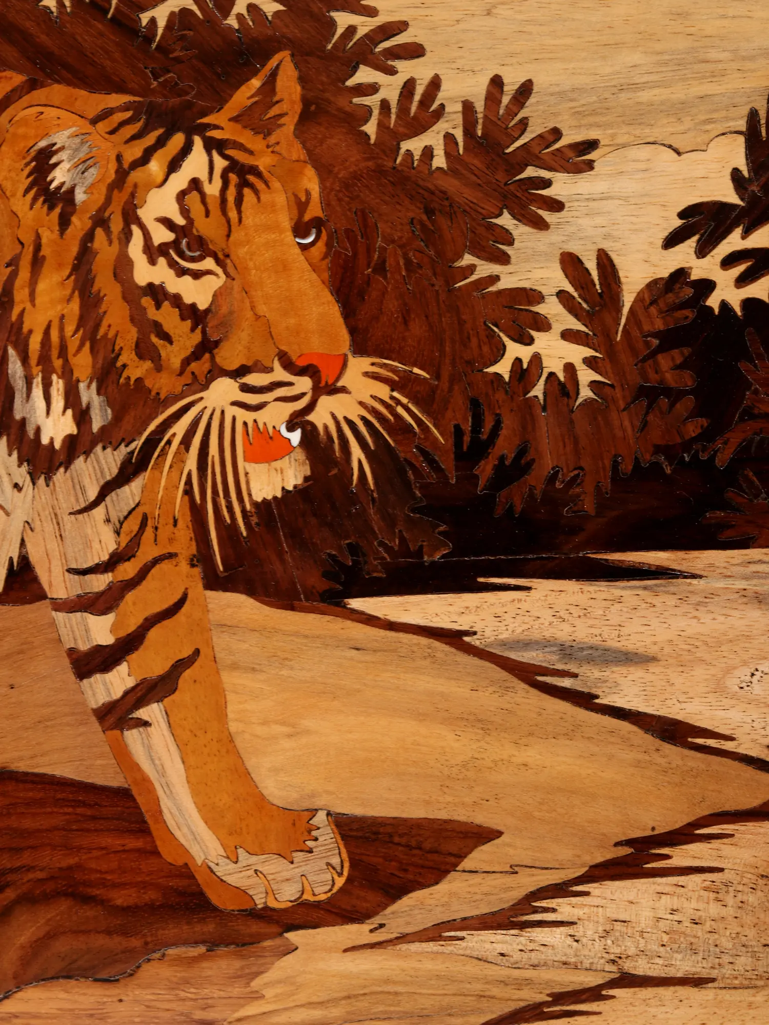 Two Tigers in Forest | Natural Color on Wood Panel with Inlay Work