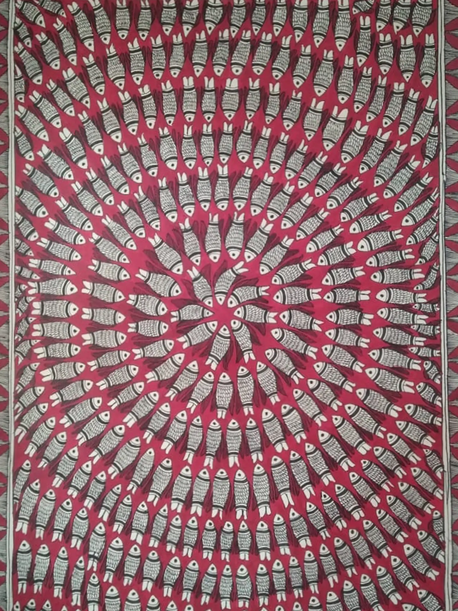 School of Fish in Madhubani Pattern | Natural Colors on Handmade Paper | By Archana Jha