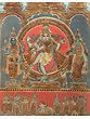 Framed with teakwood, this is a contemporary Tanjore painting. It features layers of glittering gold over luxuriant gesso work. From the flaying angavastram of the dancing Shiva to the attire of His two wives, the aureole that frames His figure and three templetops along the upper edge of the painting. The same is punctuated by inlaid stones, gleaming like jewels against gold.