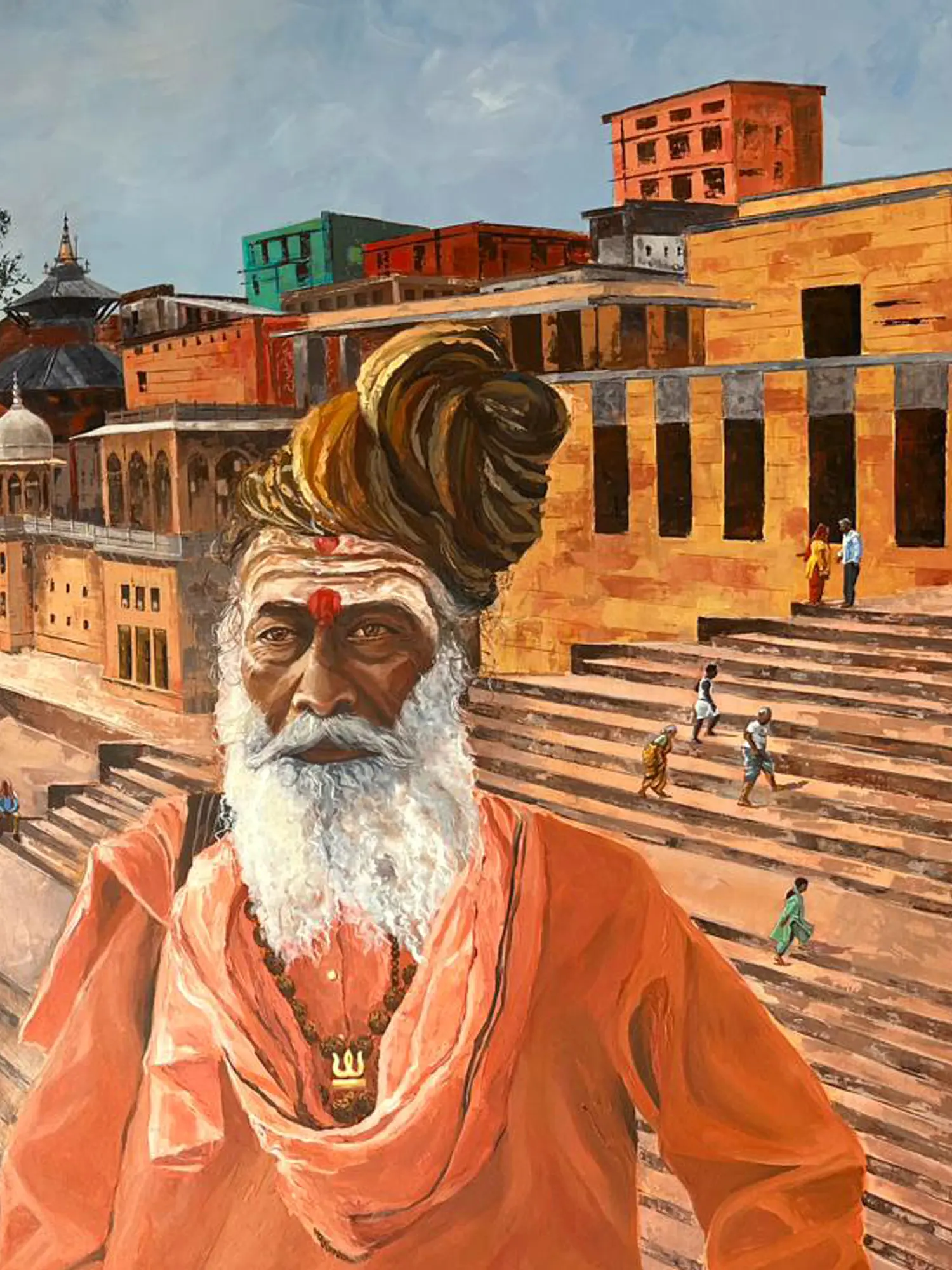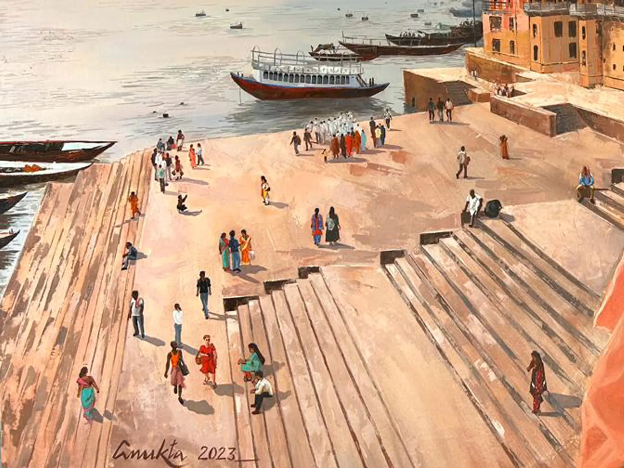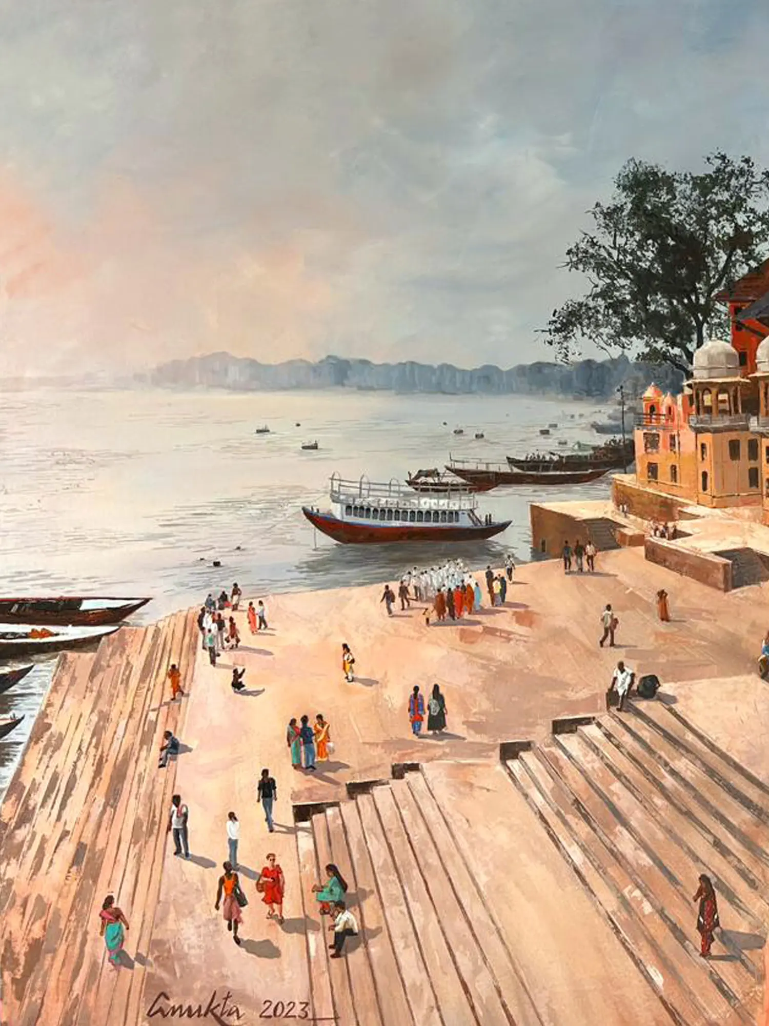 Kashti On Varanasi Rivers Bank | Acrylic On Canvas | By Anukta Mukherjee Ghosh