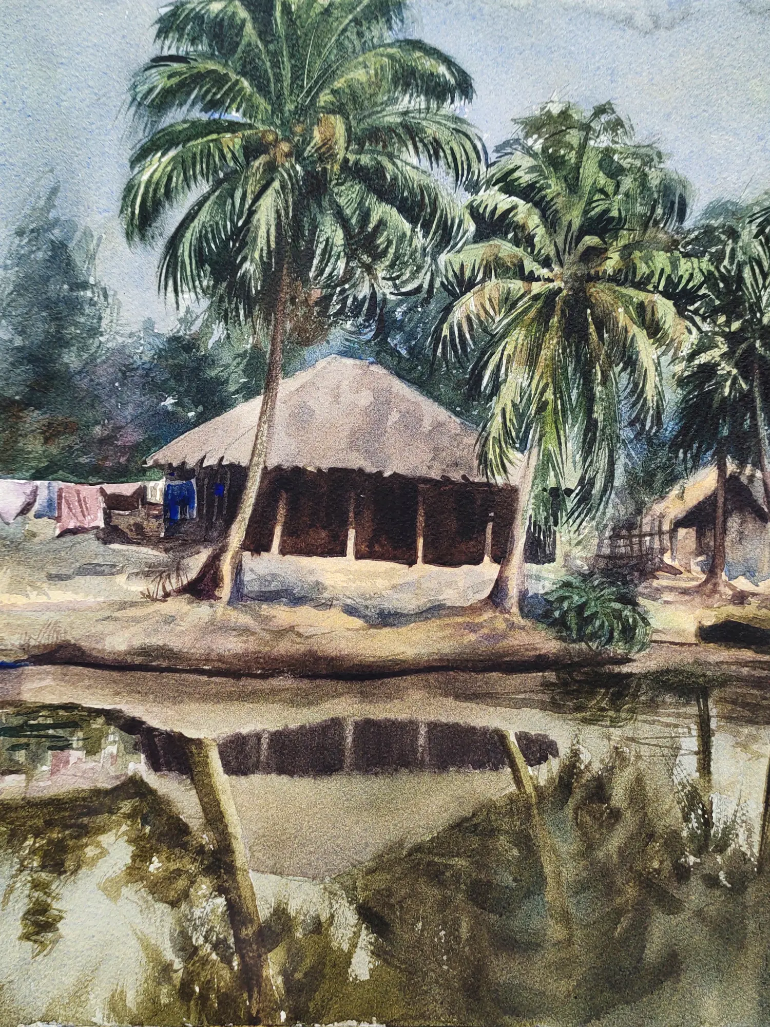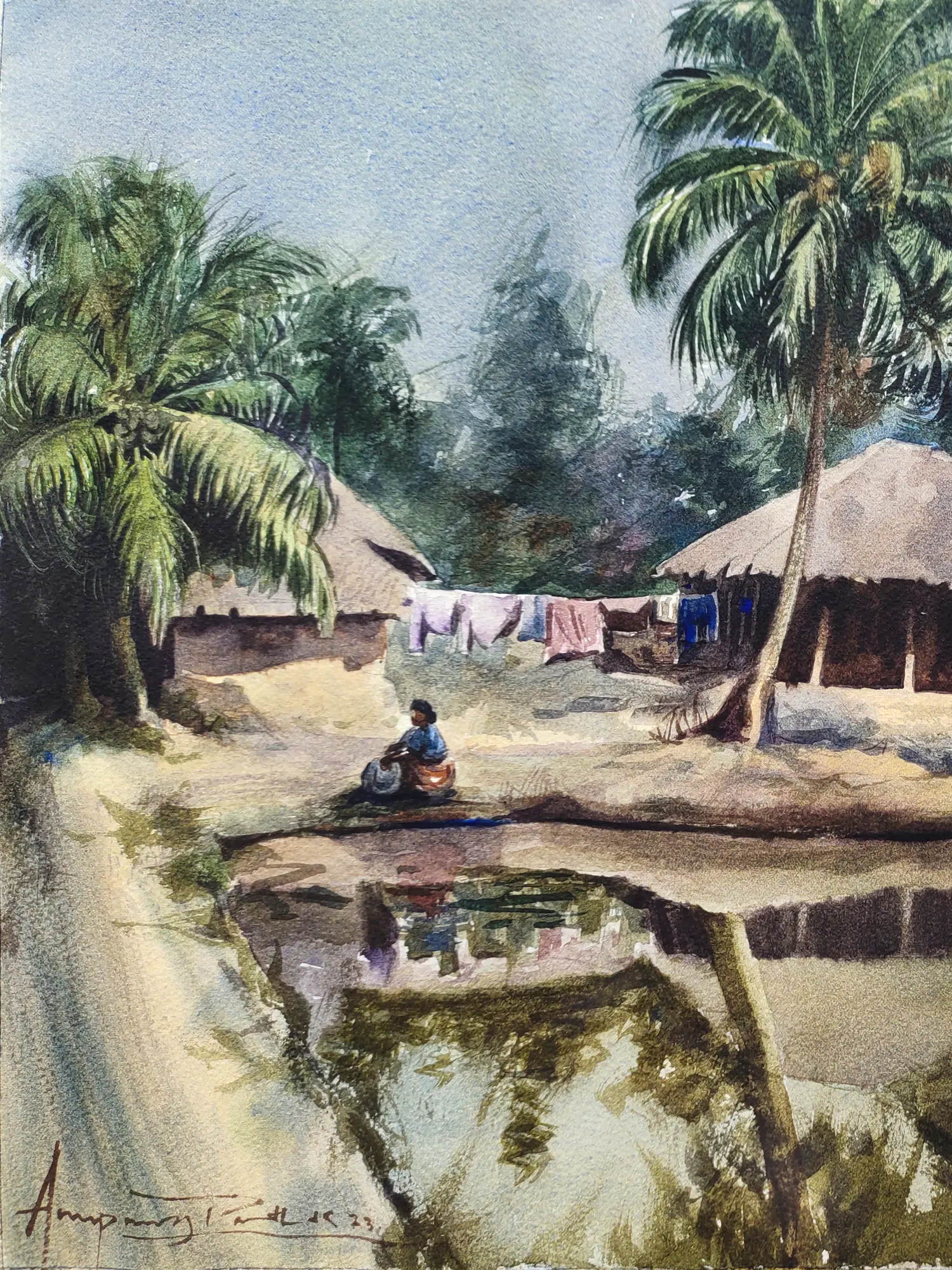 The watercolour painting of a village beauty captures the rustic charm and timeless allure of rural life. With gentle brushstrokes and soft hues, the artwork portrays the simplicity and grace of the village life amidst serene surroundings. Her radiant smile and tranquil gaze reflect the serenity and harmony of rustic existence, inviting viewers to embrace the beauty of simplicity and the tranquillity of nature. Through its evocative imagery and serene ambiance, the painting celebrates the timeless allure of village life and the enduring spirit of rural beauty.