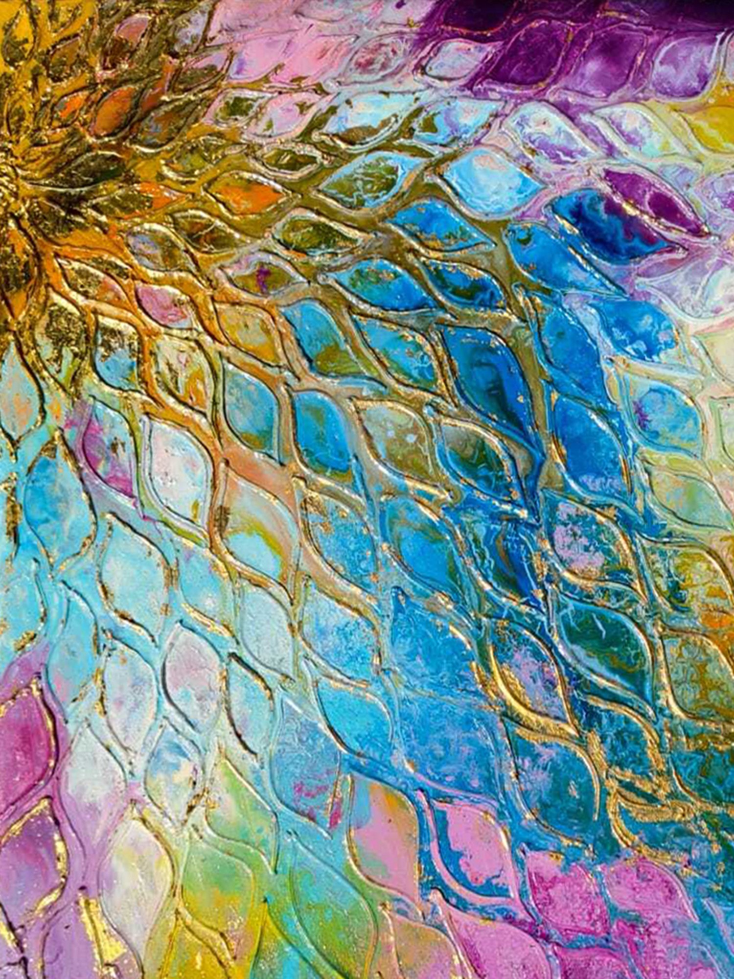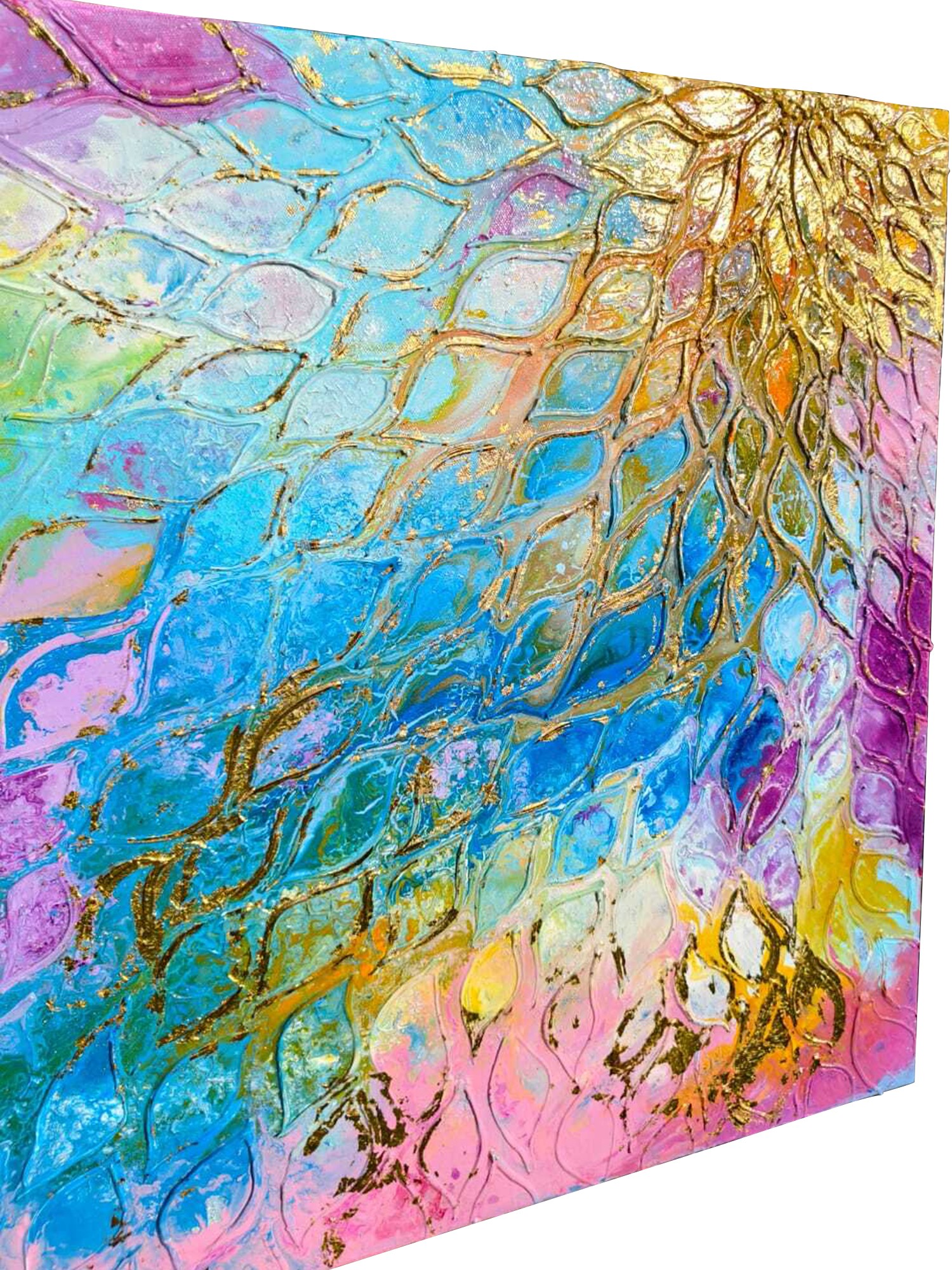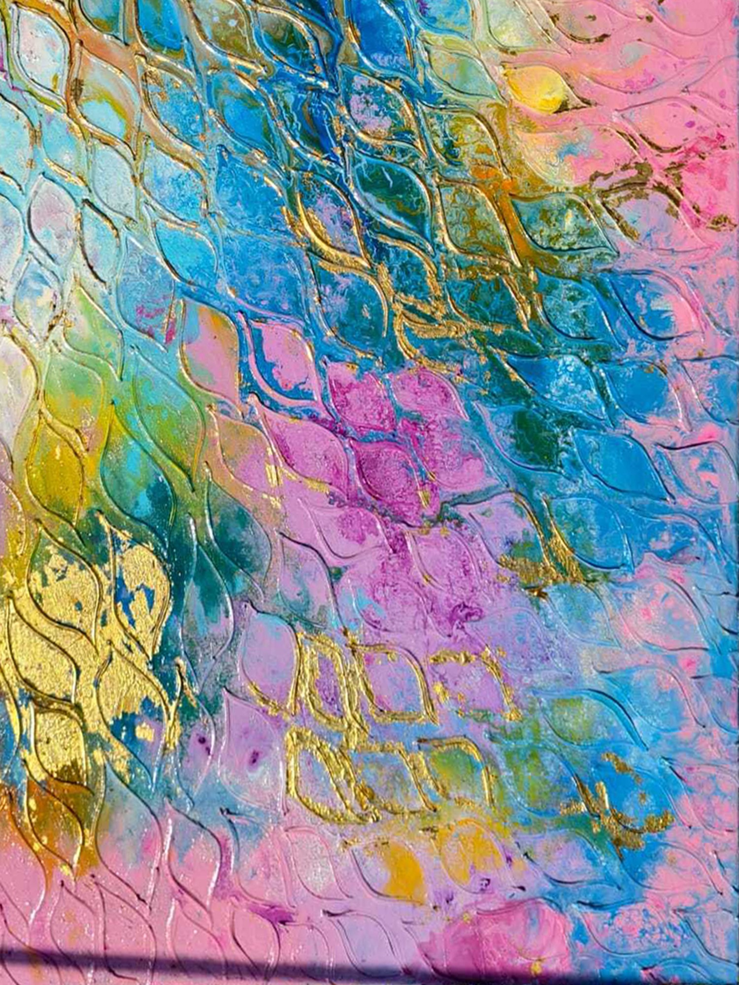 Whispers of Gold and Sky | Textured Art | Acrylic on Canvas | by Priyanka Nishad