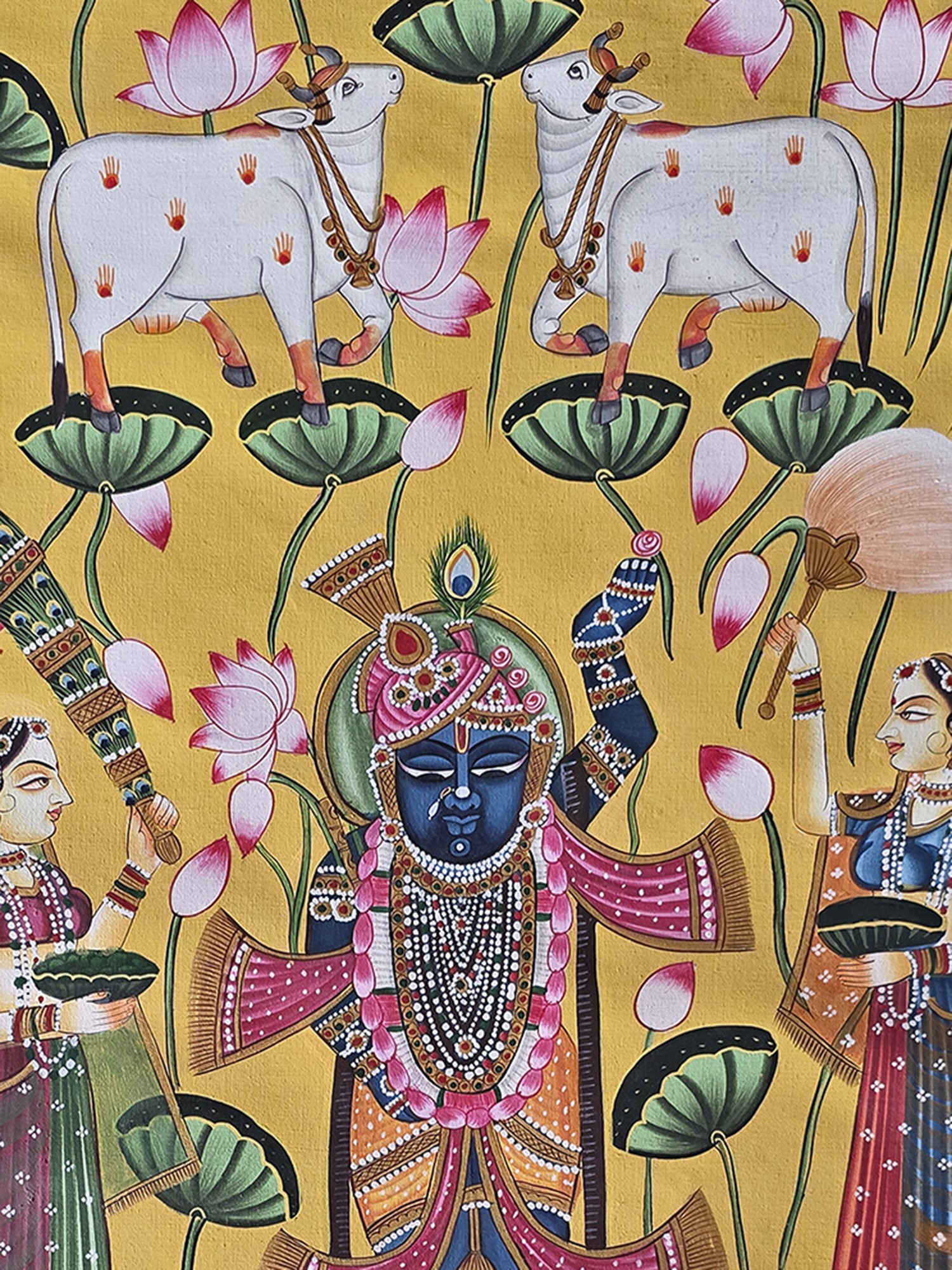Lord Shrinathji Worshipped By Devotees | Natural Color On Cloth | By Dheeraj Munot