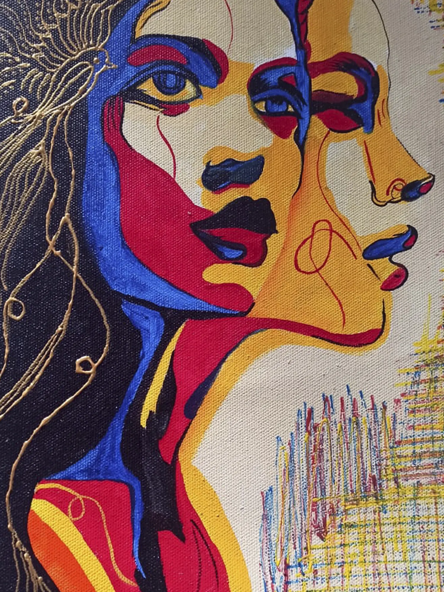 Immerse yourself in a symphony of color and form that speaks directly to the soul. This captivating piece invites introspection, encouraging you to explore the depths of your own narrative. Its dynamic composition and vibrant palette promise to be a perpetual source of inspiration.