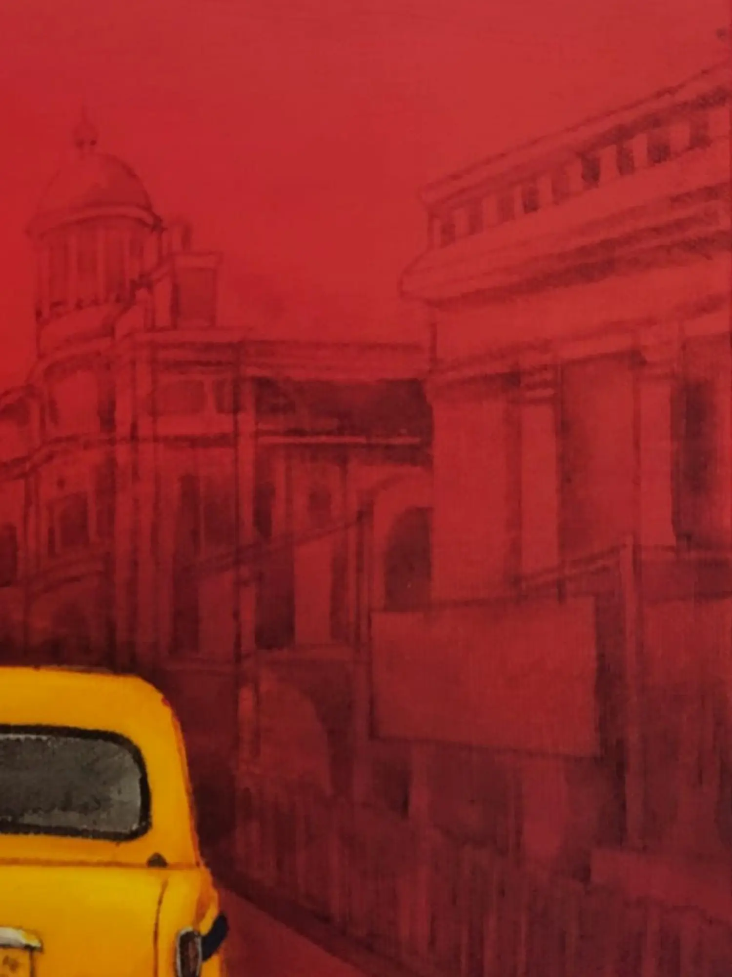 Yellow Taxi In Kolkata City | Acrylic On Canvas | By Payel Mitra