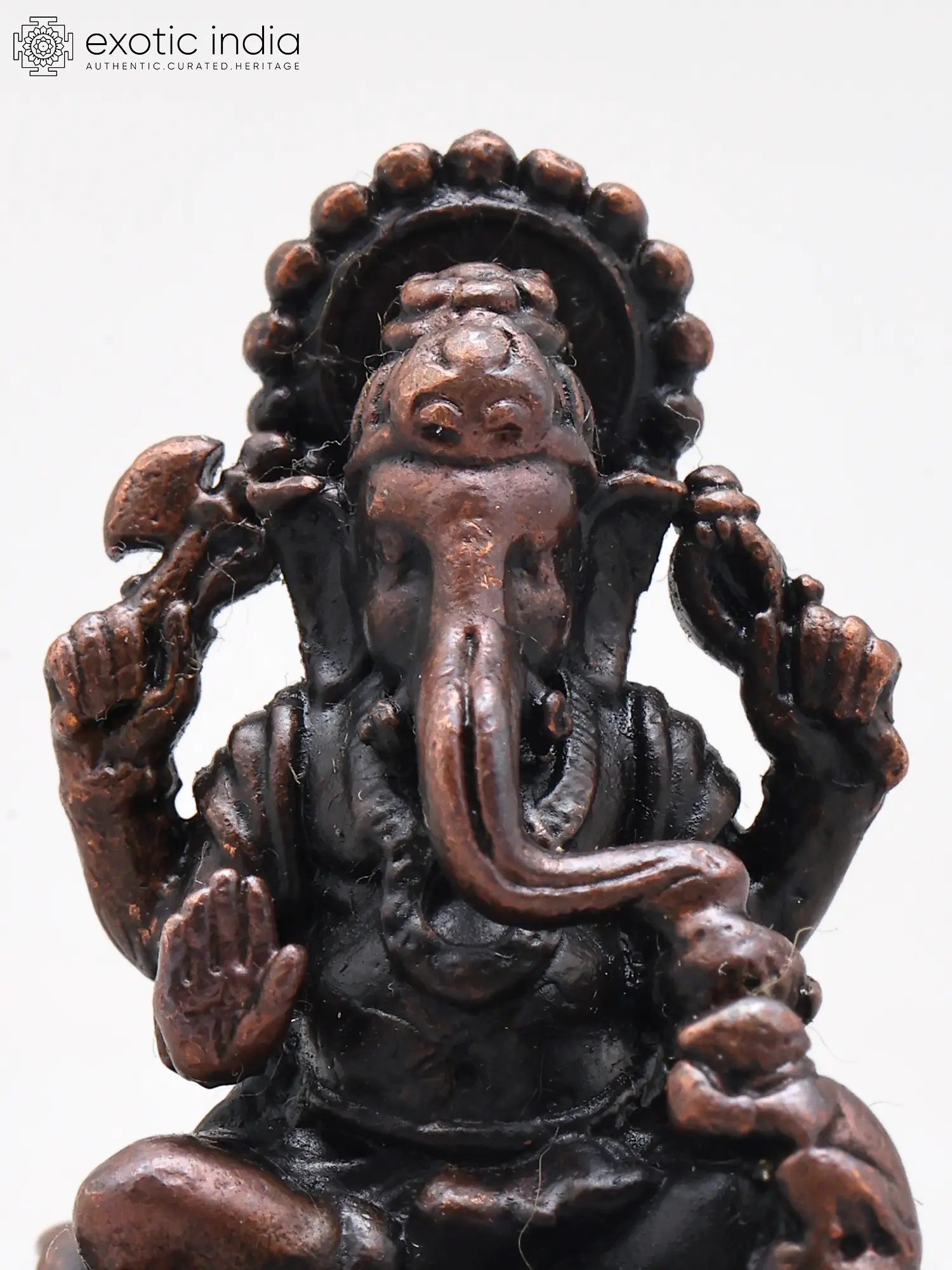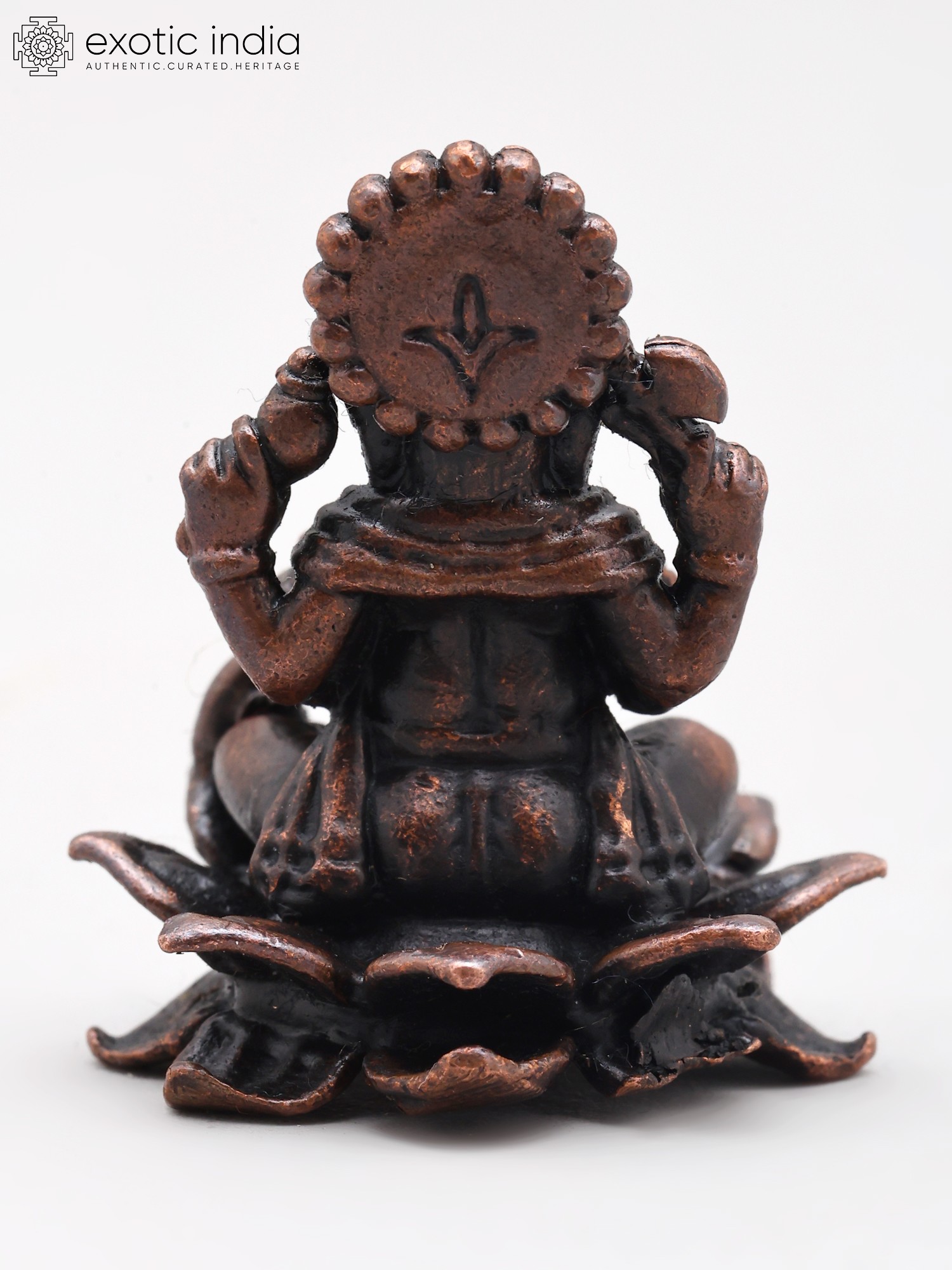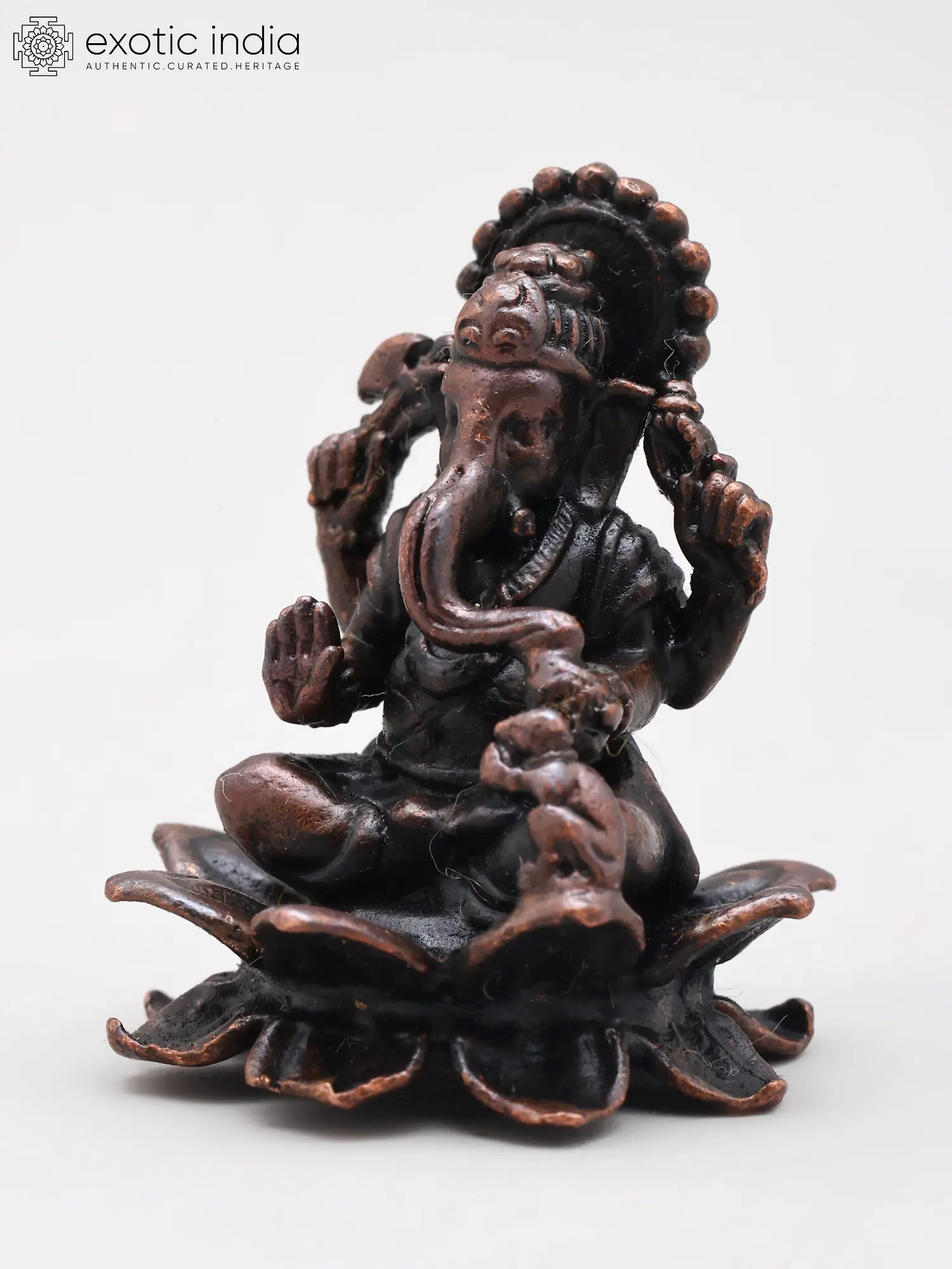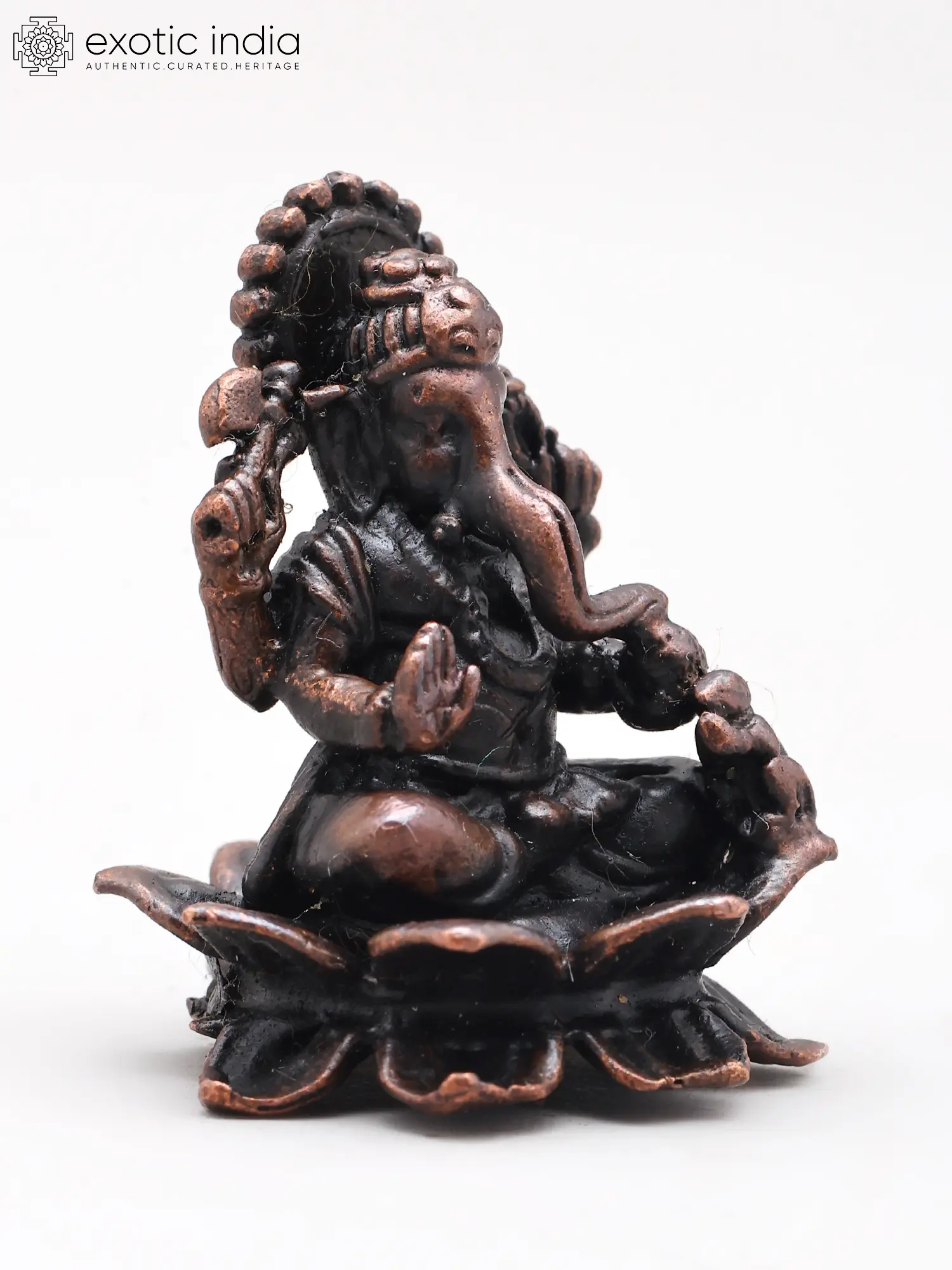 1" Small Blessing Lord Ganesha Seated on Lotus | Copper Statue