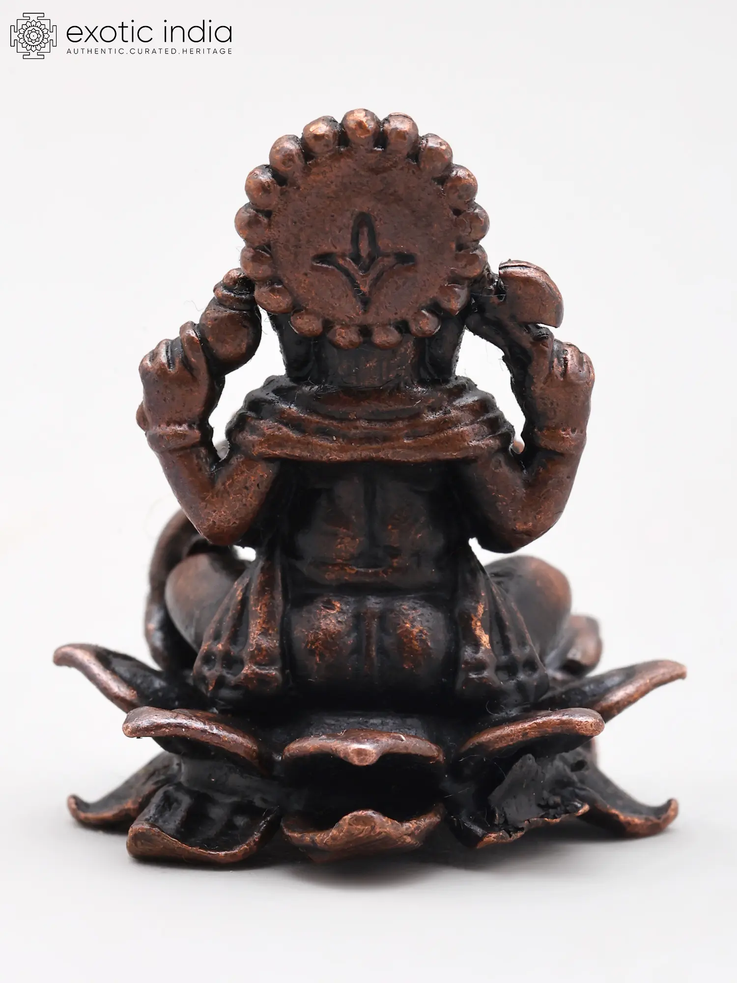 Invite auspiciousness and inner peace into your sanctuary with this exquisitely rendered copper deity. Its compact size makes it a perfect companion for personal contemplation or a subtle yet impactful accent in your cherished spaces.