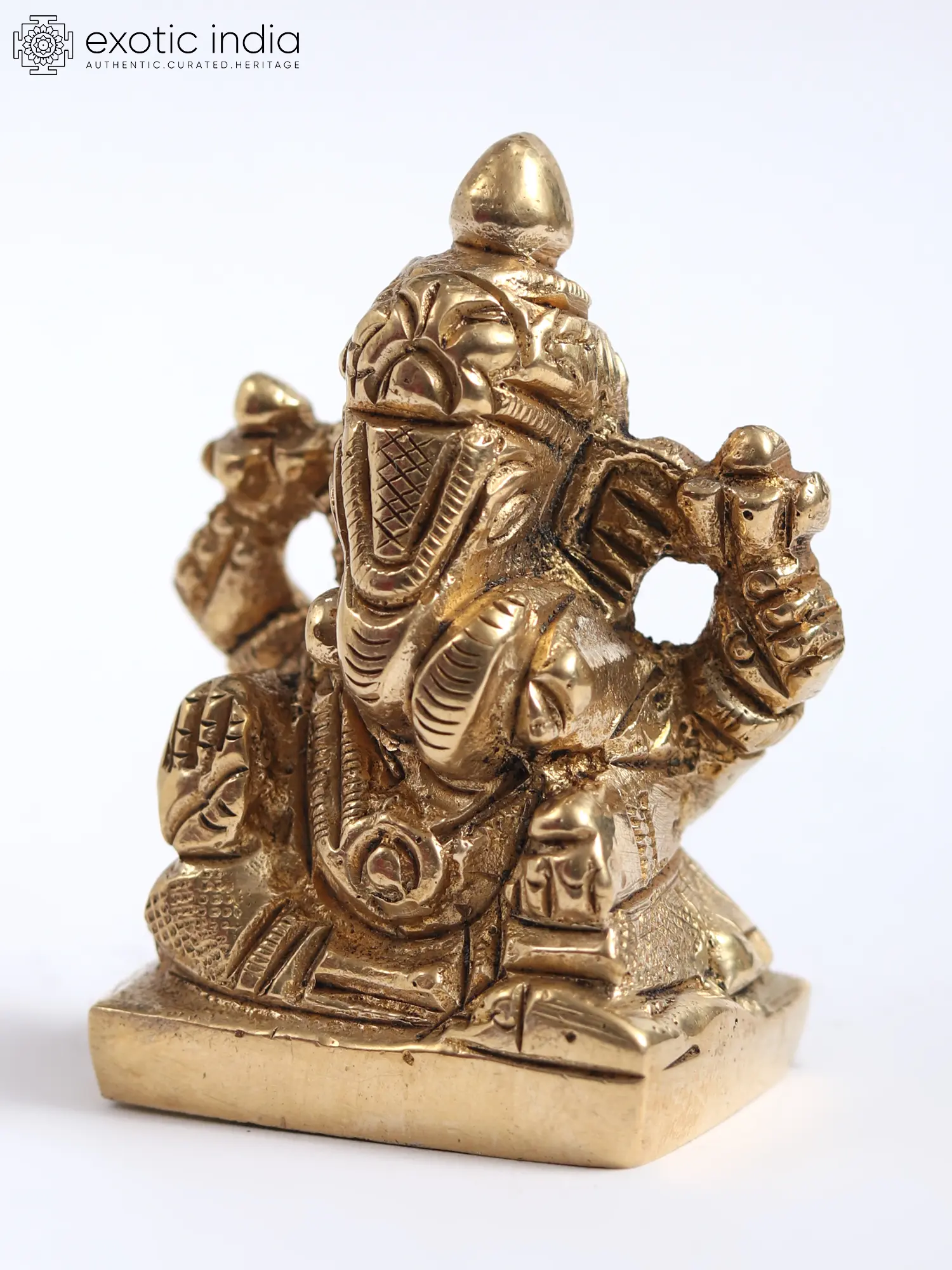 Chaturbhuj Ganesha, Ganesha with four hands, the harbinger of Success, sits in serene majesty. His right hand, open in the reassuring “Abhaya Mudra”, bestows fearlessness upon his devotees. In his left hands, He holds a goad to guide us on the path of righteousness and a noose to gently bind our worldly attachments. This sacred idol, carved in brass, is a symbol of protection and wisdom, reminding us to navigate life’s complexities with courage and restraint. Worshipping Ganesha blesses us with the strength to overcome obstacles and the wisdom to make righteous choices, leading to a life filled with blessings, success, and spiritual enlightenment.