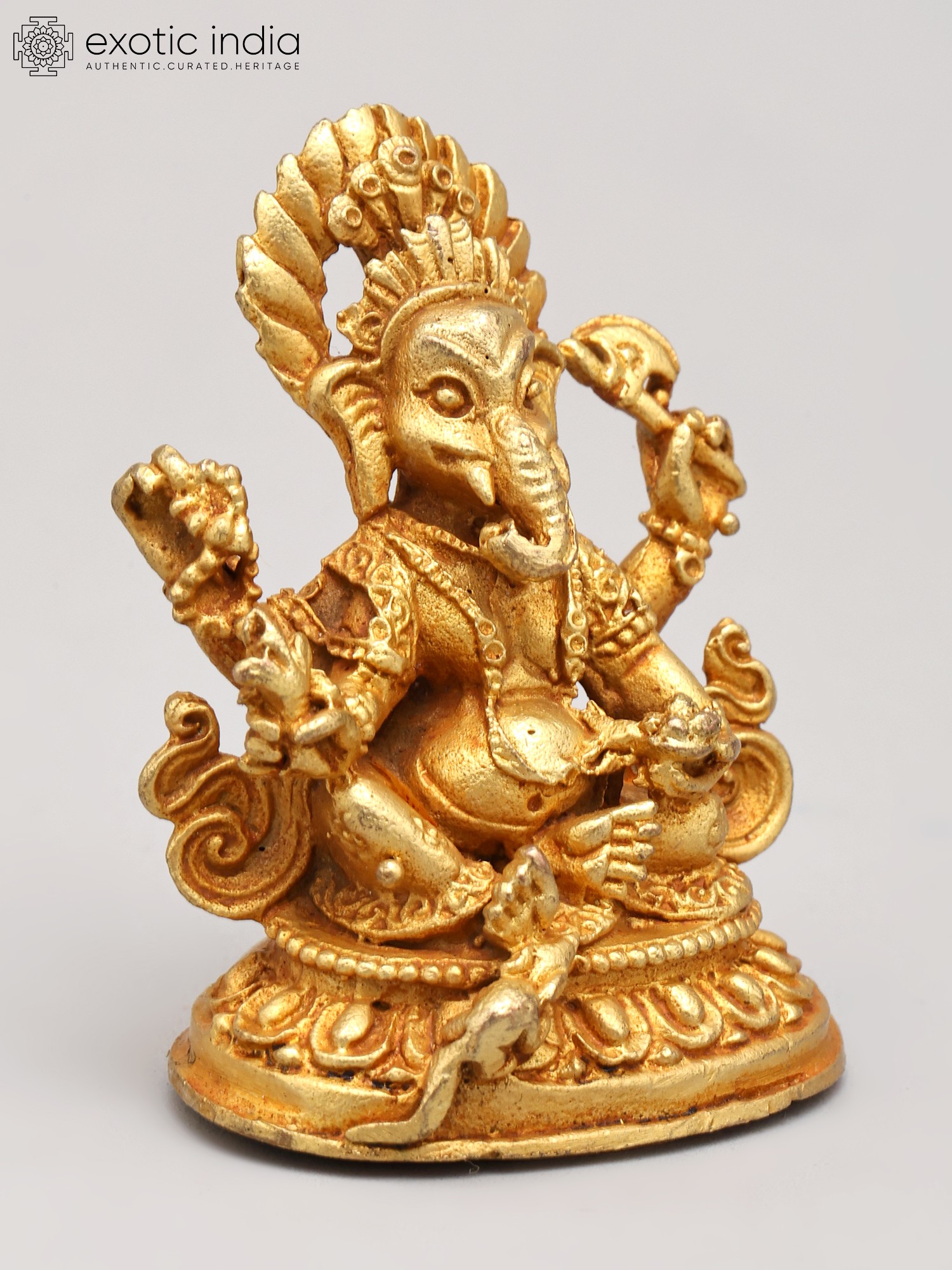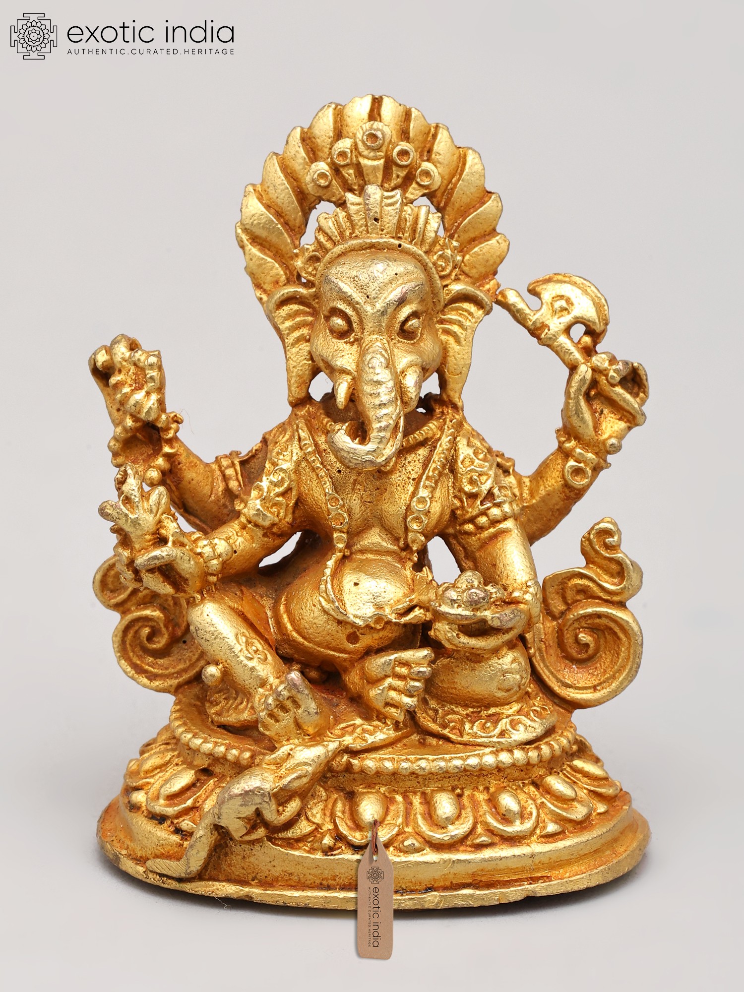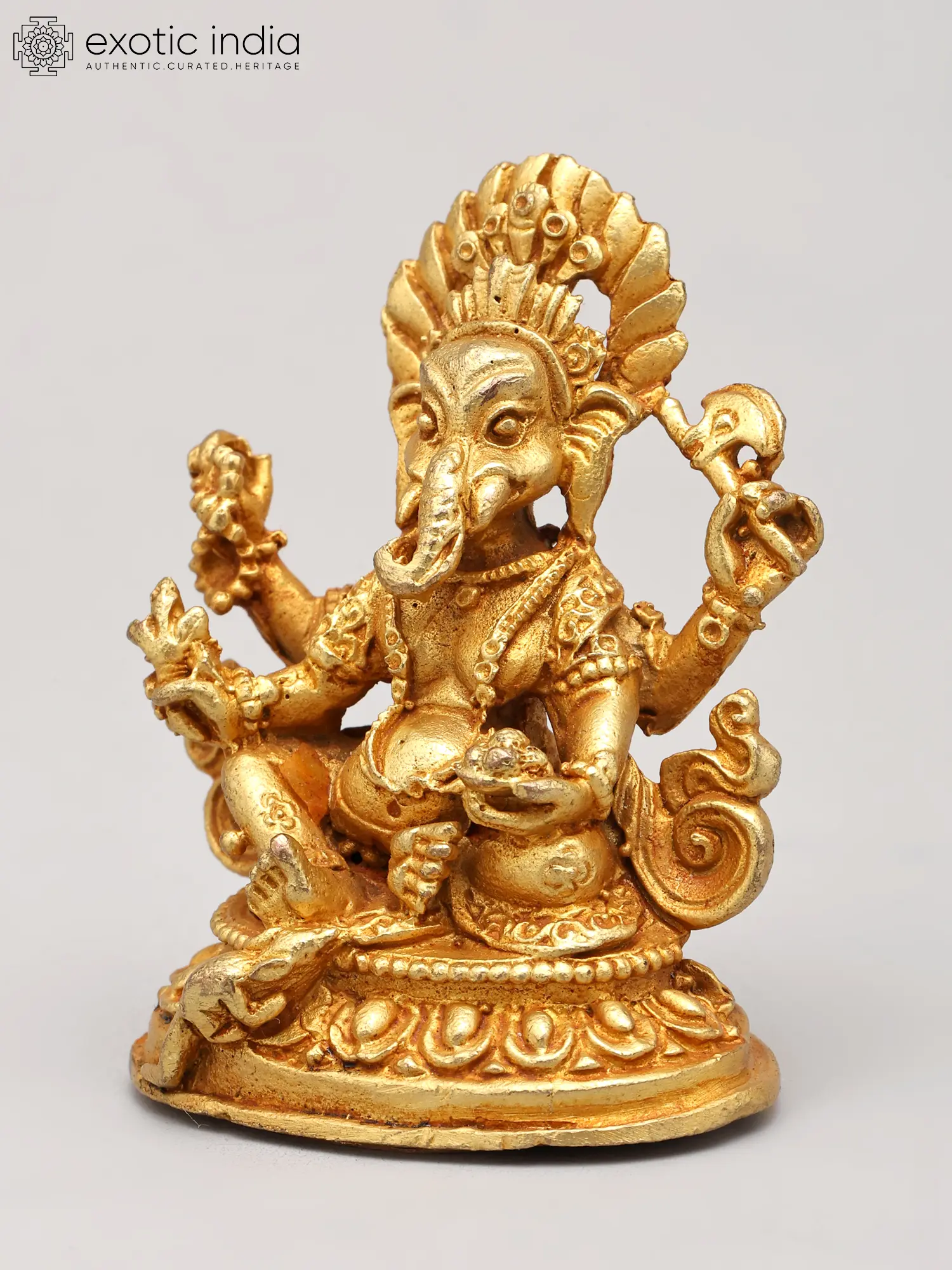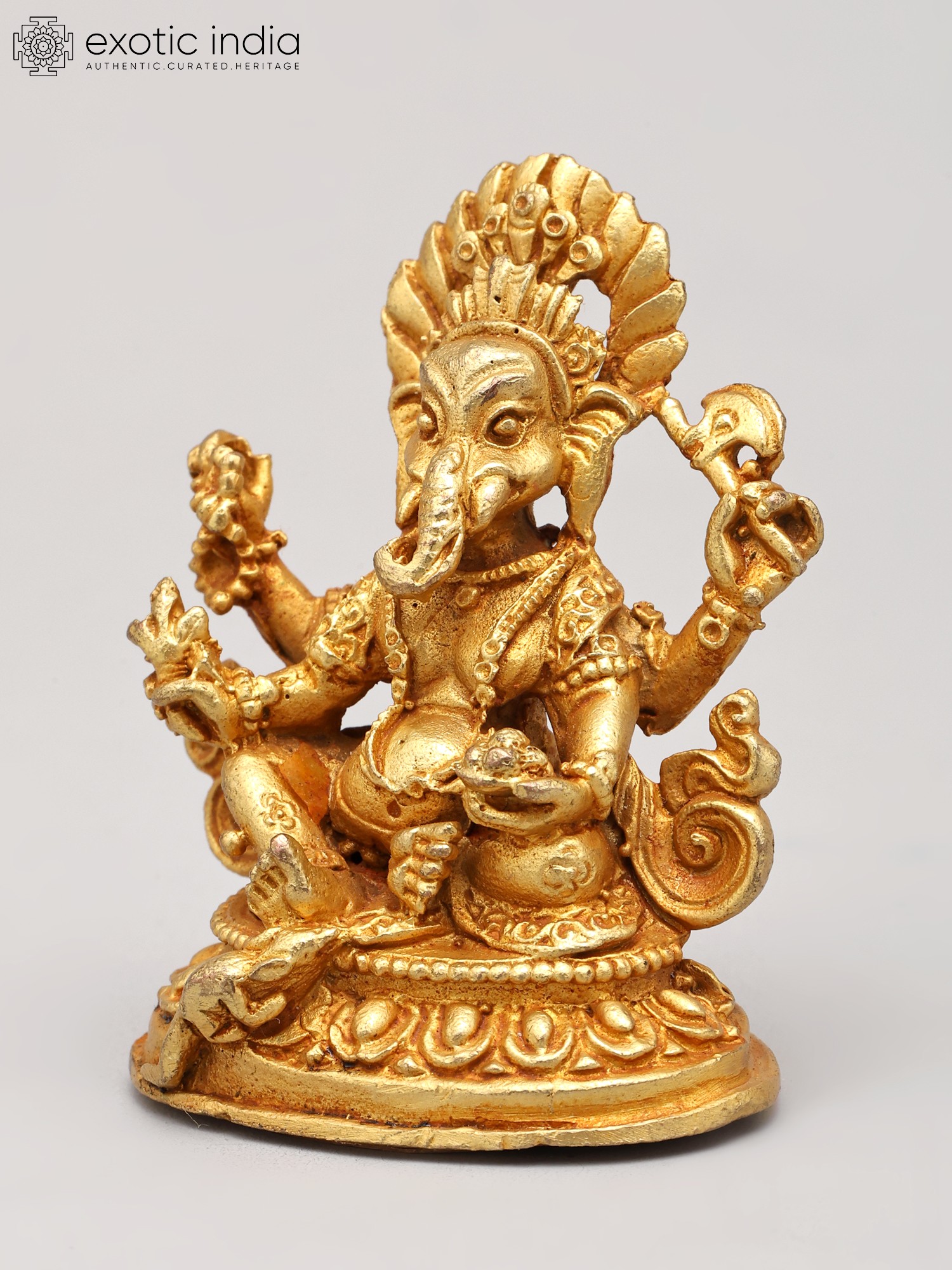 3" Small Four Armed Lord Ganesha Idol for Prosperity and Auspicious Beginnings | Copper Statue | Made in India