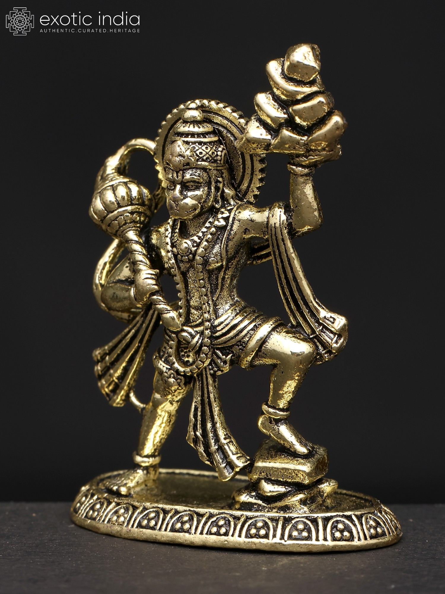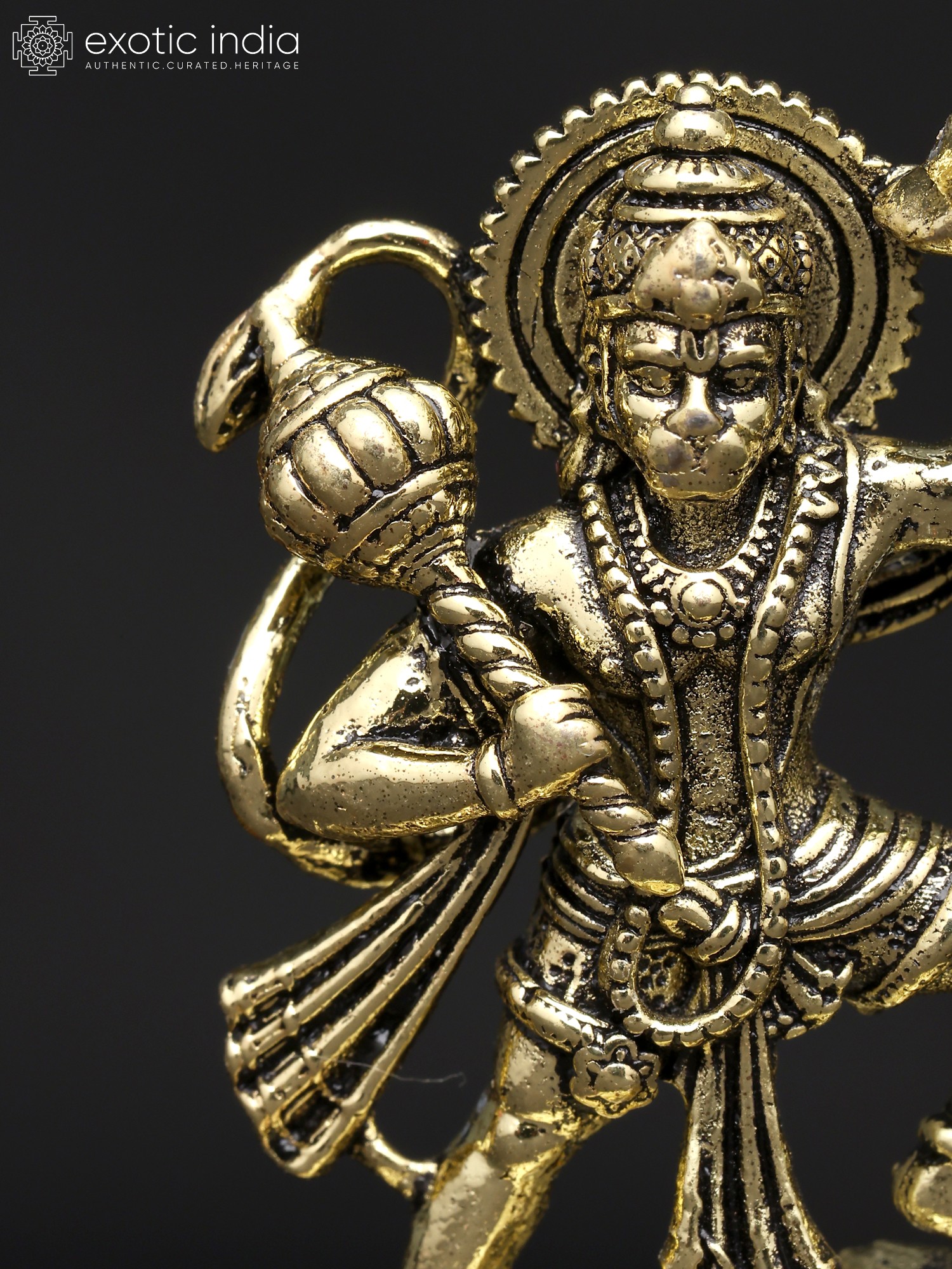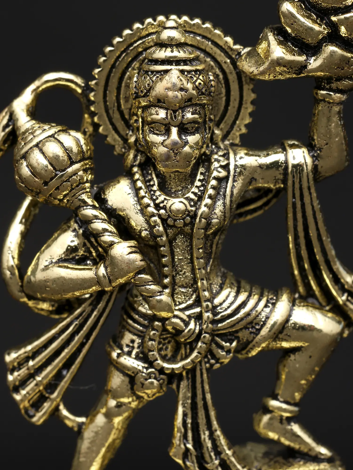 16" Sanjeevani Hanuman | Wood Framed Brass Sculpture | Wall Hanging
