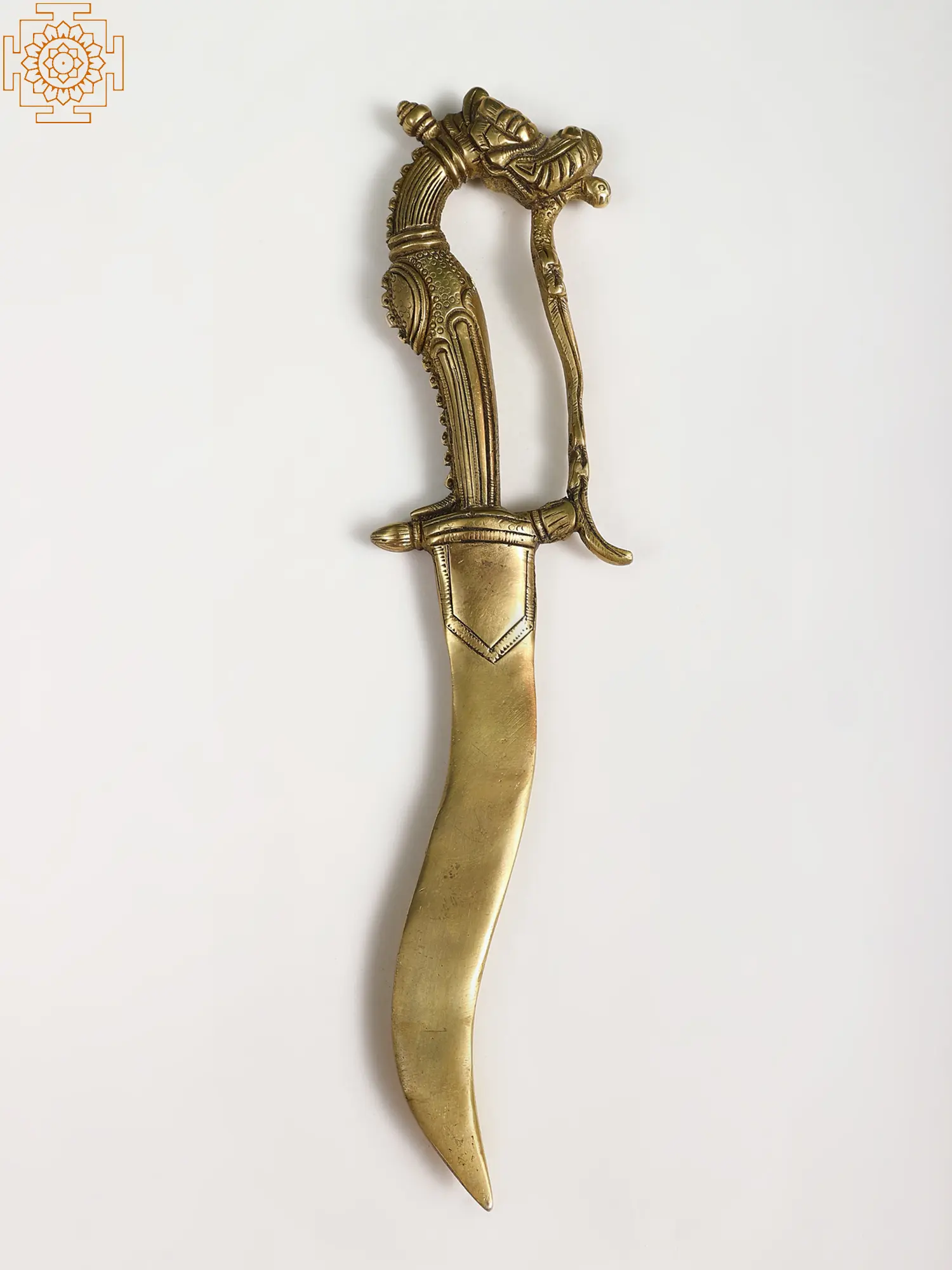 While its design suggests ancient origins and formidable power, this brass dragon dagger is primarily intended as a striking decorative piece. It is an ideal addition to any collection of statues, particularly for those drawn to Asian art, mythology, or pieces that speak of heritage and legend. Display it on a mantelpiece, a bookshelf, or as a centerpiece on a coffee table to imbue your space with a touch of mystique and grandeur. Its lustrous brass finish will catch the light, drawing the eye and sparking conversations about the tales and traditions it represents.