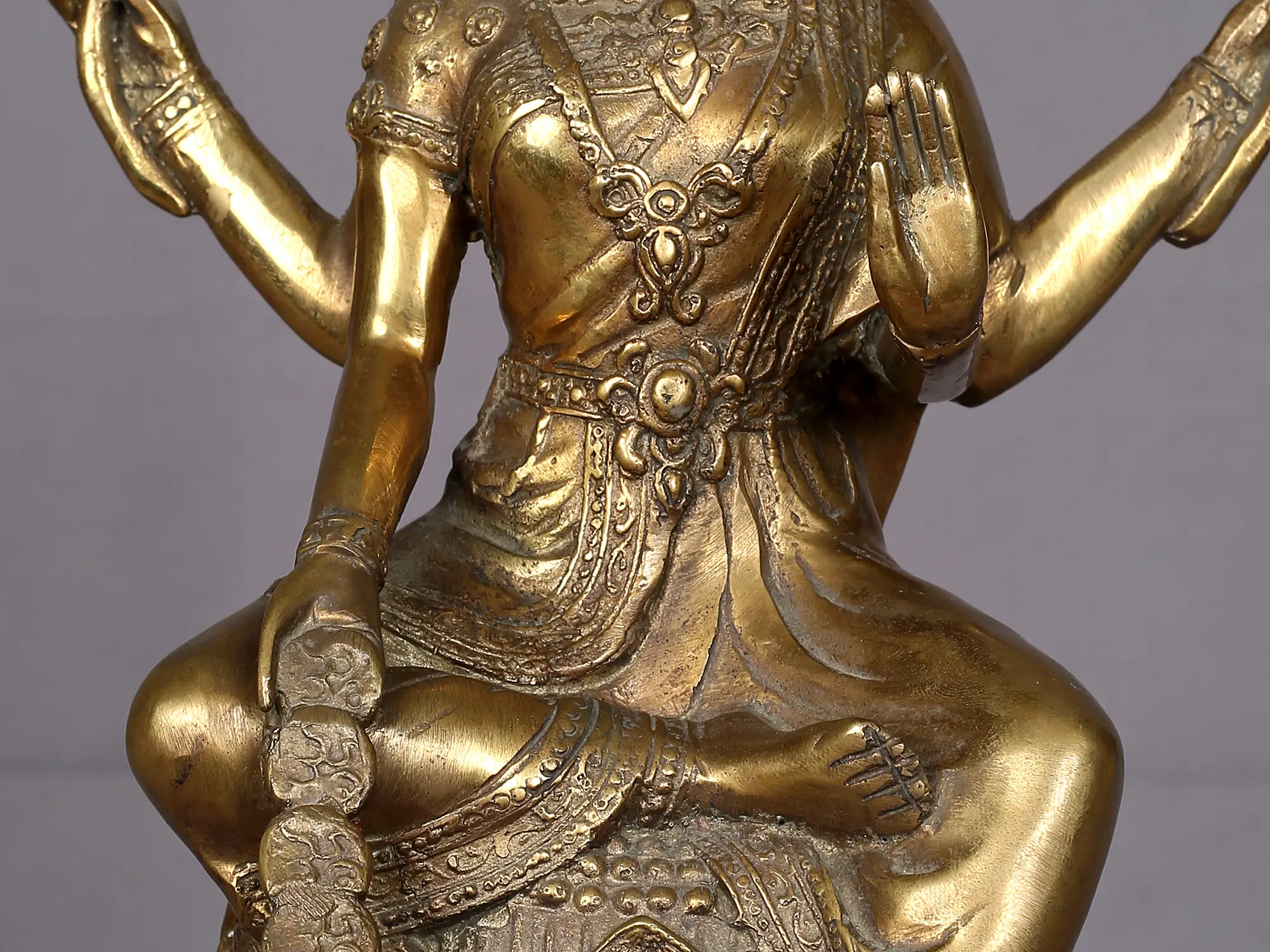 This 10-inch brass statue is an embodiment of grace and spiritual richness. Its presence is believed to attract positive energies, financial stability, and overall well-being. Whether placed in your puja room, meditation space, living area, or office, it serves as a constant reminder of the divine mother's nurturing presence and her ability to bestow blessings upon her devotees. The tactile quality of the brass, combined with its visually striking design, makes it a truly captivating piece that will be cherished for generations. It's an ideal gift for housewarmings, weddings, festivals, or for anyone seeking to invite greater prosperity and harmony into their lives.