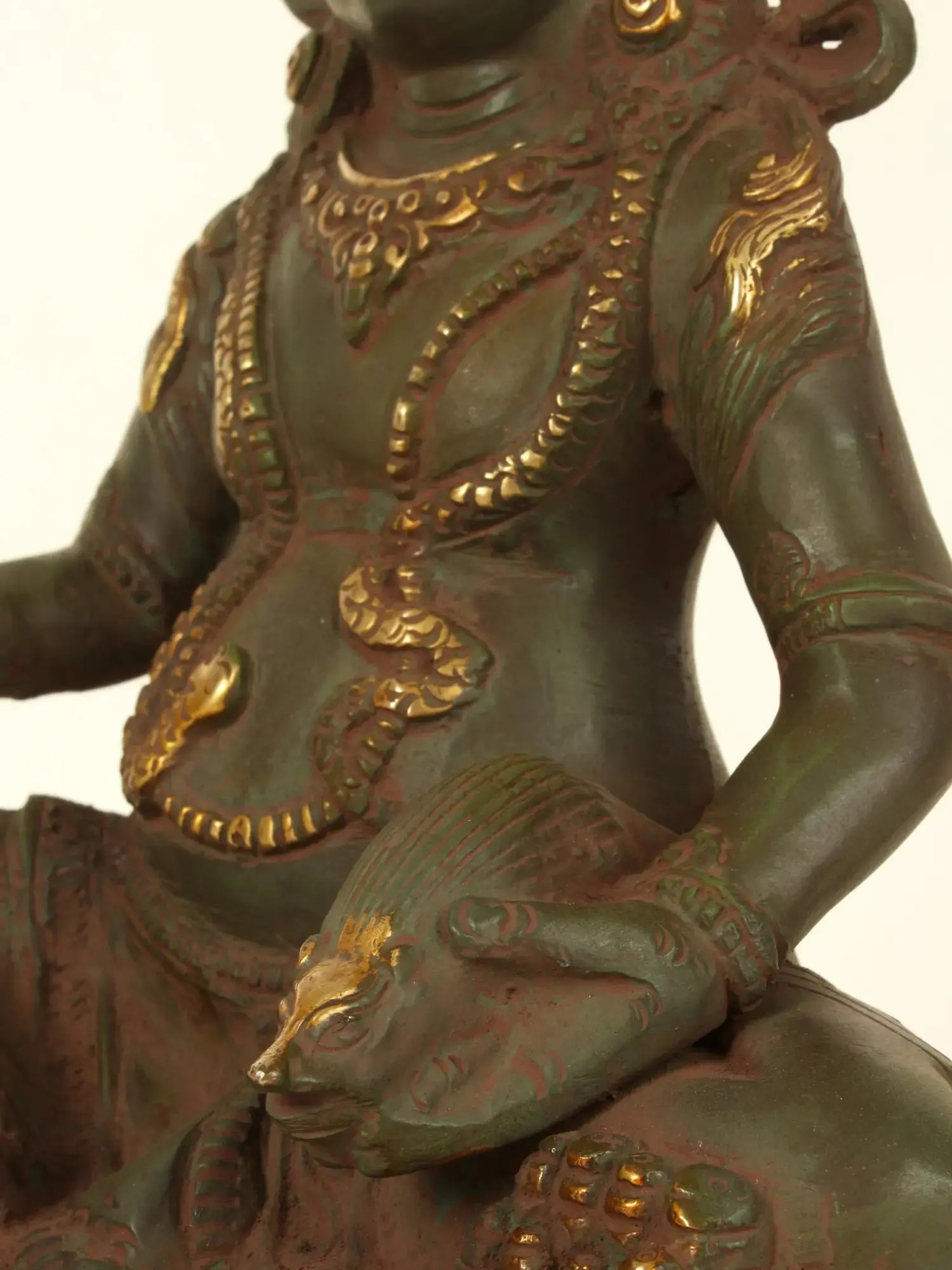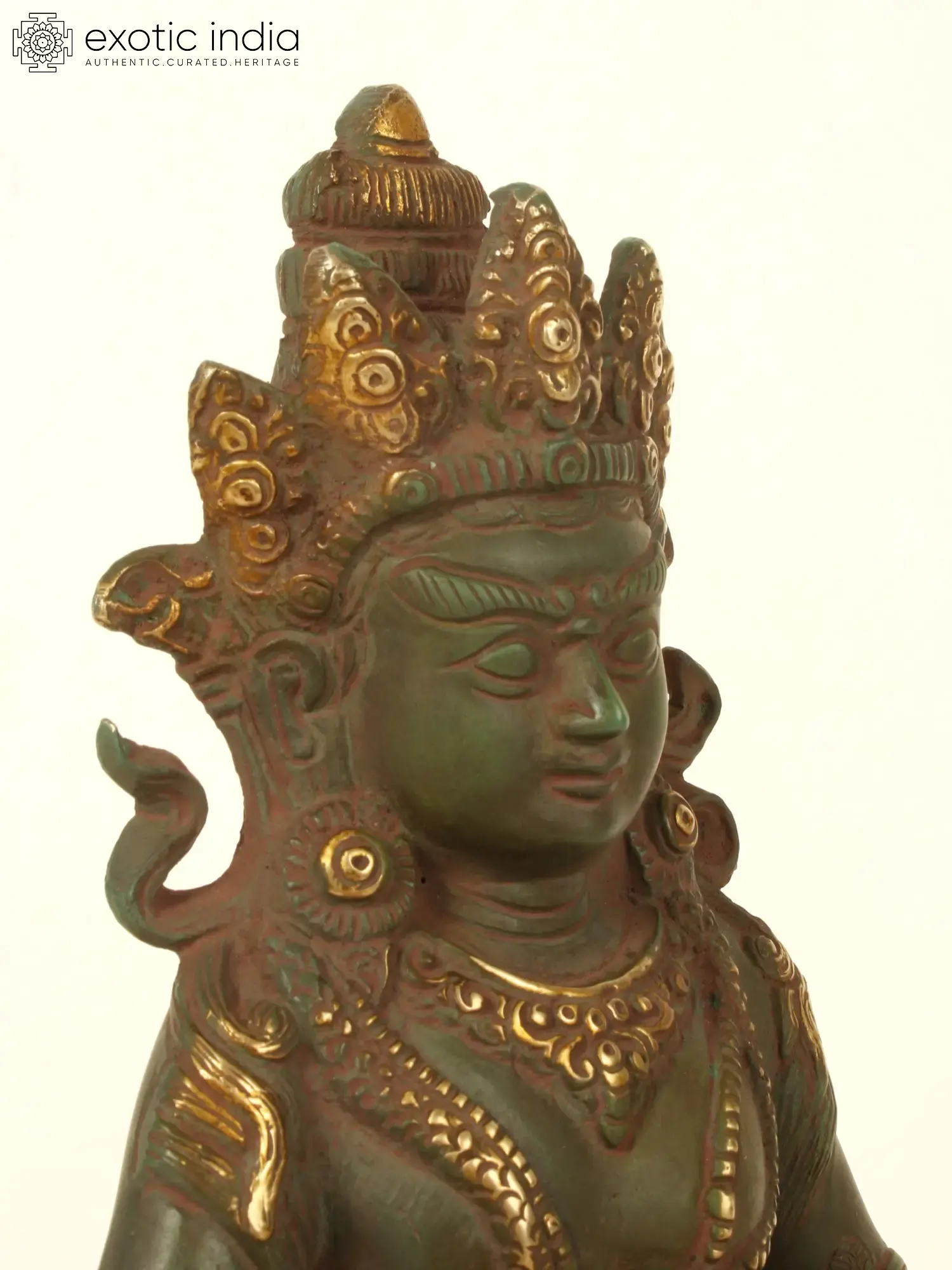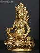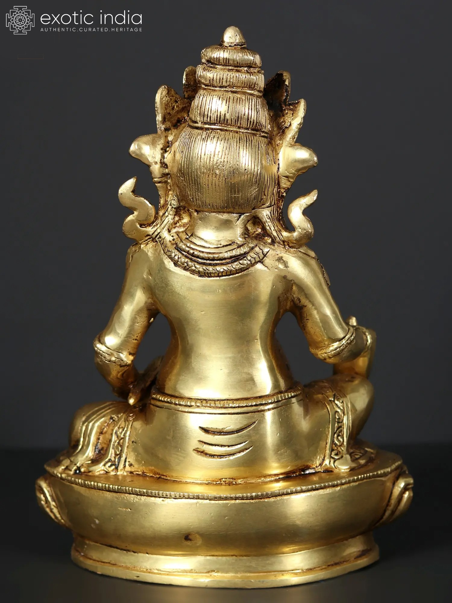 At the core of this brass sculpture lies the representation of Kubera, a revered deity in Tibetan Buddhism known as the Lord of Wealth and Guardian of the Northern Direction. With a profound understanding of the interplay between material abundance and spiritual enlightenment, Kubera symbolizes the harmonious balance between worldly prosperity and inner fulfillment. His presence infuses your environment with an aura of opulence, inspiring you to pursue not only material wealth but also the spiritual riches that enrich the soul - the gem in Kubera's left hand, symbolizing the intrinsic value of knowledge, enlightenment, and the wealth of wisdom and the mongoose resting on Kubera's right hand is an embodiment of auspiciousness and prosperity; Kubera on his Lotus plinth sits in a Lalitasana with a semi-wrathful expression over face.