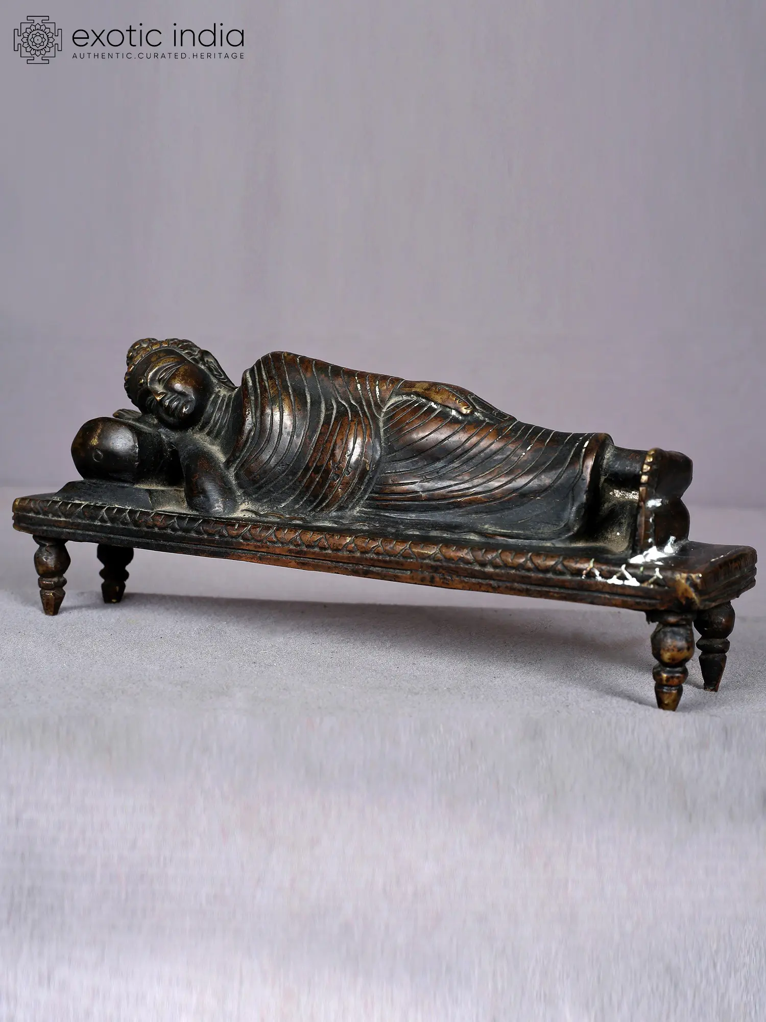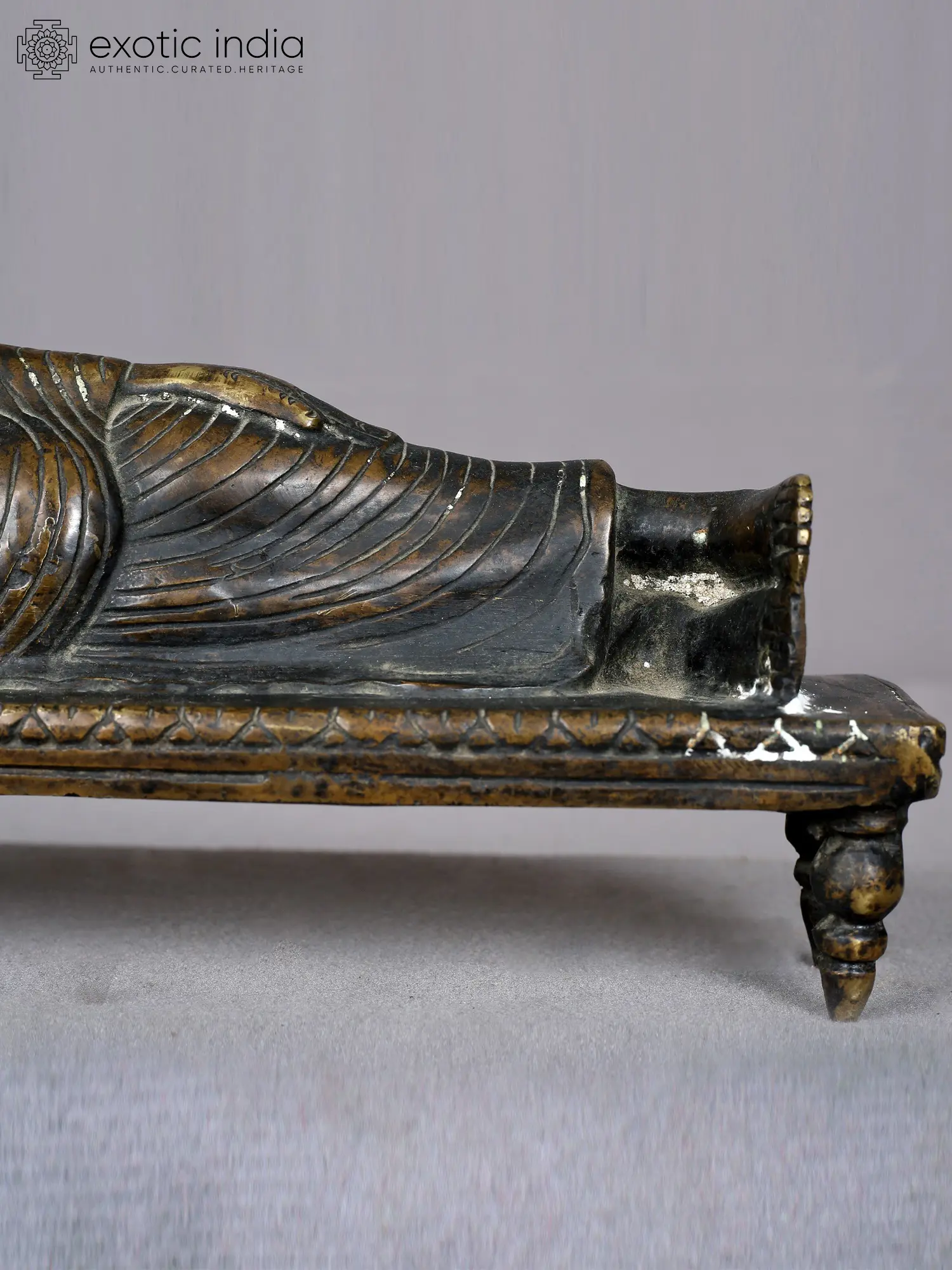 The representation of the reclining Buddha, also known as the sleeping Buddha, captures the profound moment of the Buddha lying down during his Mahaparinirvana. In Buddhism, this specific position is referred to as "mahaparinirvan asana."