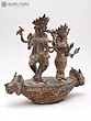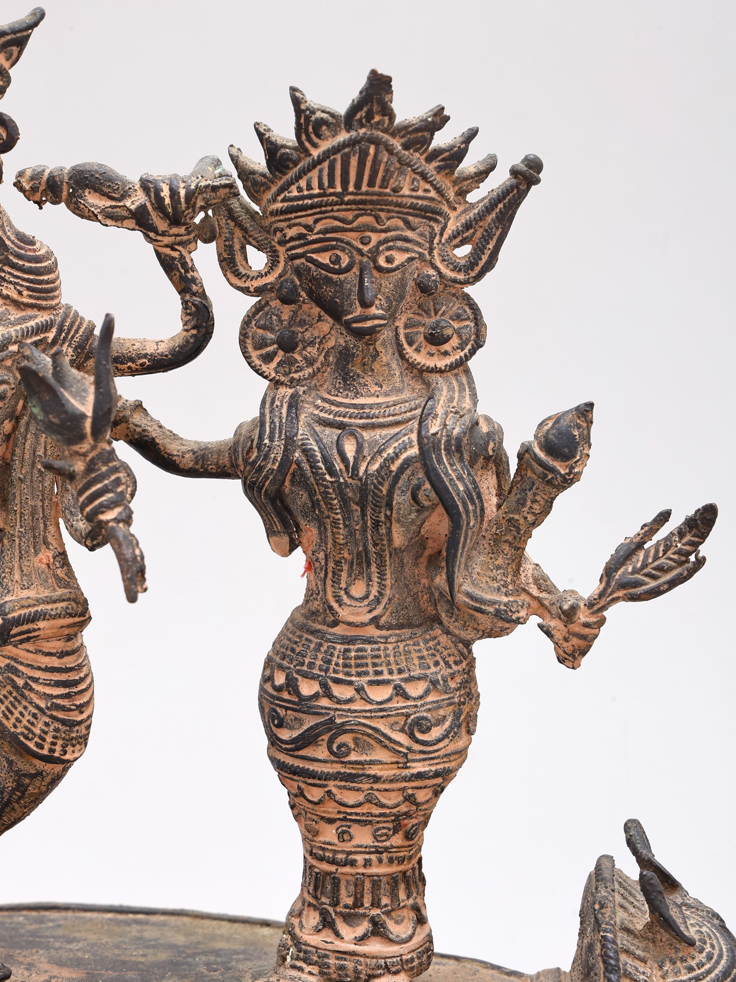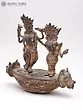 10" Brass Lord Vishnu with Goddess Lakshmi (Tribal Dhokra Art)