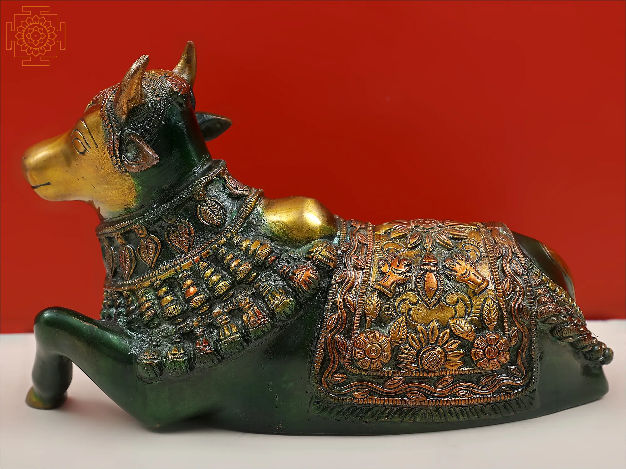 With a form that exudes both power and gentleness, Nandi stands as a symbol of unwavering devotion to his lord. His gaze is fixed upon Shiva, mirroring the deep connection between devotee and deity, as he patiently awaits the divine commands, embodying the role of the faithful guardian and companion.