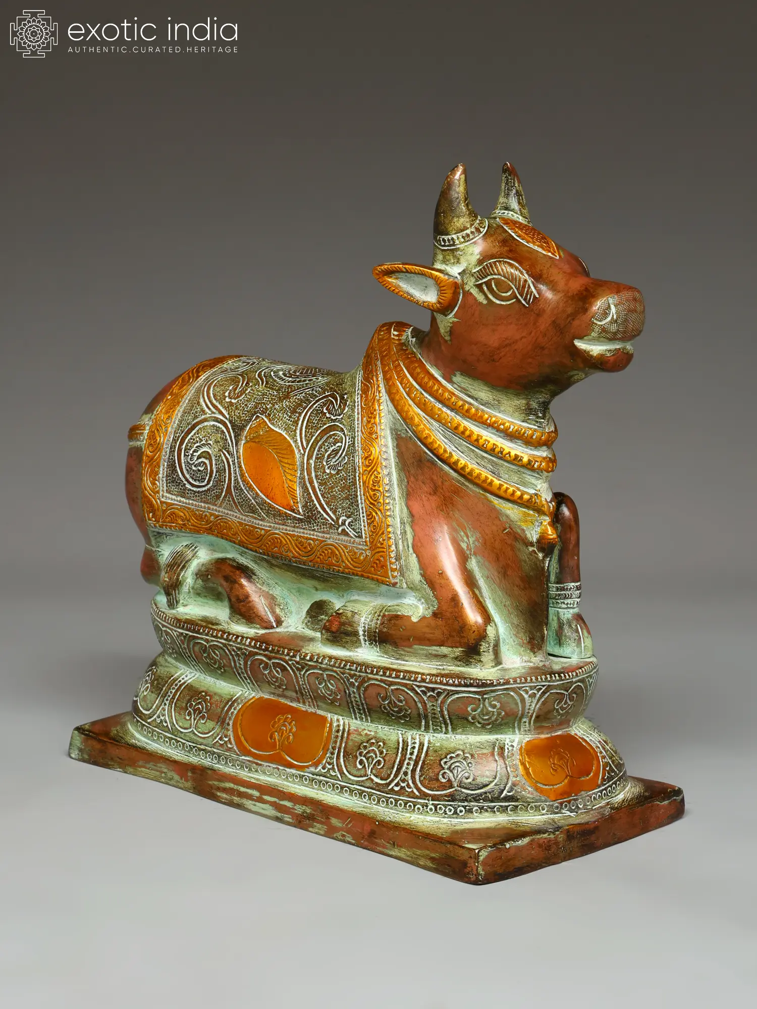10" Brass Engraved Nandi Idol