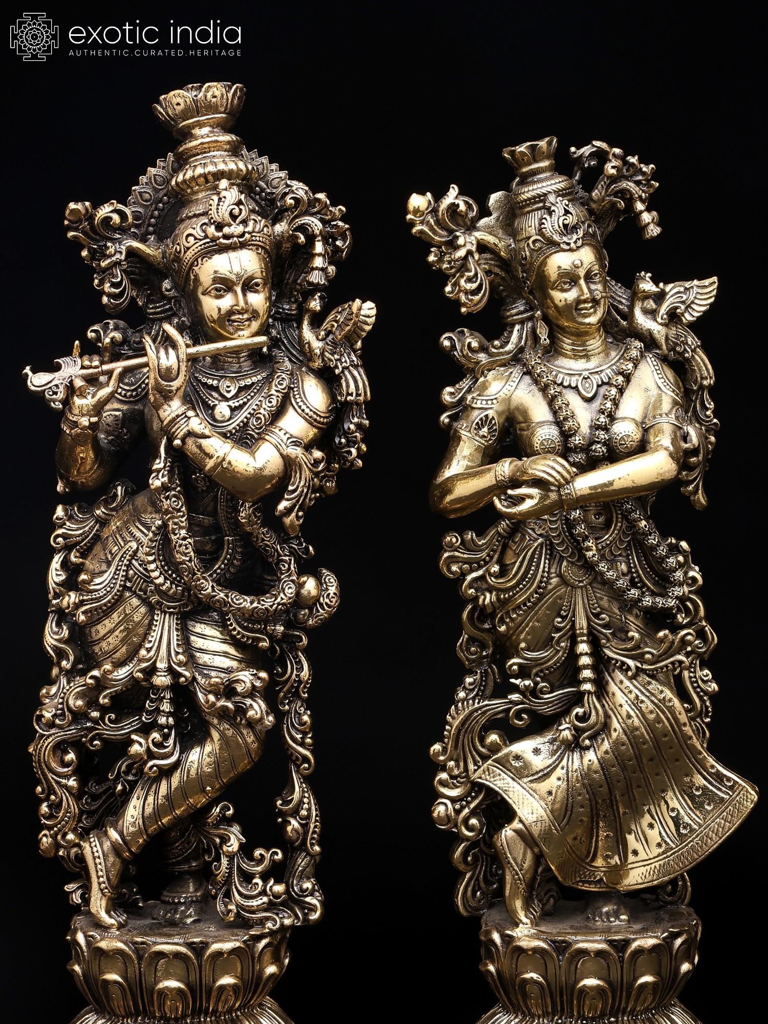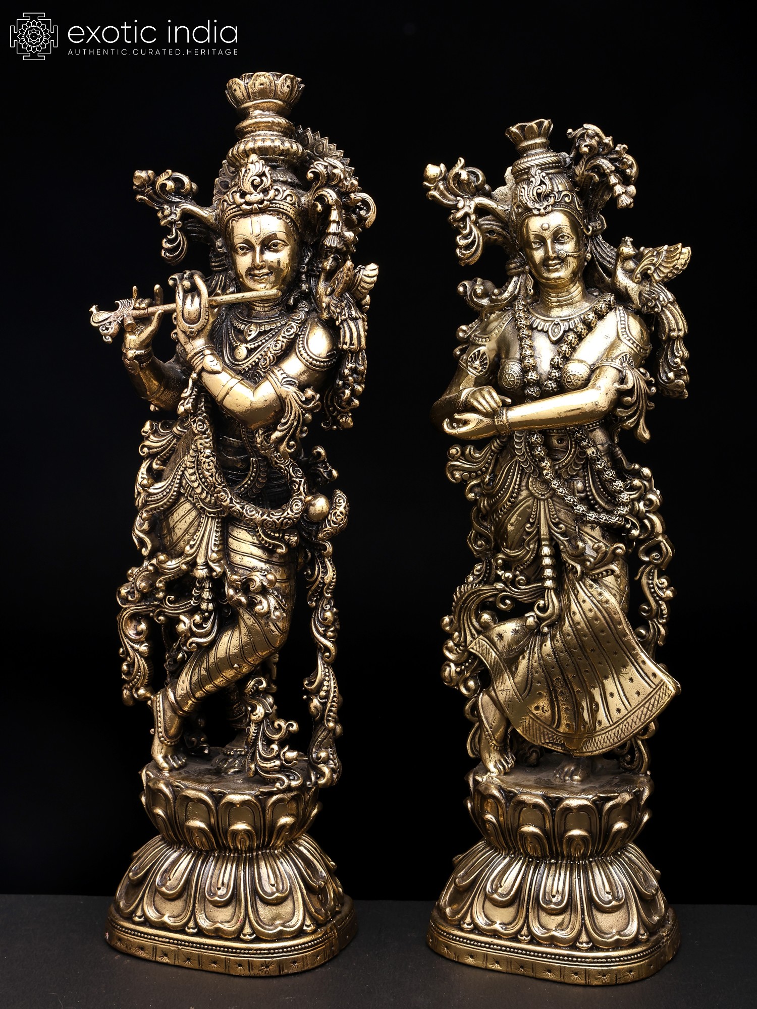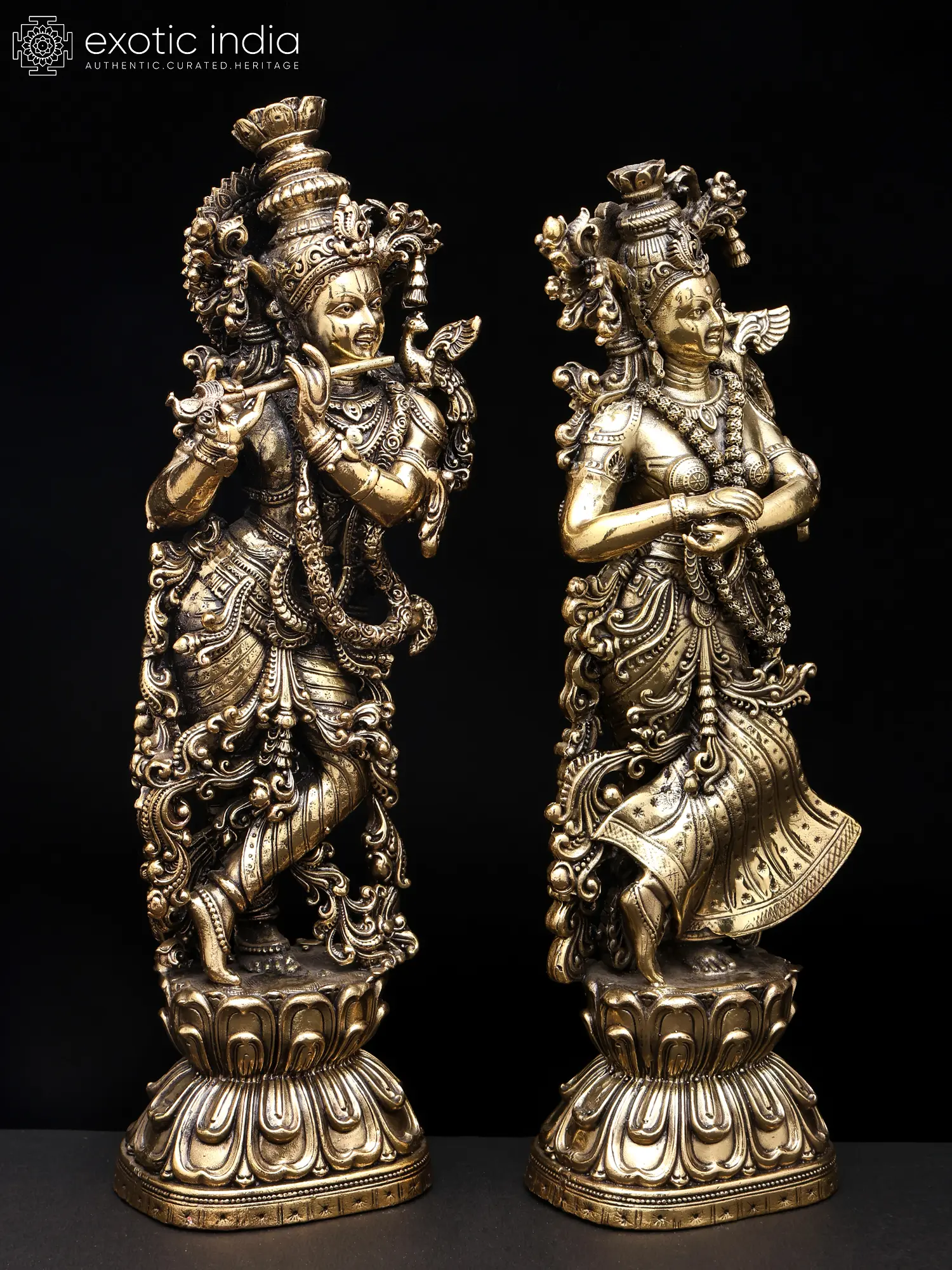 36" Radha Krishna Brass Idol | Handmade | Made in India