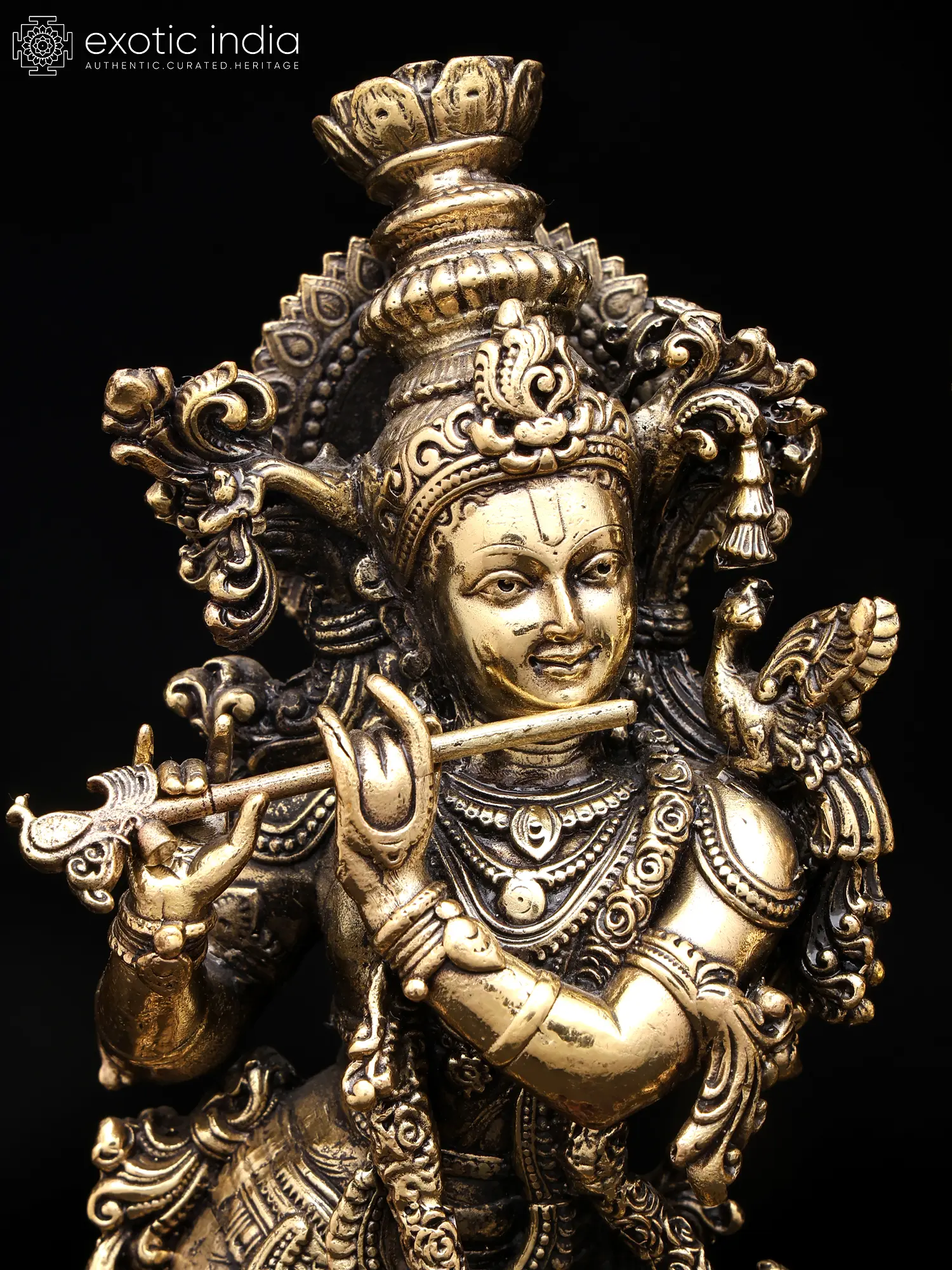 11" Superfine Standing Radha Krishna Pair | Brass Statues with Inlay Work