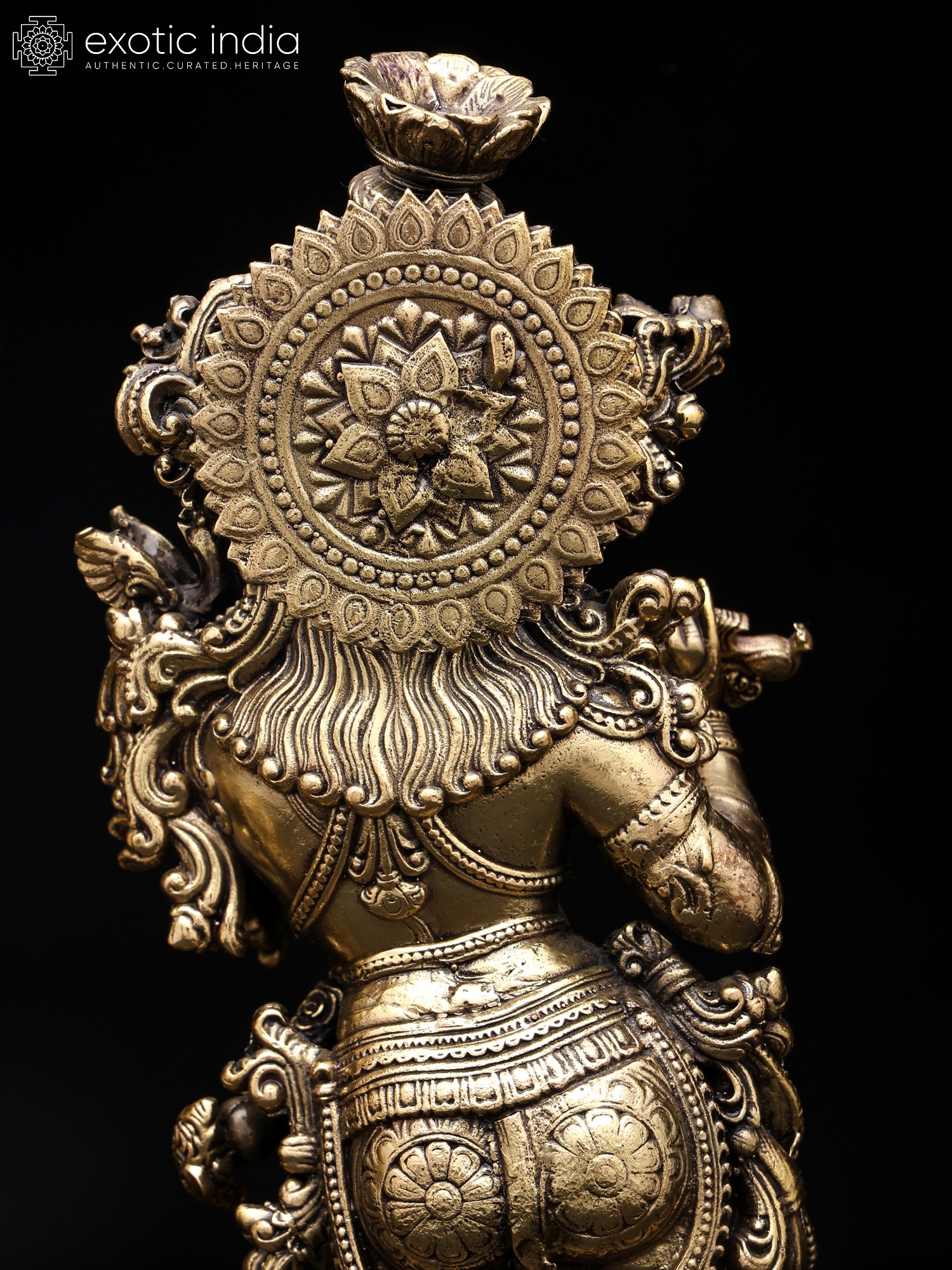 44" Brass Radha-Krishna Statues within an Aureole Engraved with Krishnaleela Episodes