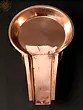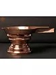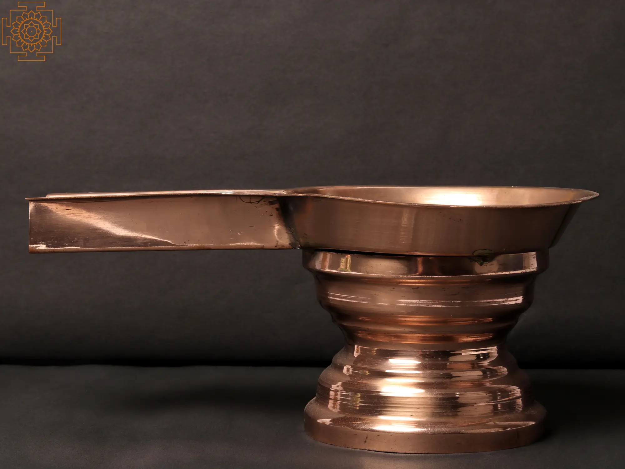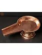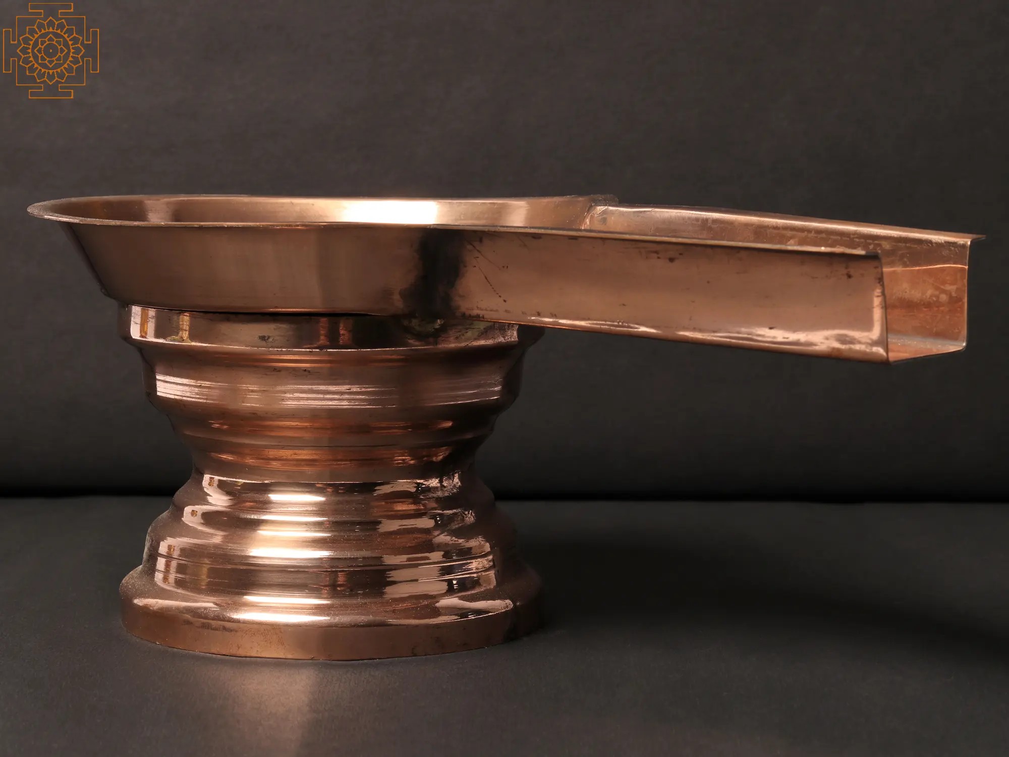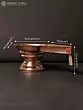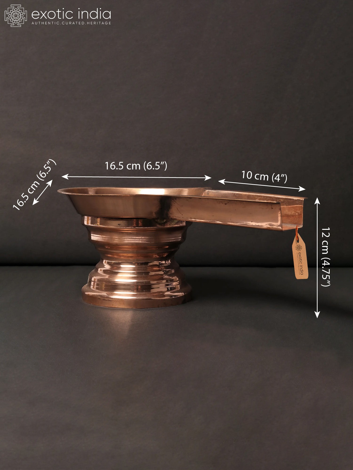 This exquisite copper vessel is crafted to facilitate the sacred ritual of Abhishekam, the ceremonial bathing of deities. In Hindu tradition, the act of pouring liquids such as milk, water, honey, or ghee over a consecrated idol is a profound expression of devotion and a means to invoke divine blessings. This patra, with its thoughtful design and lustrous copper material, serves as an ideal conduit for such sacred offerings. Copper itself is revered in Vedic culture for its purity and its ability to conduct spiritual energy, making it a favored material for religious paraphernalia. The form of this patra is reminiscent of ancient Brahminical practices, where the ritualistic pouring of libations was central to appeasing and honoring the gods. The wide, shallow bowl is designed to hold the sacred liquids, while the elegantly extended spout allows for a controlled and graceful flow. This spout, often referred to as a channel, ensures that the offering is directed precisely, mirroring the reverence with which such acts are performed. The accompanying base provides a stable platform, elevating the vessel and enhancing the visual appeal of the ritualistic setup. The tiered, ornamental design of the base speaks to the craftsmanship and attention to detail that characterizes traditional Indian metalwork.