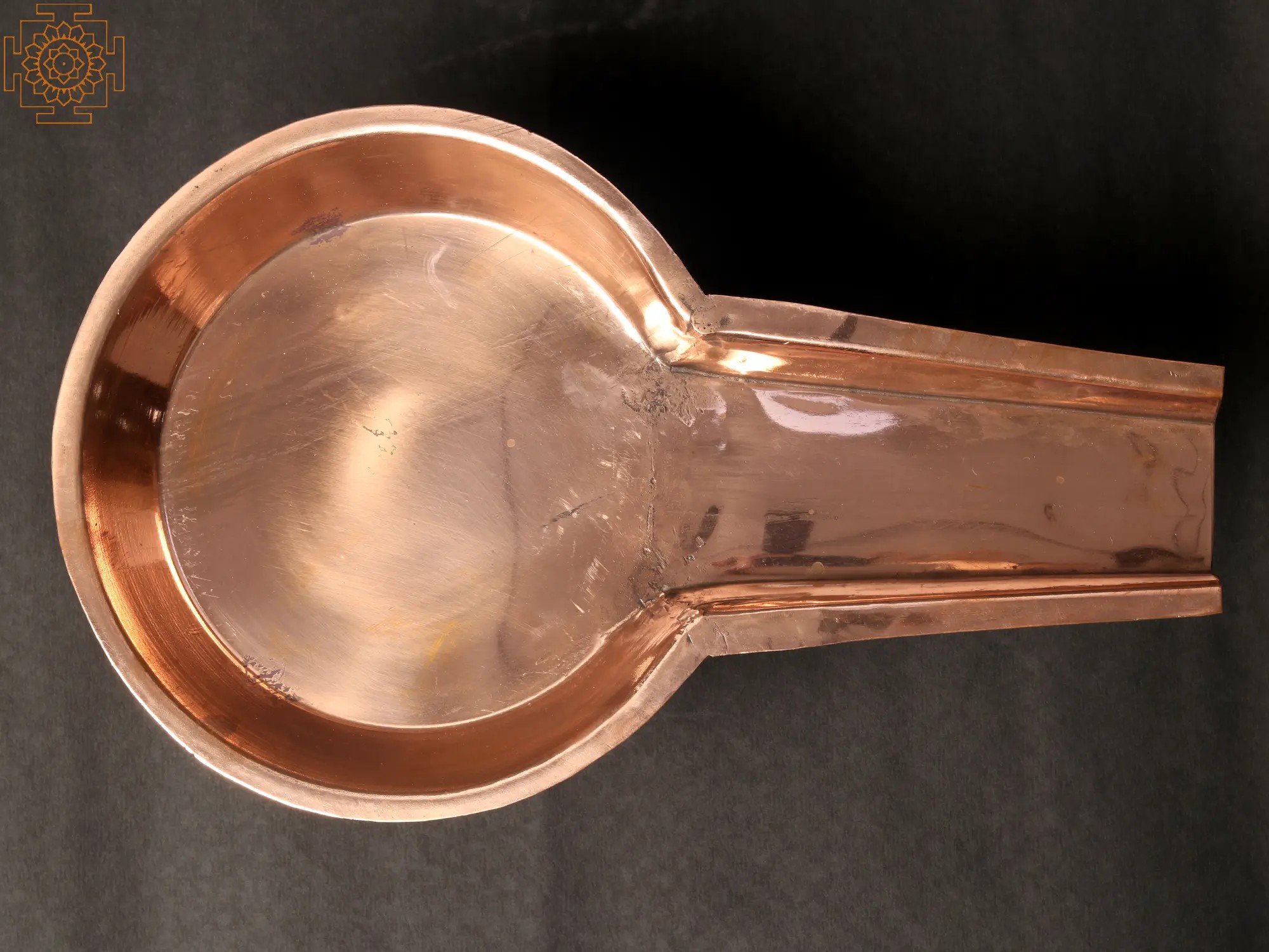 Copper's warmth and grace converge in the Abhisheka Patra, an essential element of Hindu rituals. The vessel symbolizes the sacred act of offering to deities during abhishekam, a ritual bath. Each curve and etching tell the story of devotion and purity. As it cradles holy waters, it mirrors the essence of spiritual surrender, where the self is cleansed and offered to the divine. Holding this patra in your hands, you partake in a timeless tradition, connecting with the depths of devotion and the cleansing power of faith.