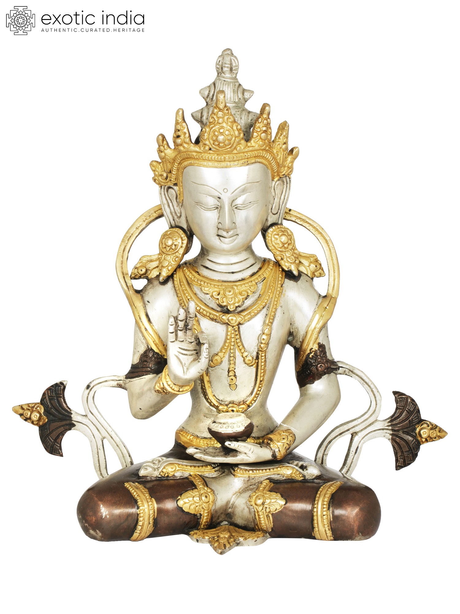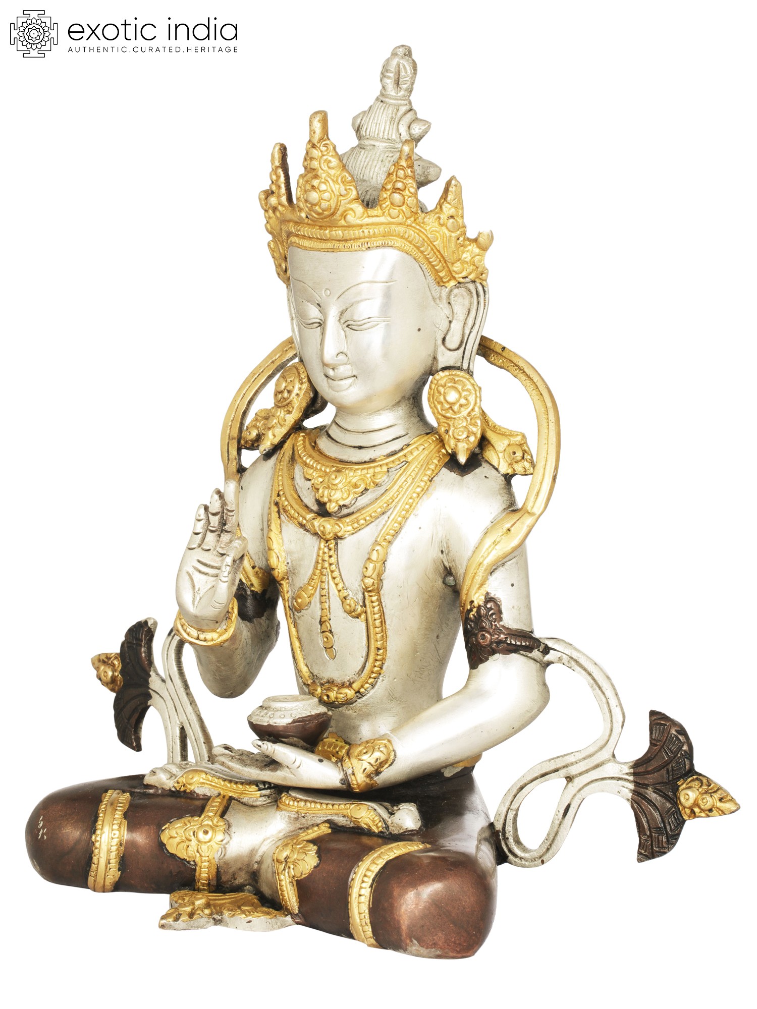 10" Crown Buddha (Tibetan Buddhist Deity) In Brass | Handmade | Made In India