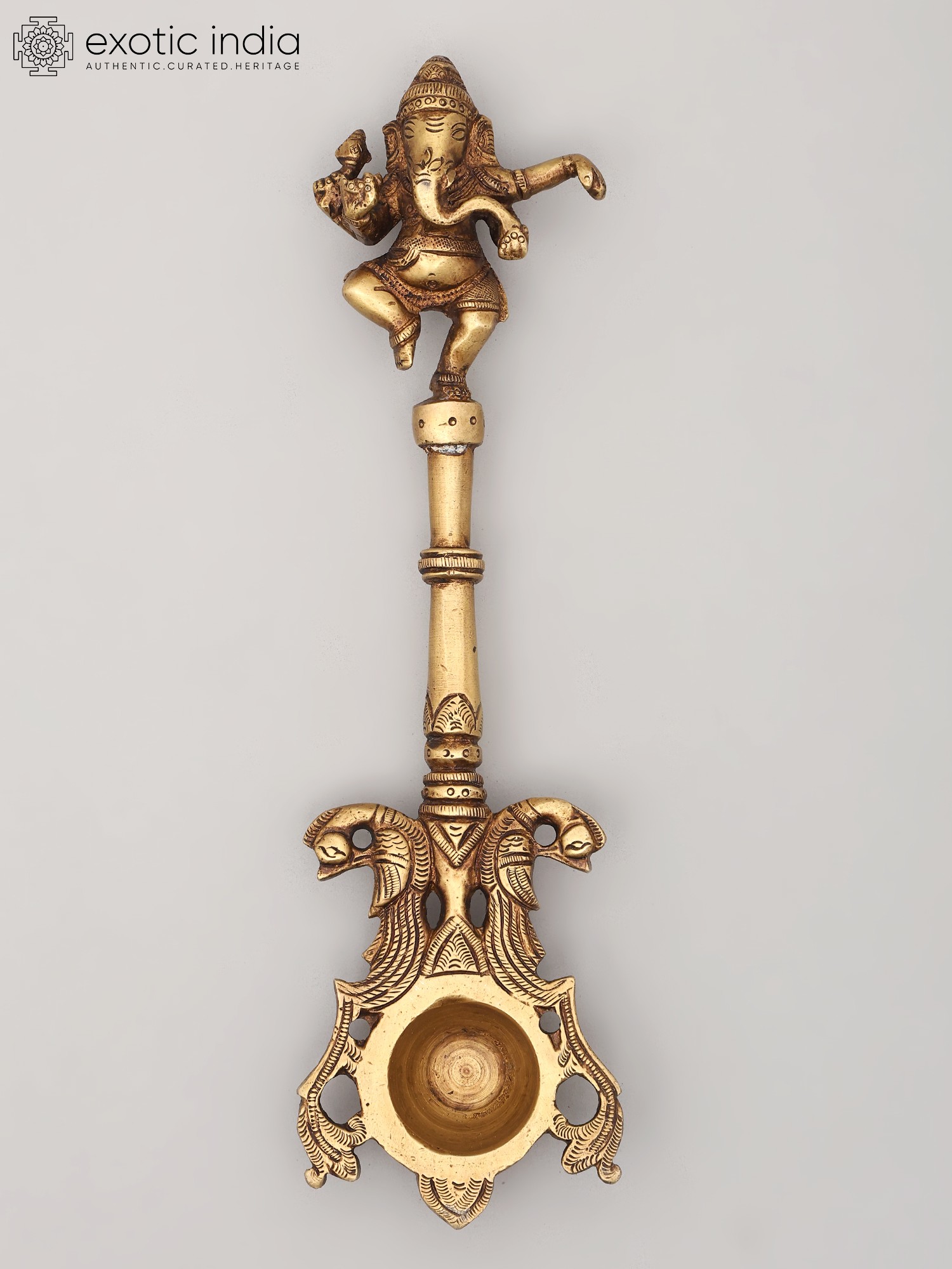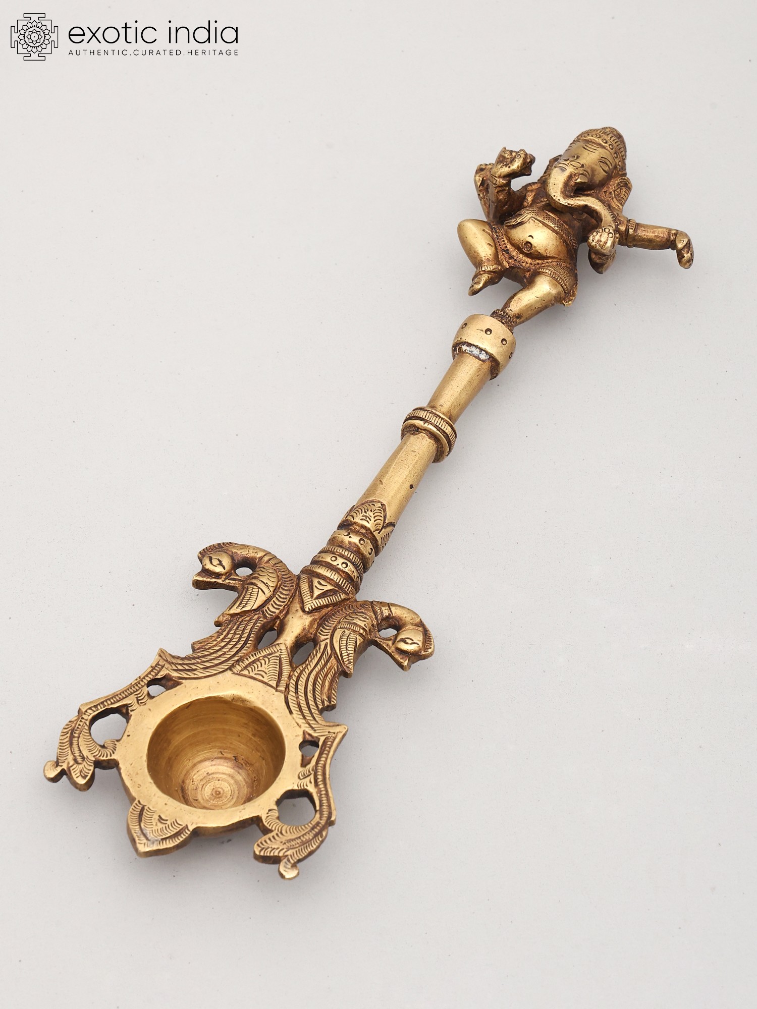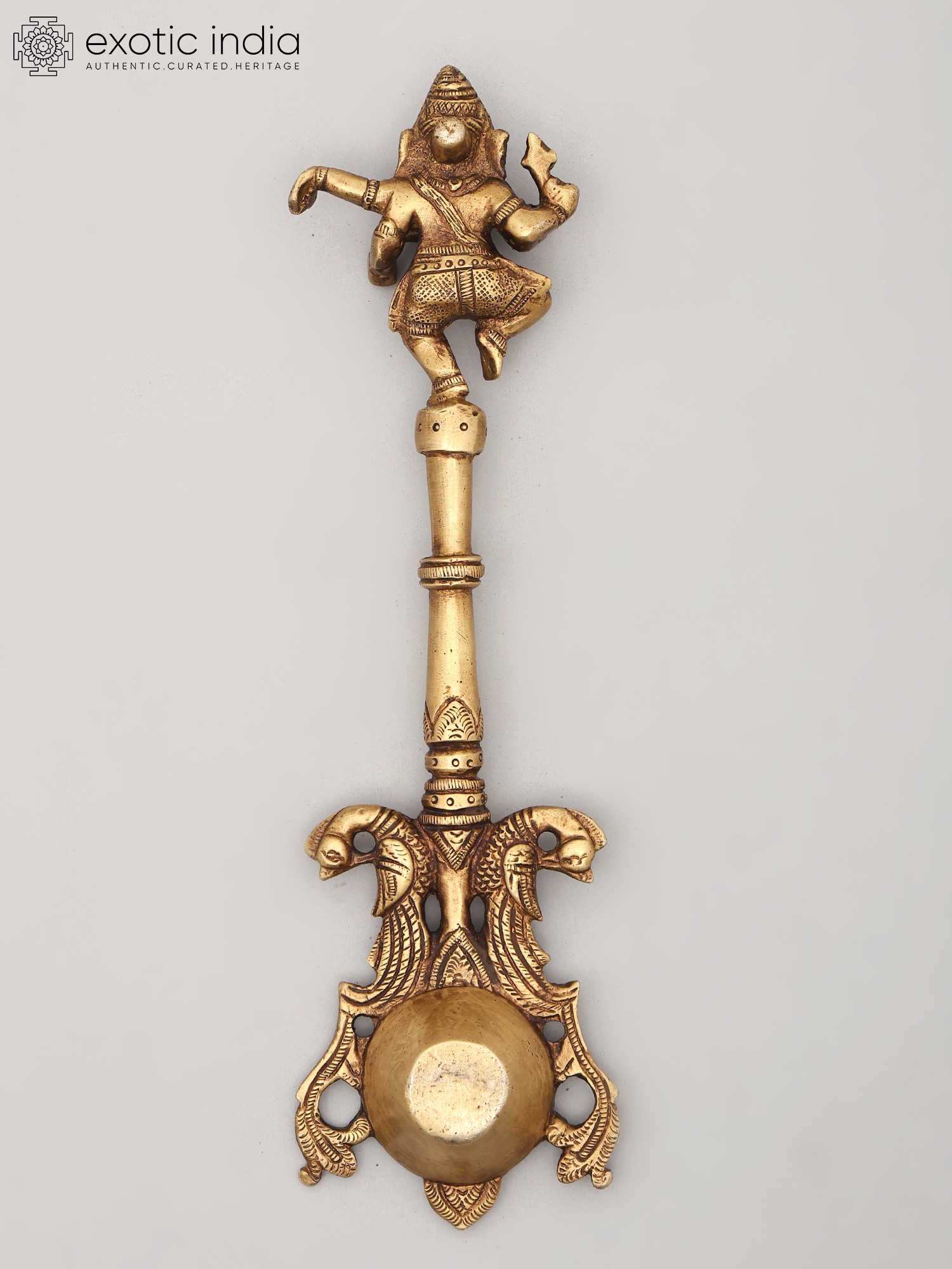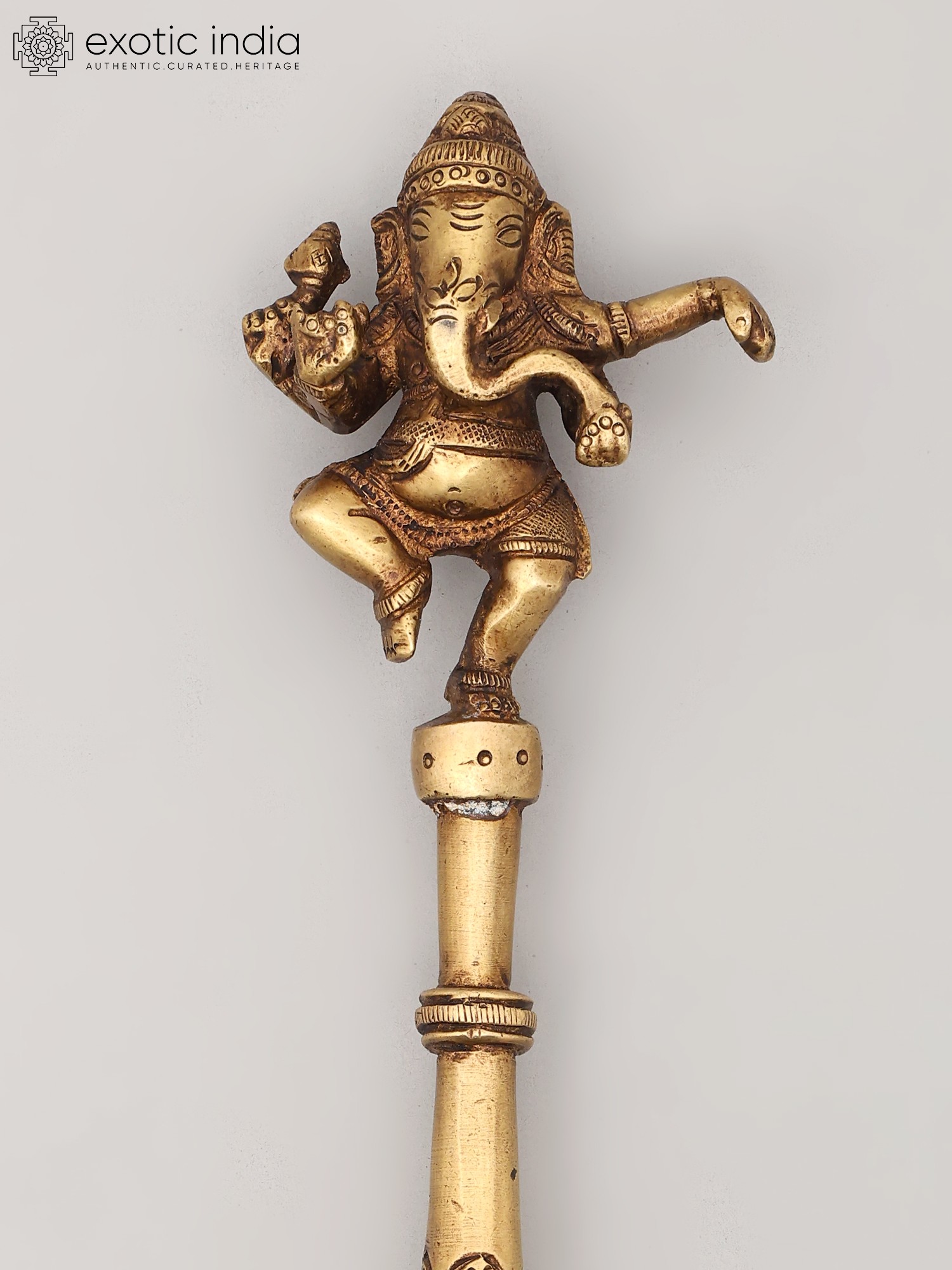 10" Dancing Ganesha Ritual Spoon in Brass | Handmade | Made In India