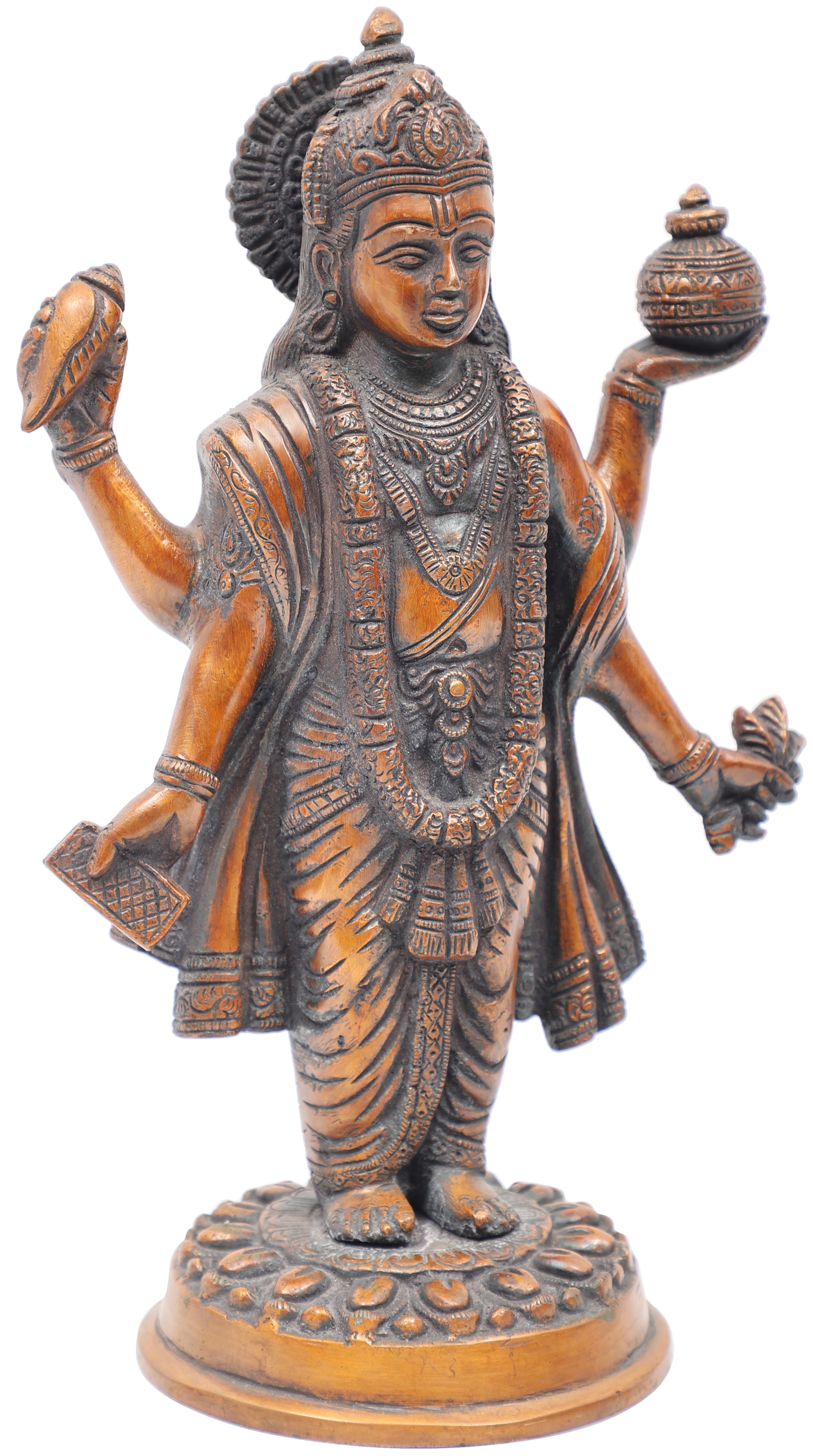 Experience the healing grace of Dhanvantari with this Handmade Brass Dhanvantari idol. This exquisite piece, crafted in India, embodies the concept of divine healing and well-being. Dhanvantari is revered as the physician of the gods, holding the vessel of immortality and herbs. This symbolizes the interconnectedness of spirituality and physical well-being, reminding us of the Ayurvedic principles deeply rooted in Indian tradition. The presence of Dhanvantari in your space not only adds a touch of elegance but also invokes the energy of healing and good health. It reinforces the core belief that our well-being is deeply intertwined with our spiritual journey.