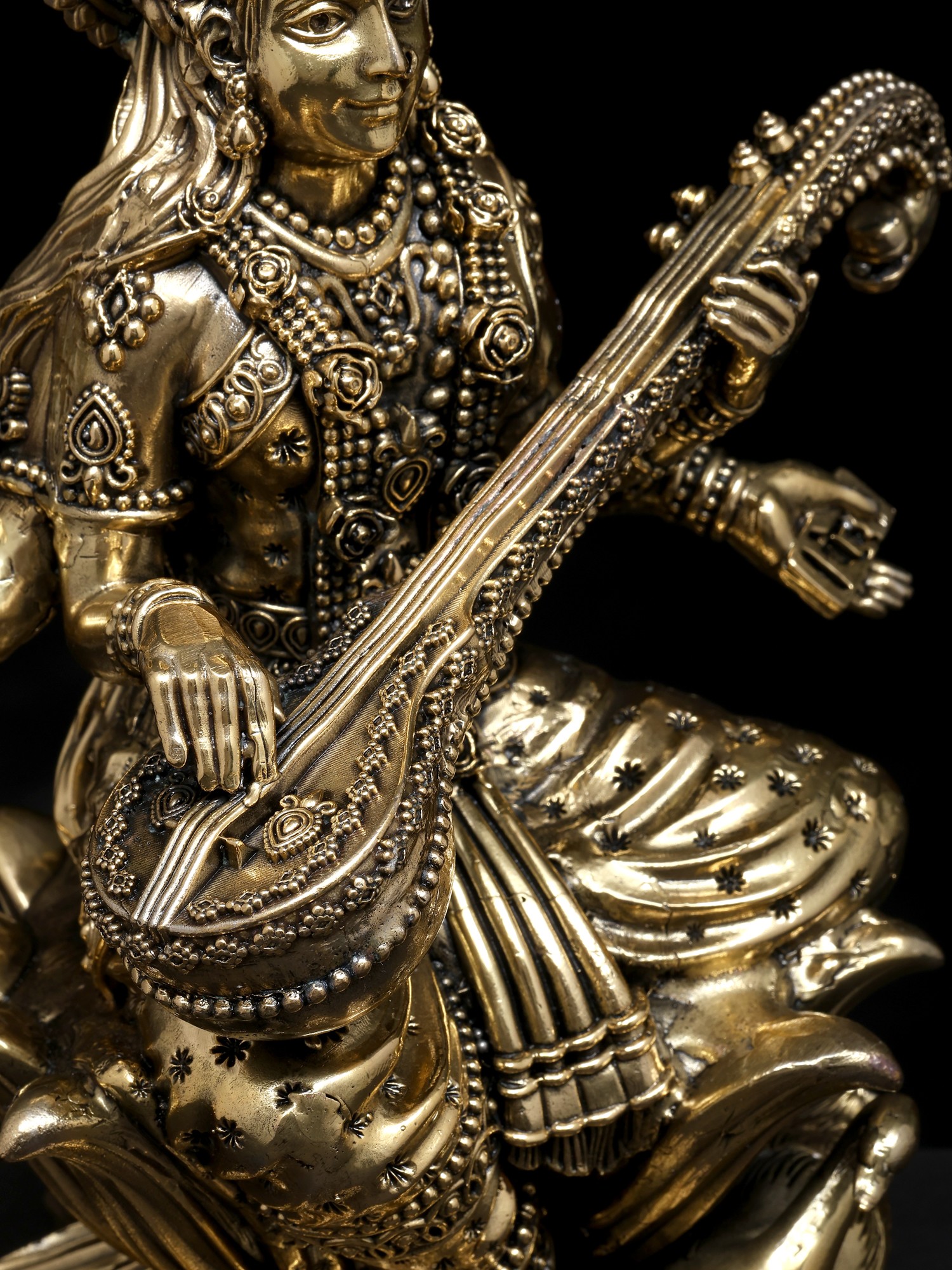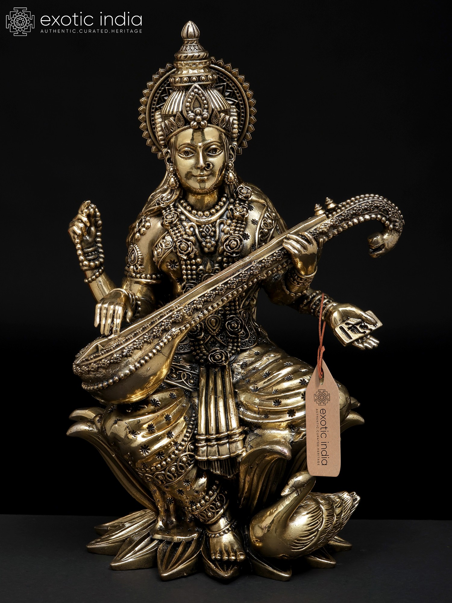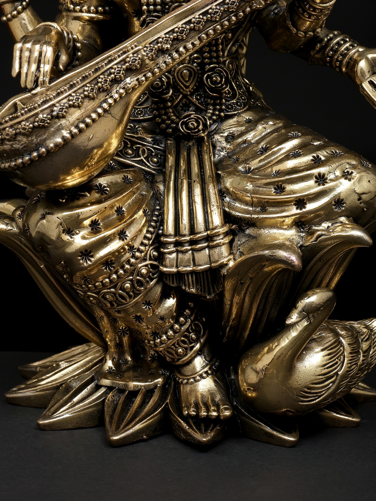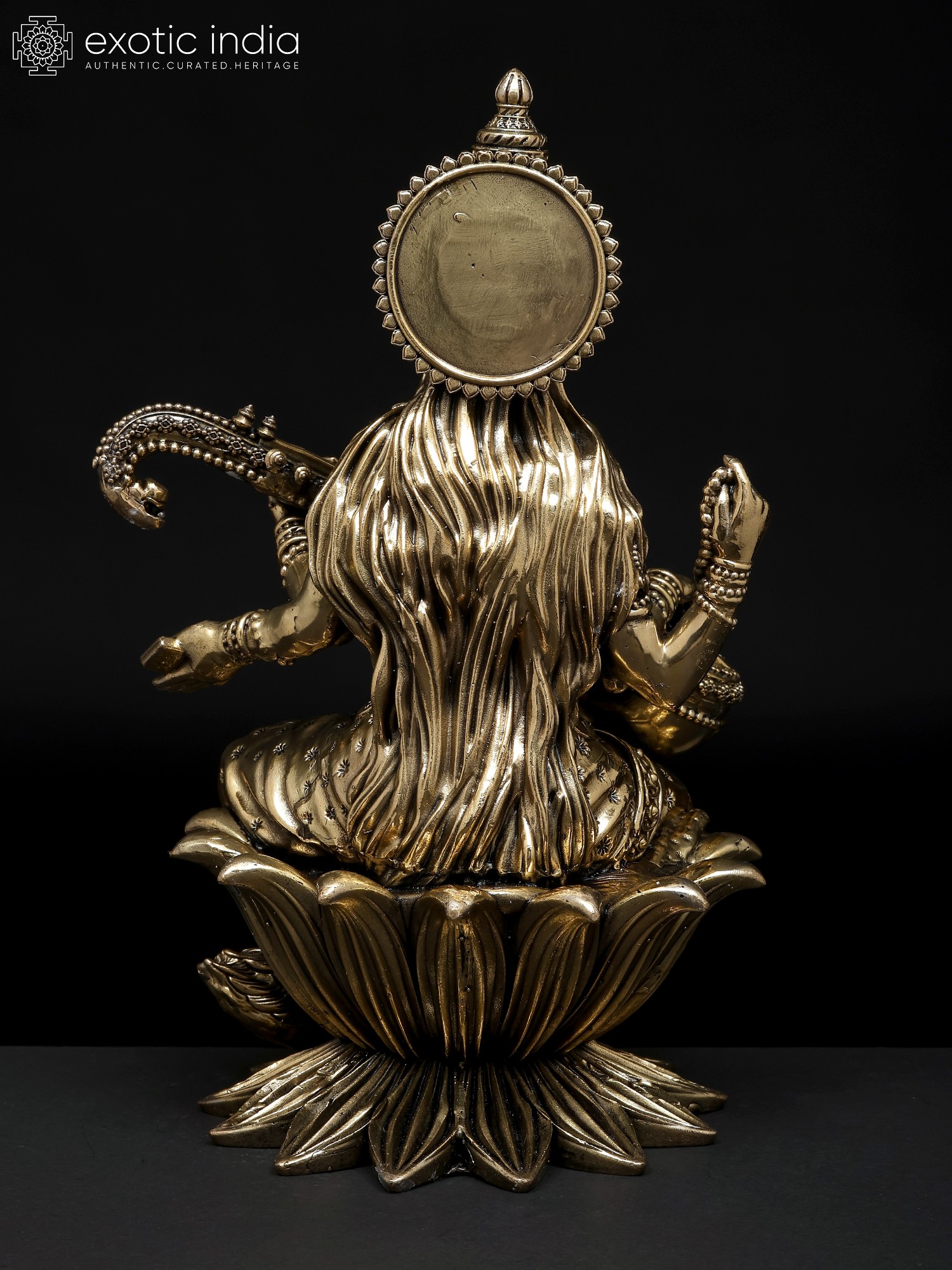 15" Goddess Saraswati Settled in Her Majestic Stance In Brass | Handmade | Made In India