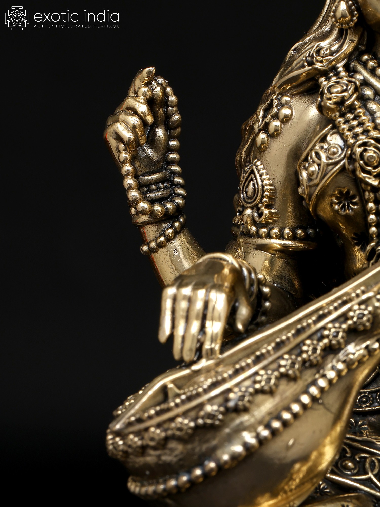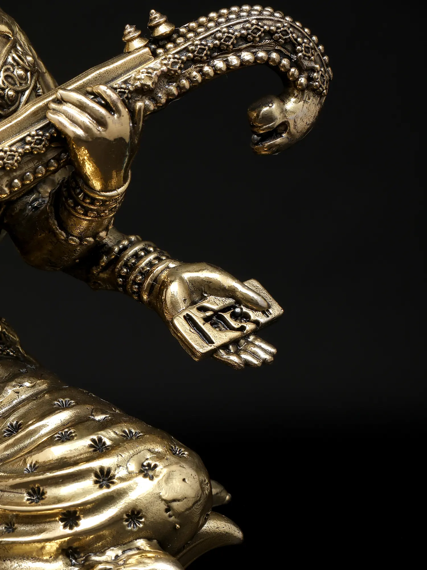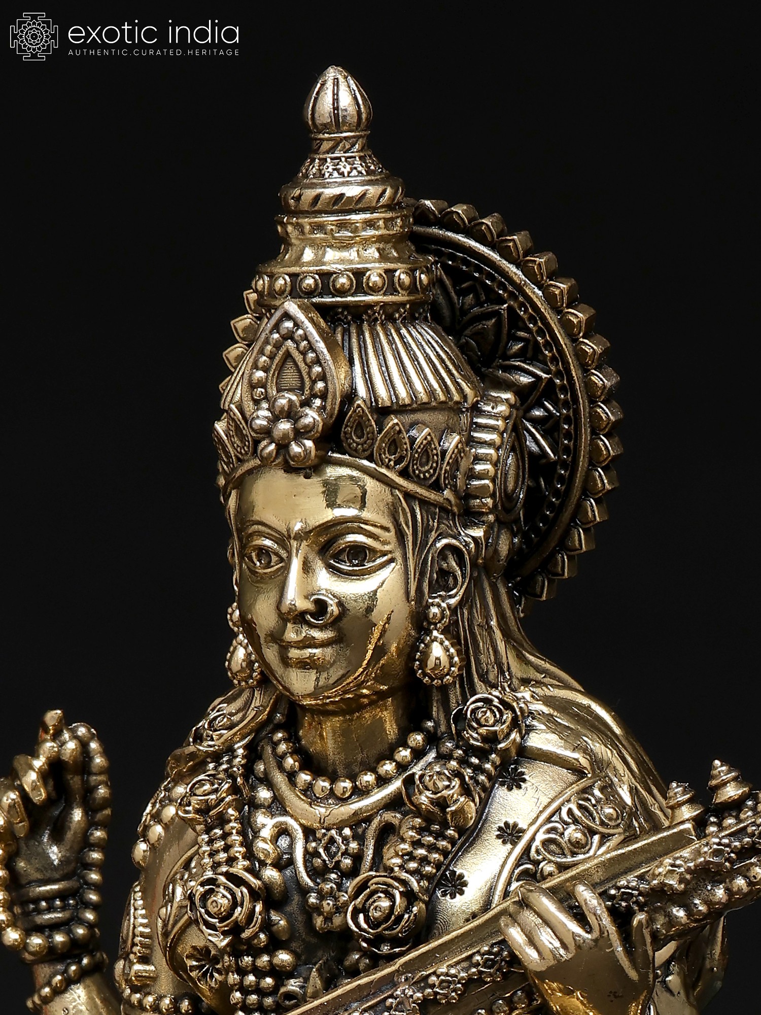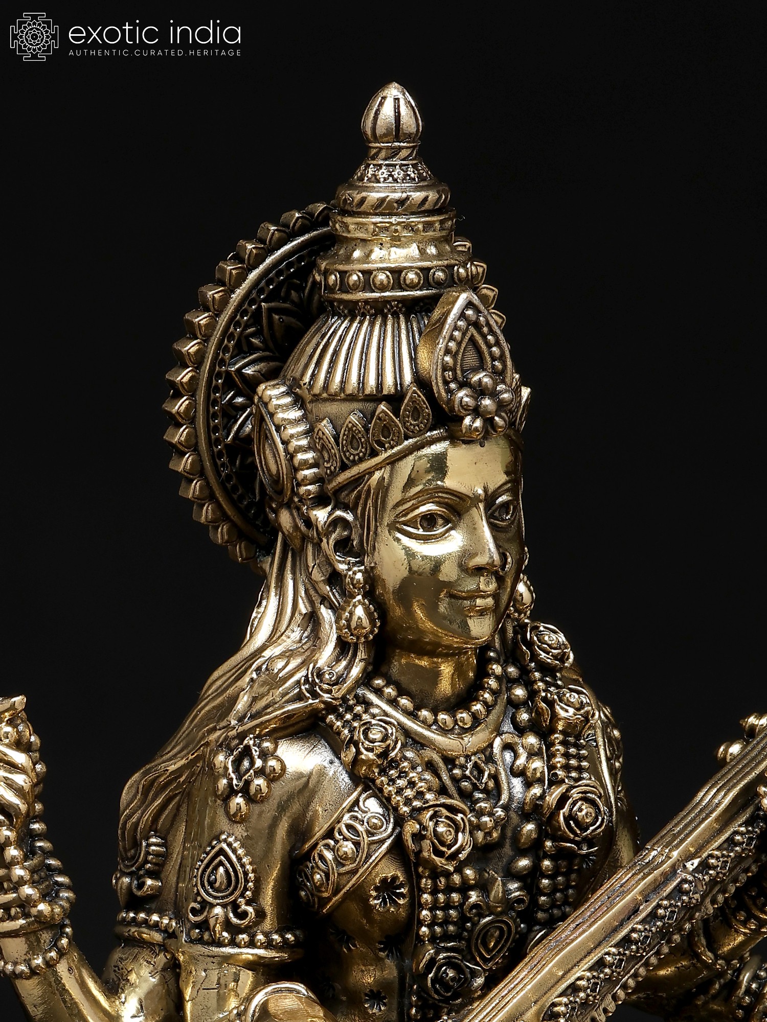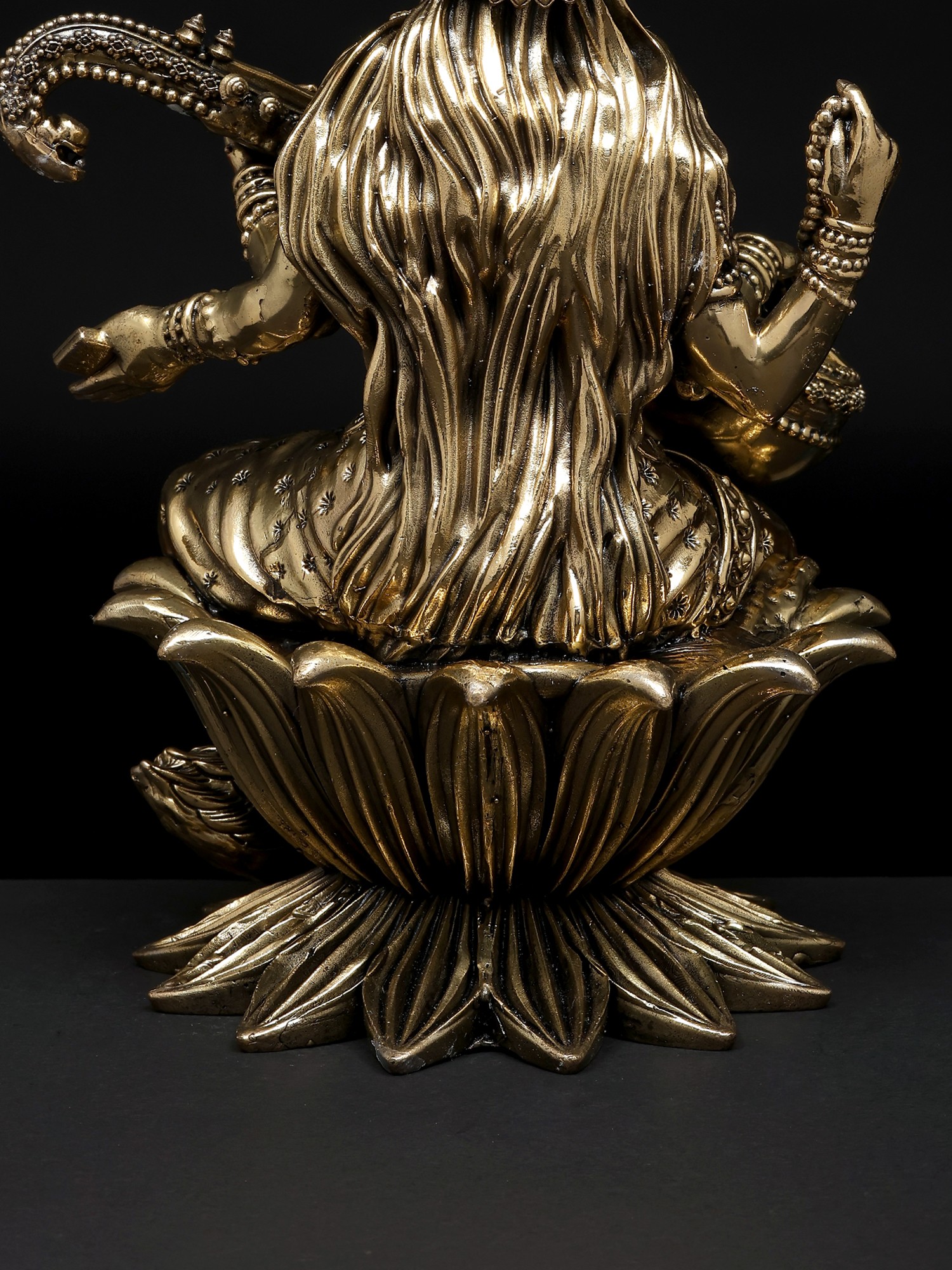 15" Goddess Saraswati Settled in Her Majestic Stance In Brass | Handmade | Made In India