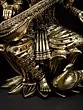 17" Wood Framed Superfine Brass Lakshmi Ganesha Saraswati with Dangling Bells | Wall Hanging