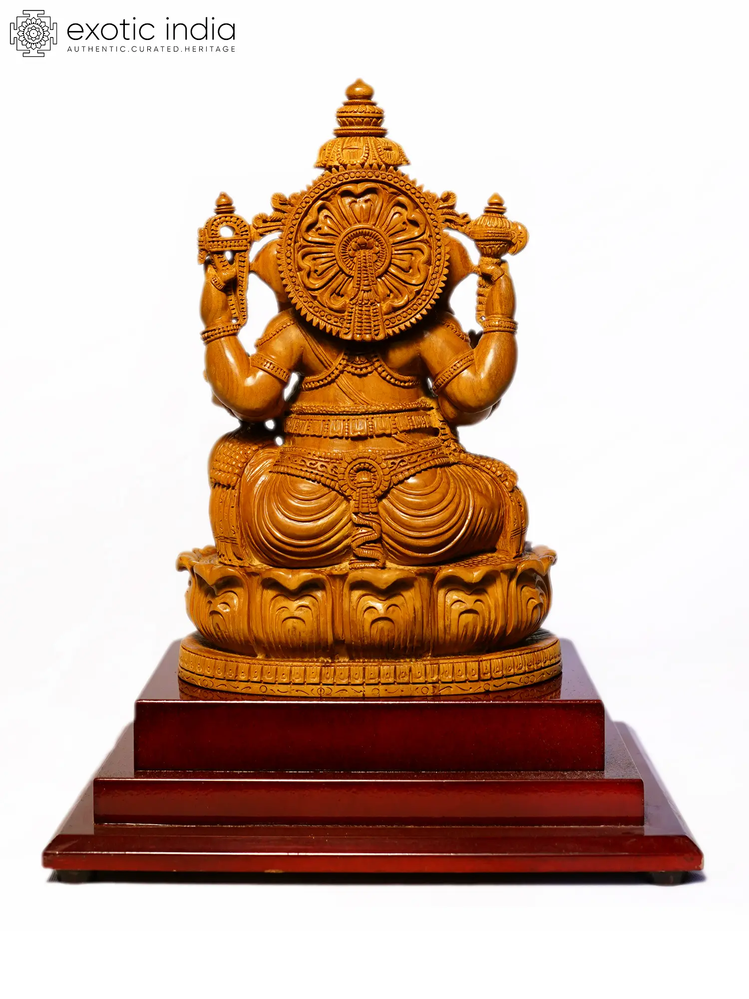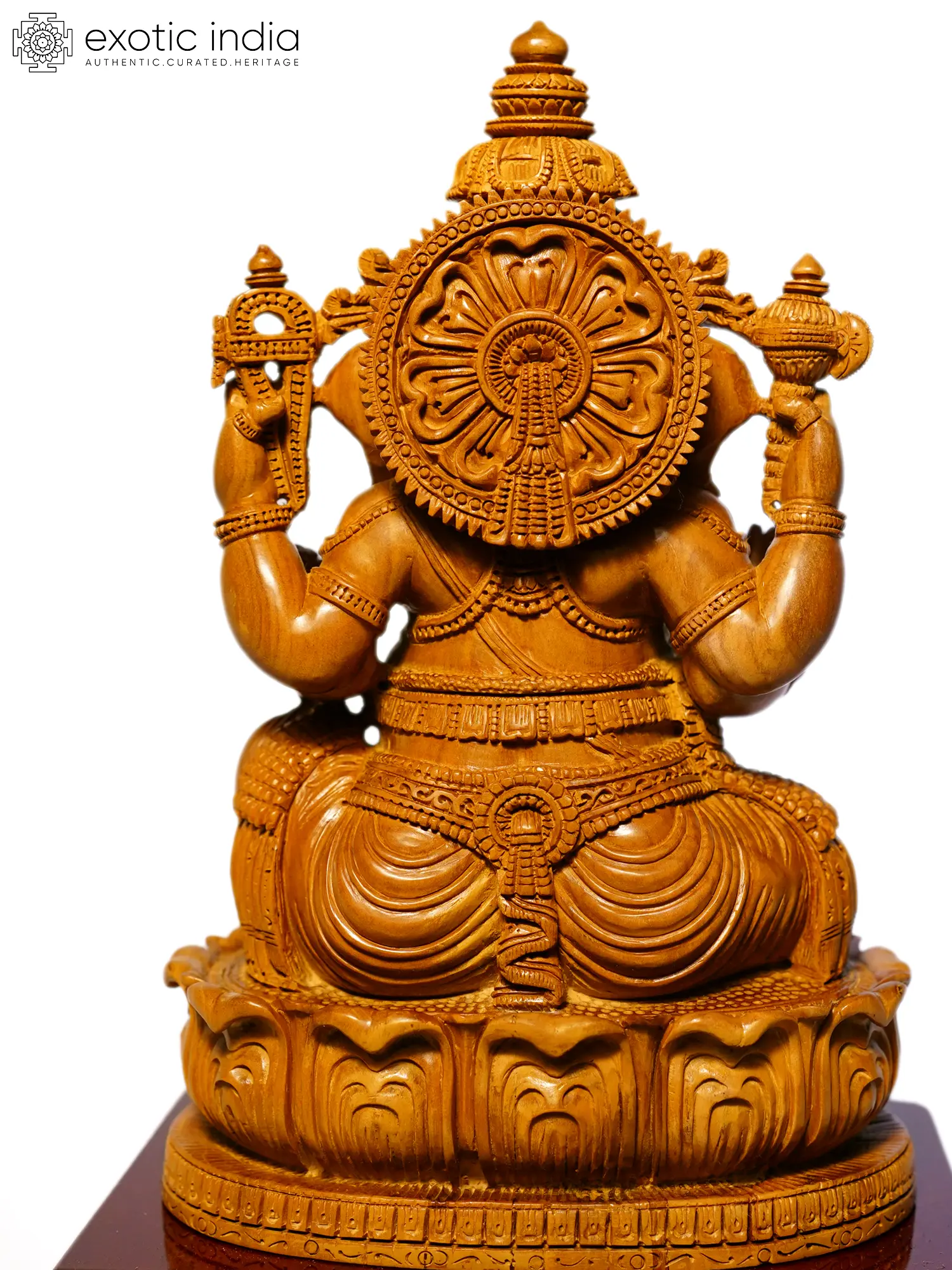 13" Chaturbhuja Ganesha Seated on Lotus | Sandalwood Carved Statue